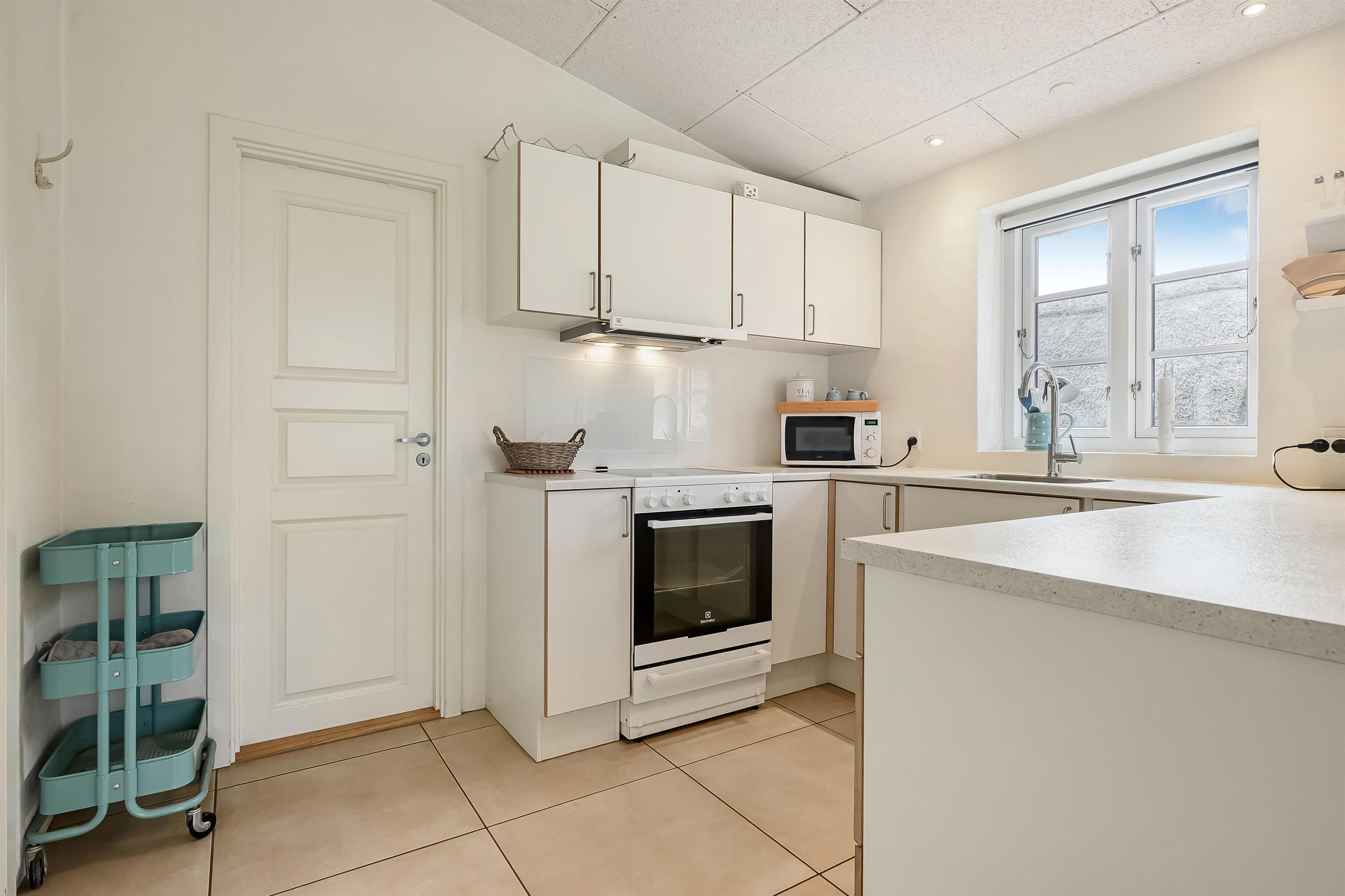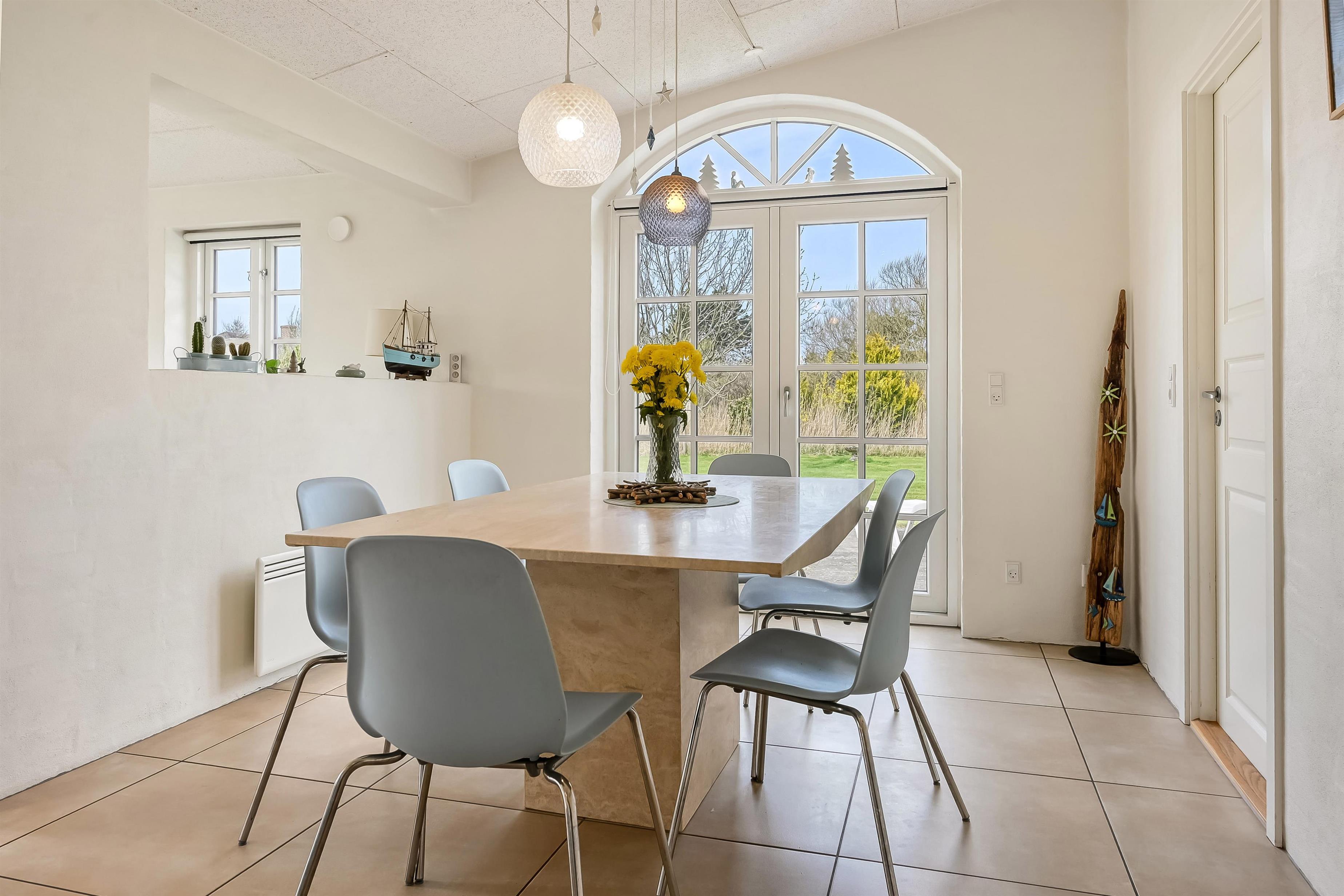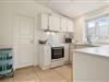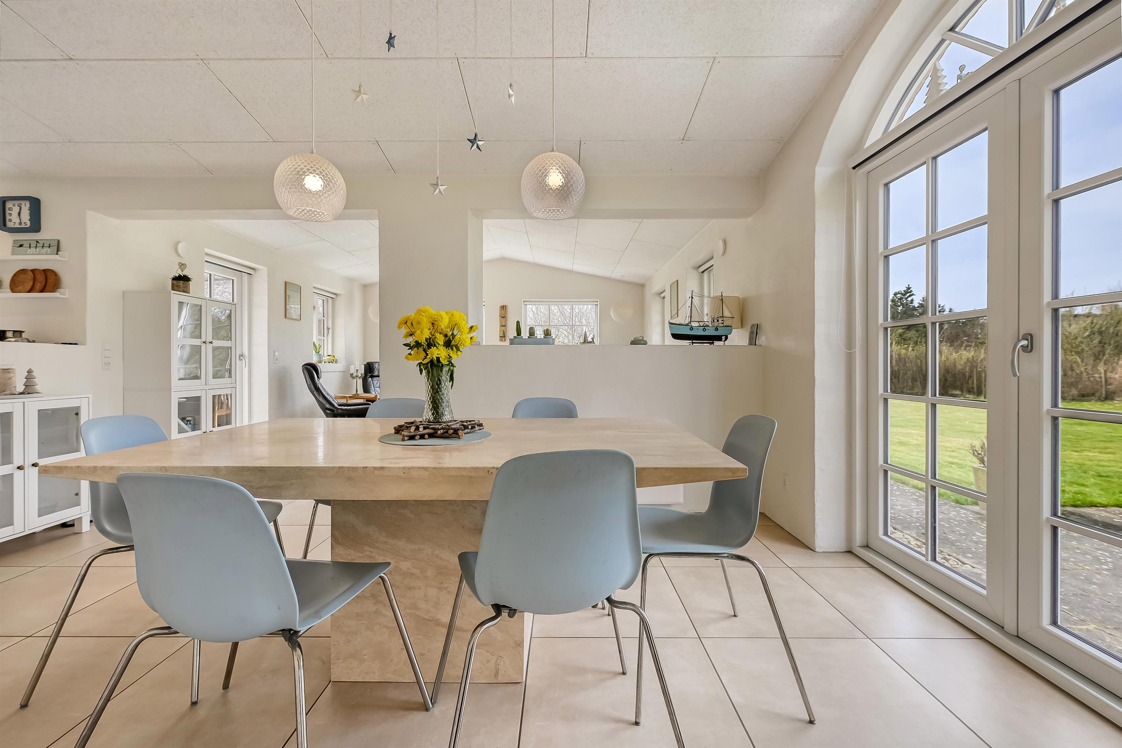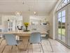 Veludstyret køkken med spiseplads og dobbeltdør til vestvendt terrasse