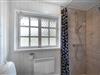 Det lyse badeværelse har bruseniche og gulvvarme, så komforten er i top, også på køligere dage.