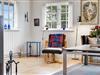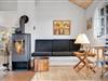 Indenfor fremstår huset lyst, velindrettet og indbydende, med smagfulde møbler, trægulve i køkken/alrum og en hyggelig atmosfære, der straks får skuldrene til at sænke sig.