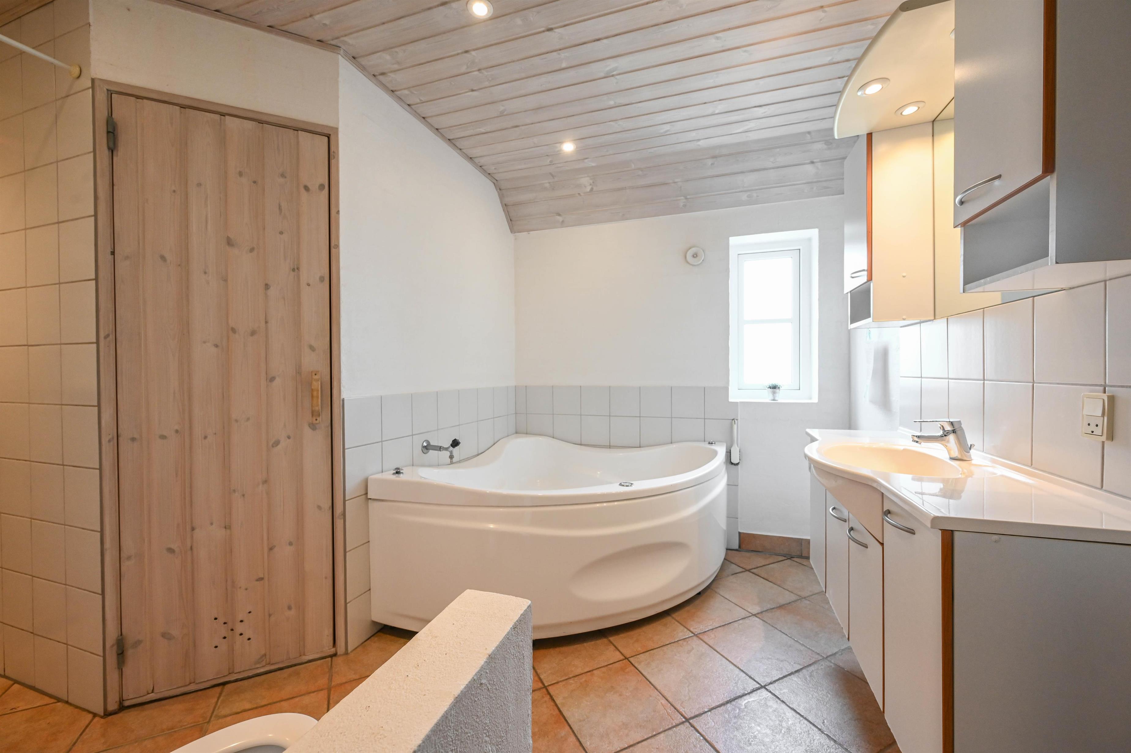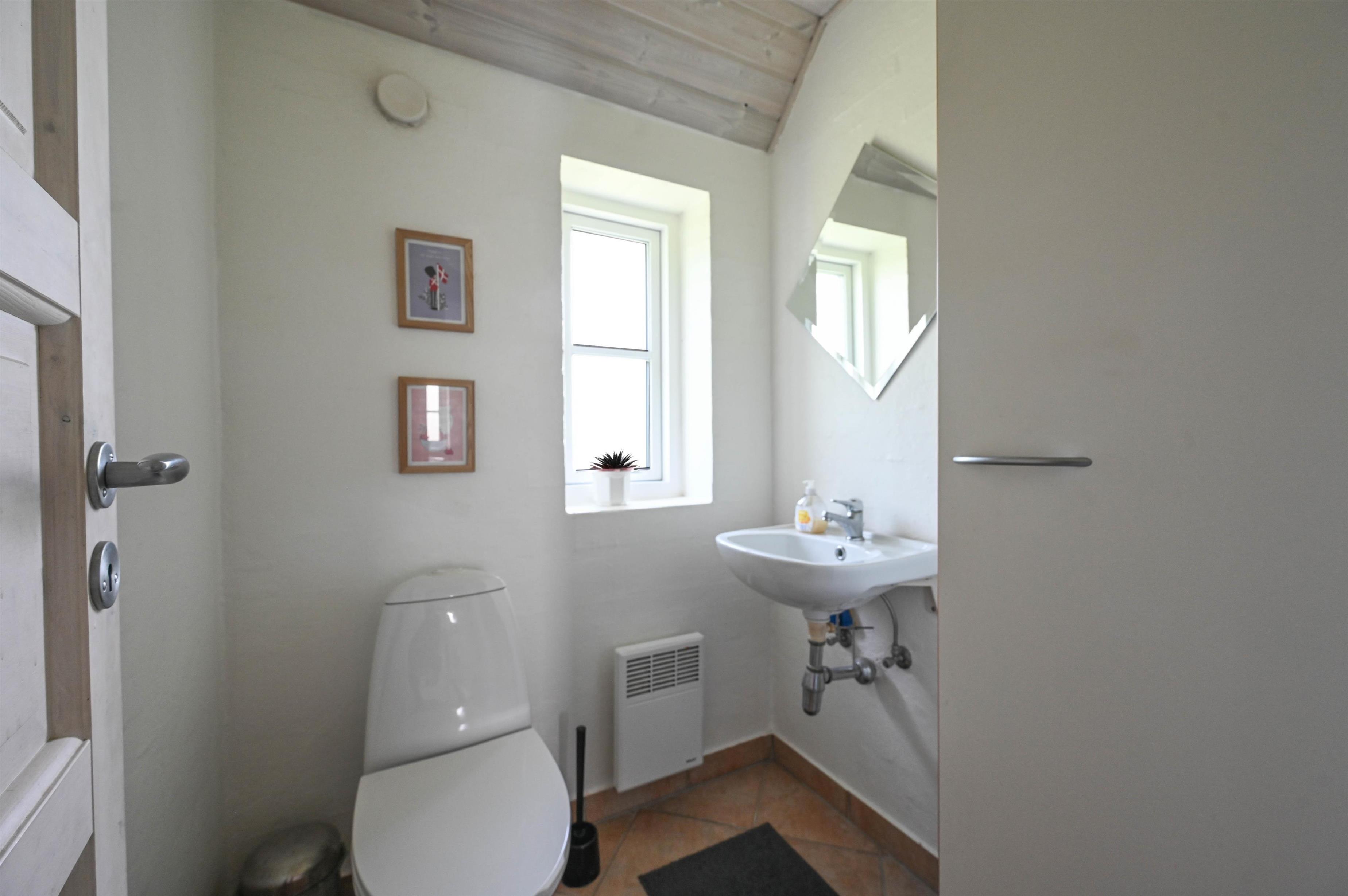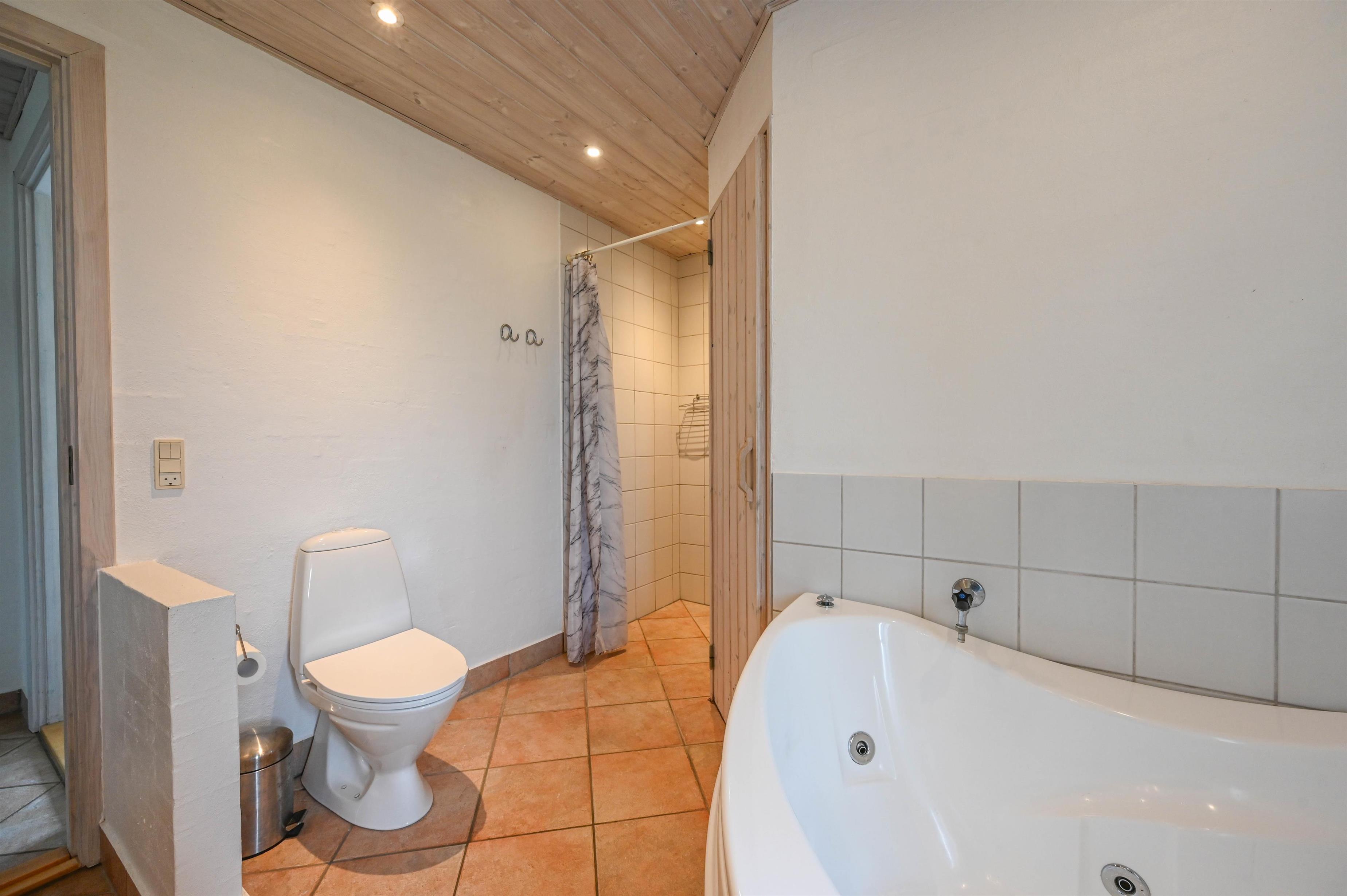 Desuden finder I et stort badeværelse med bruseniche, spa og sauna – perfekt til afslapning efter en lang dag ved havet – samt et lille gæstetoilet.