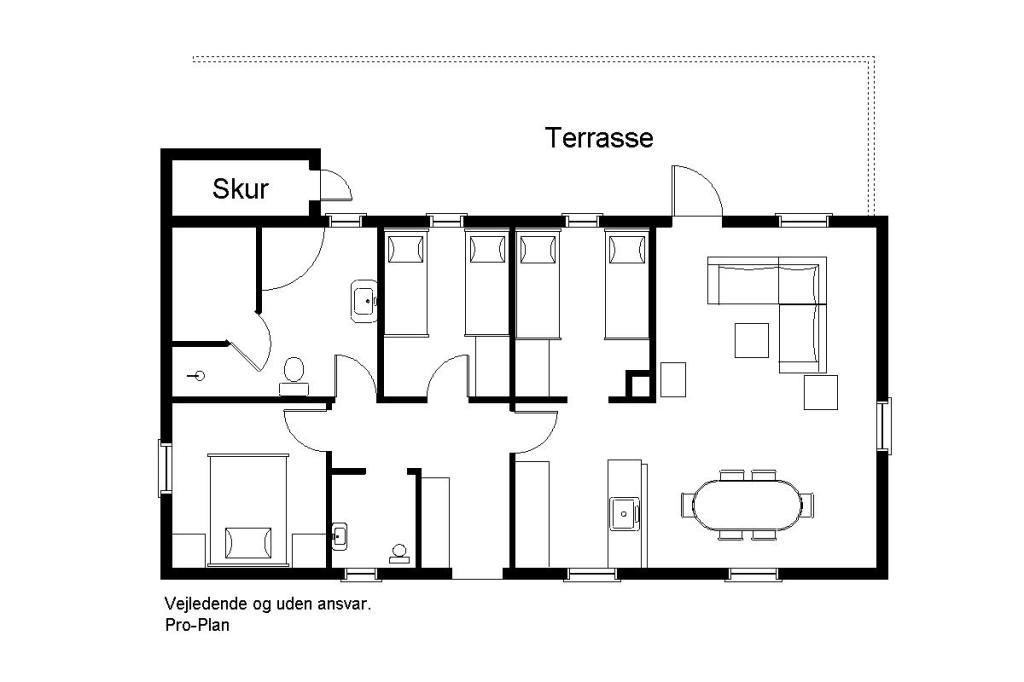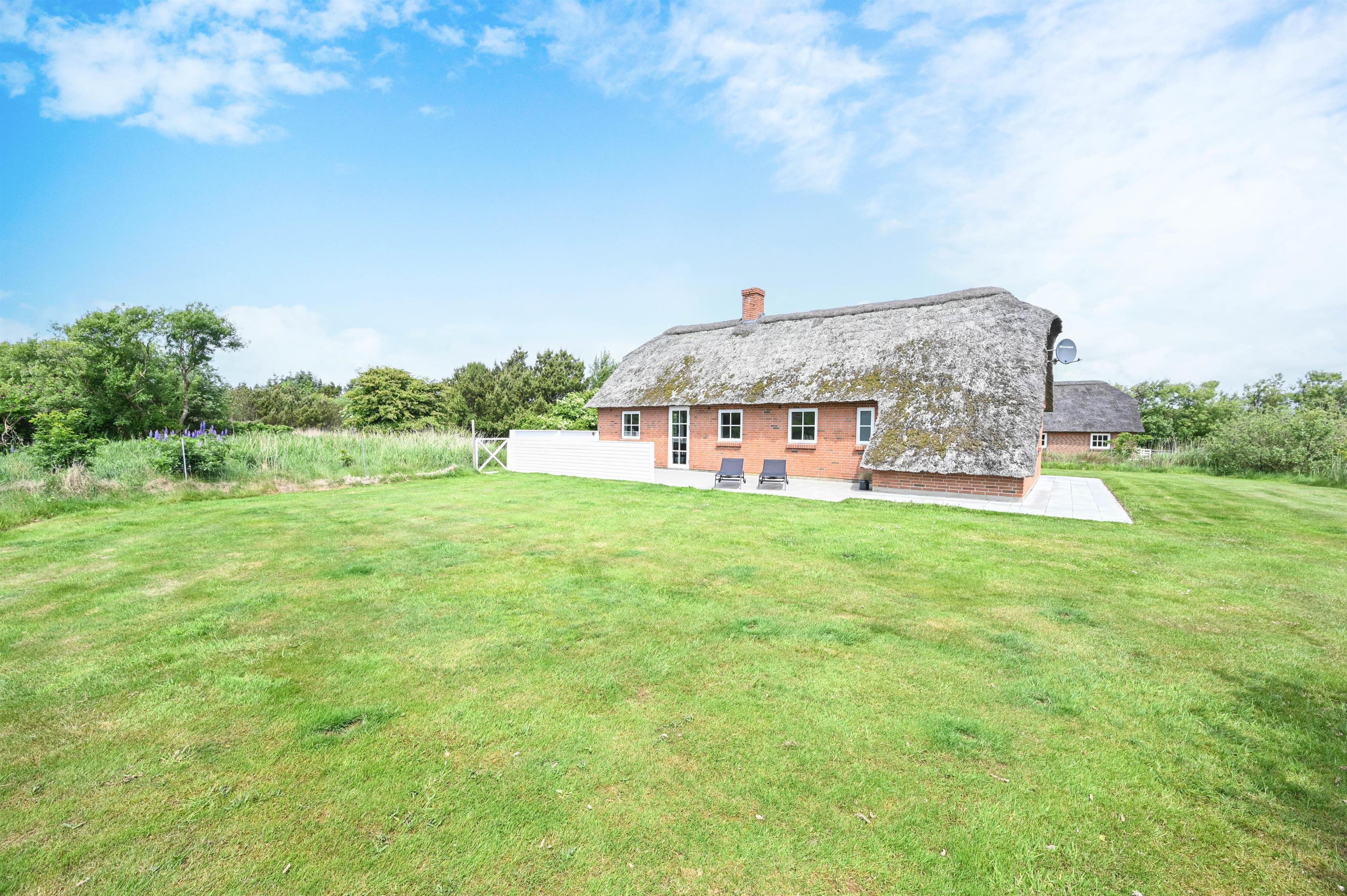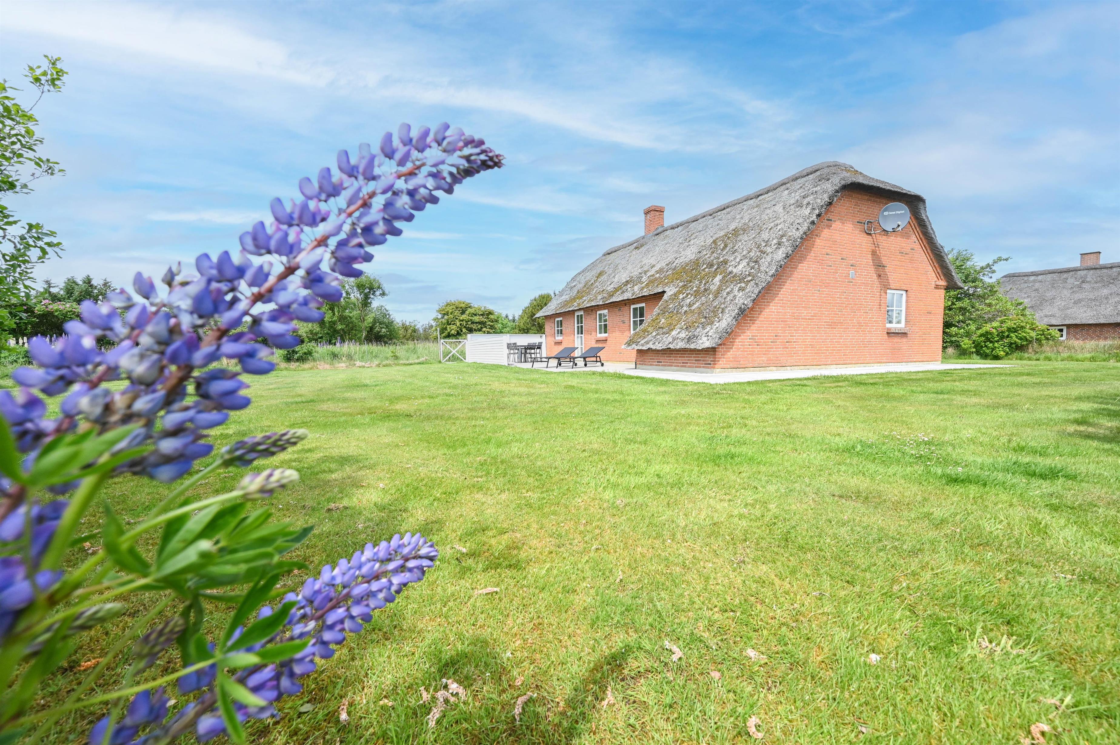 Huset ligger på en dejlig, helt indhegnet grund, hvor både børn og hunde trygt kan lege og nyde ferien. Den ugenert have og den sydvendte terrasse med gode læforhold danner de ideelle rammer for afslapning, solbadning eller en rolig stund med en kop kaffe og fuglesang i baggrunden.
