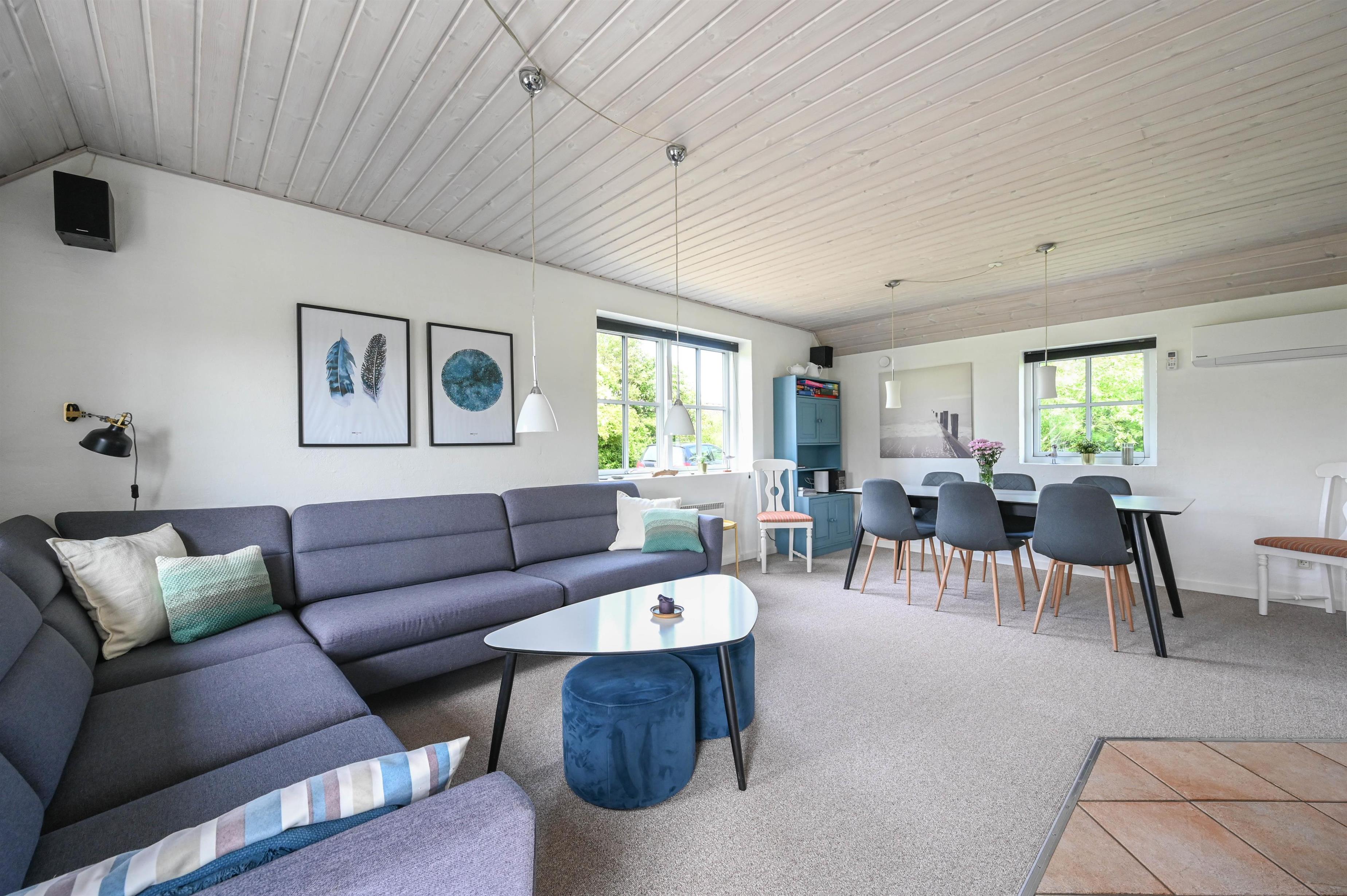 Feriehuset er lyst og moderne indrettet med pæne møbler, lyse farver og en venlig atmosfære, der straks får én til at føle sig hjemme.