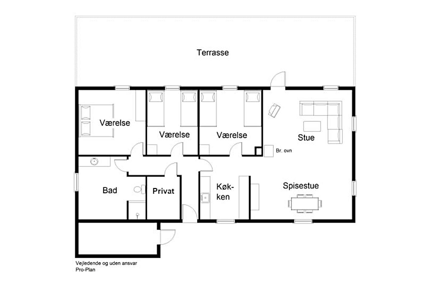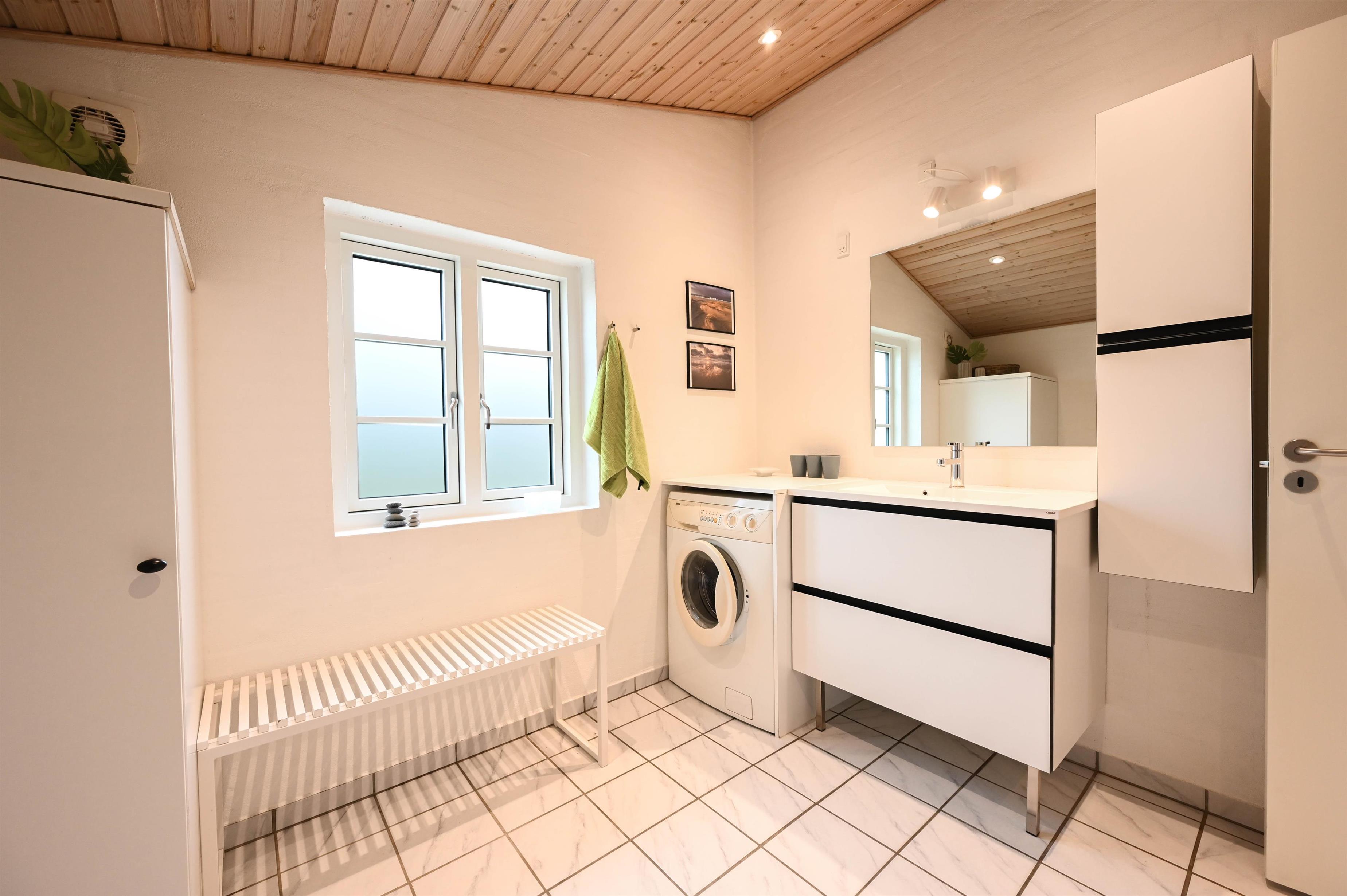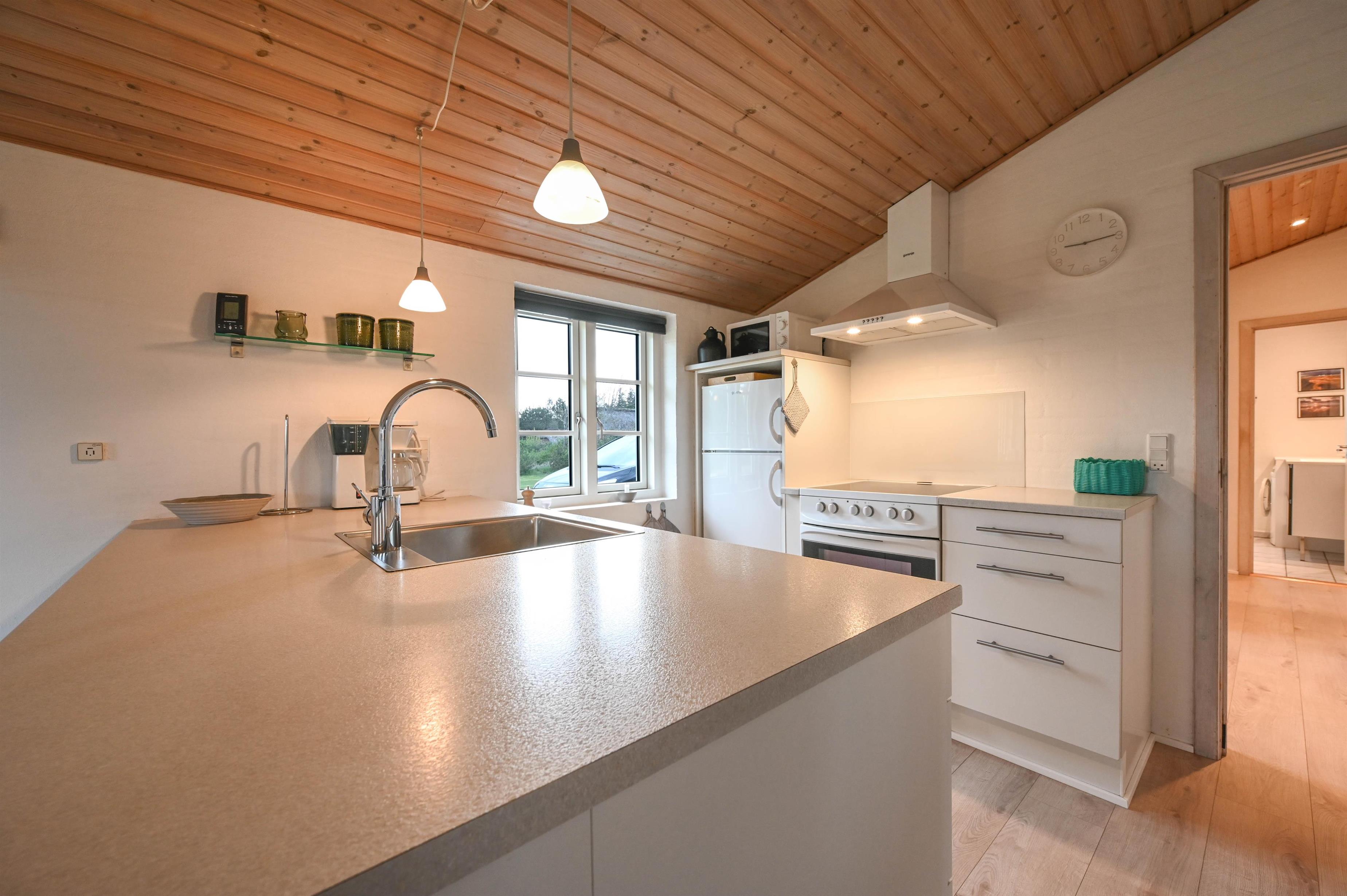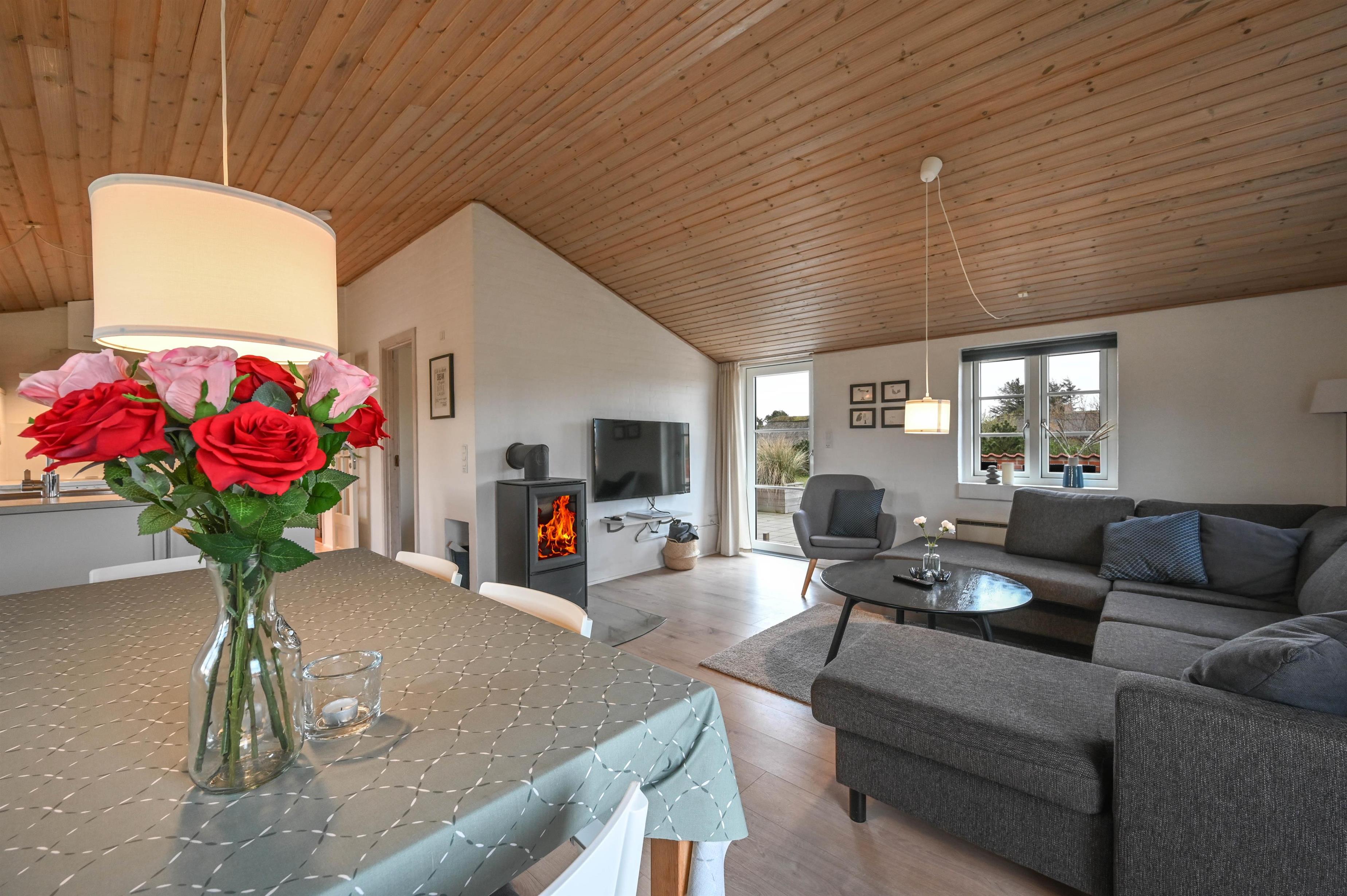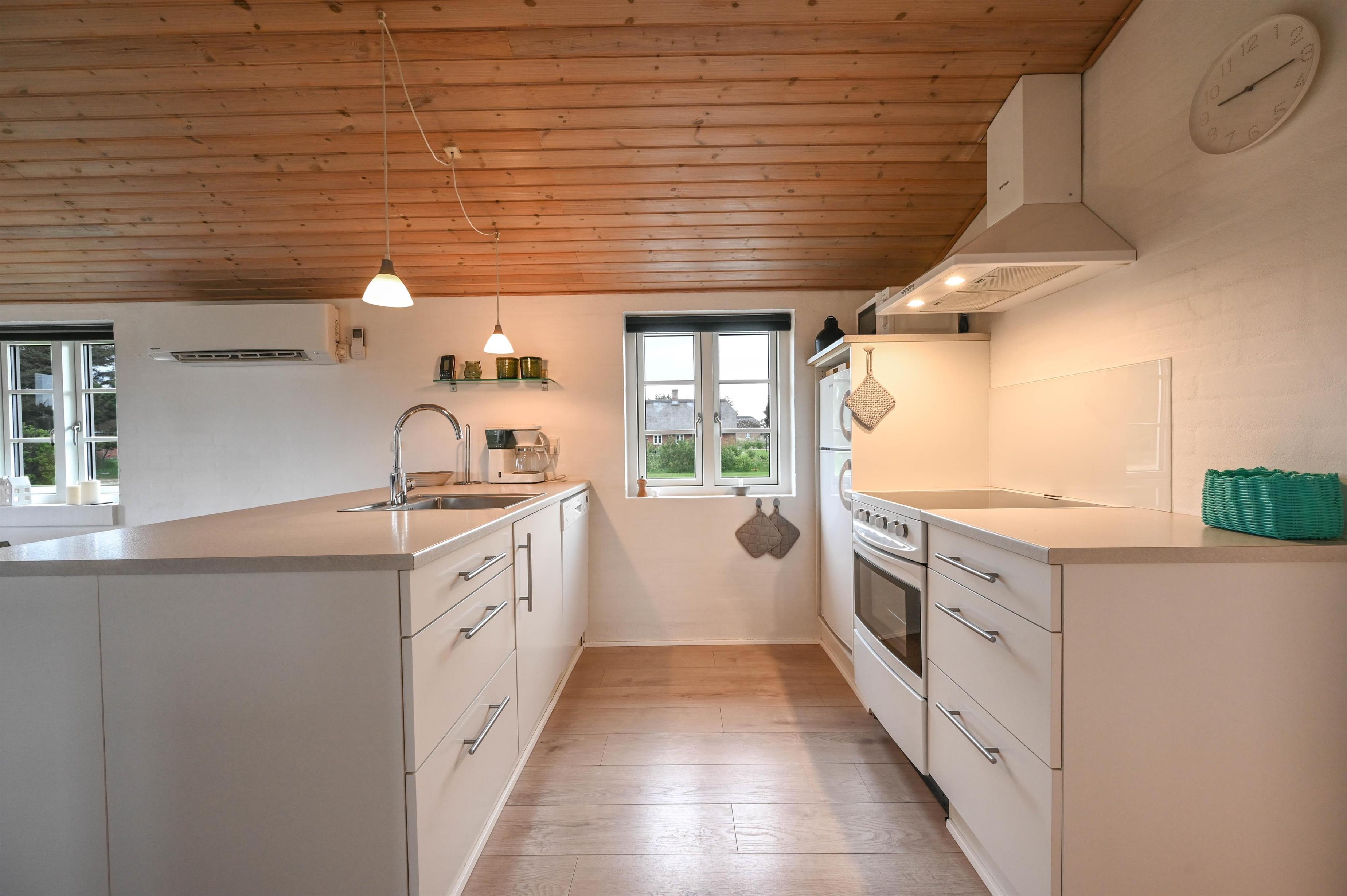 I den store, åbne stue med brændeovn og integreret køkken er rammerne sat for samvær, madlavning og rolige aftener foran flammernes skær. Her er hyggen skabt på forhånd – det eneste, I skal gøre, er at læne jer tilbage og nyde det.