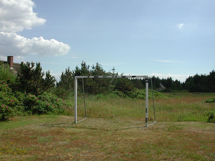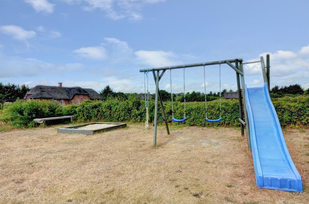 Ejeren har tænkt på de yngste gæster – her er både sandkasse, gynge og fodboldmål, så børnene kan få mange timer til at gå i frisk luft.