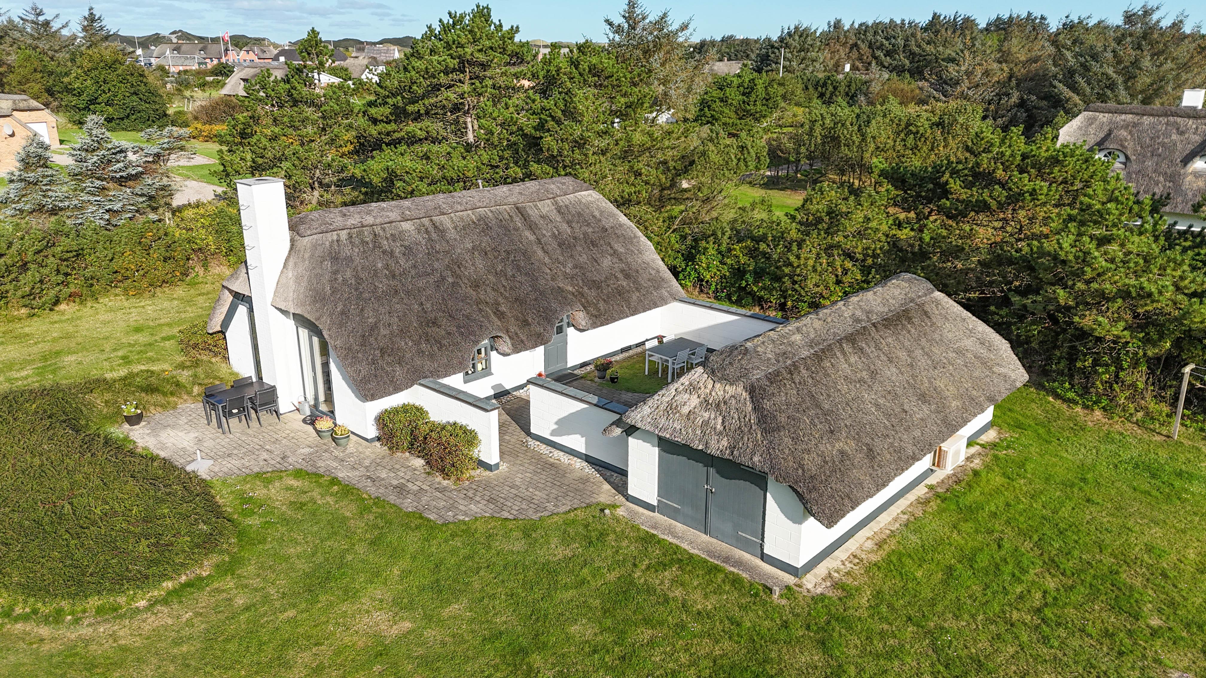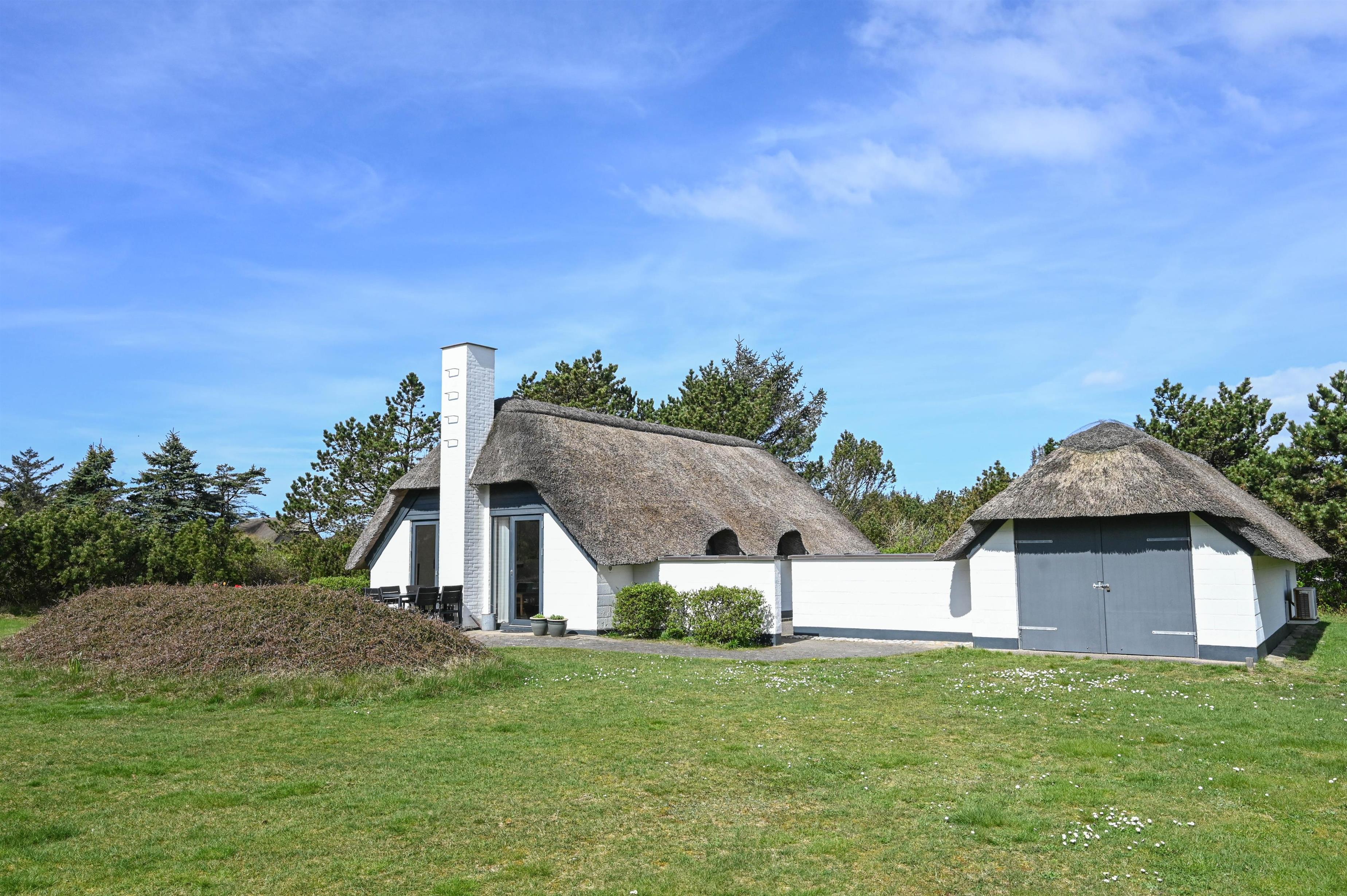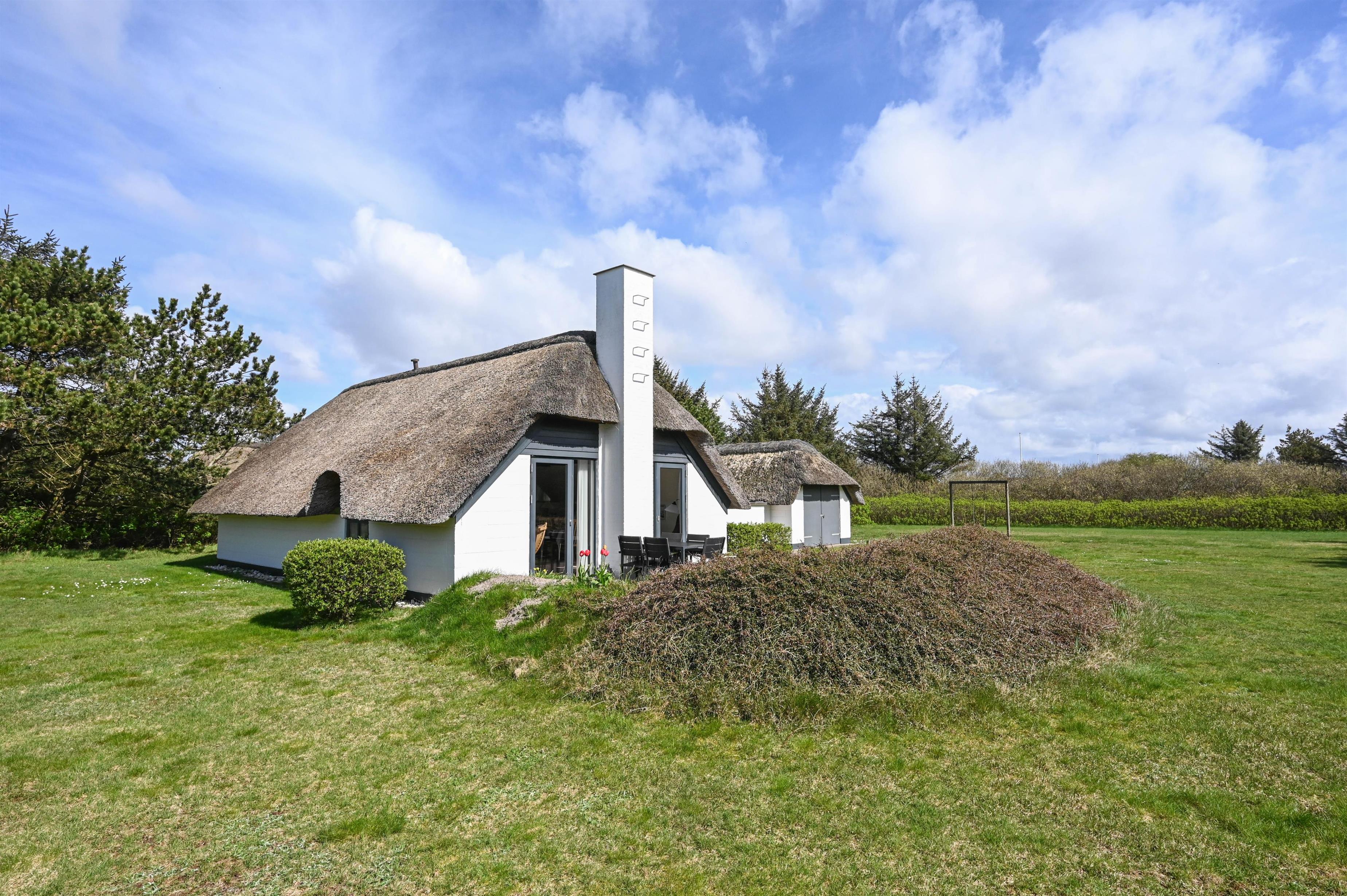På Hummelmosevej 4 i Vedersø Klit finder I dette charmerende og hyggelige feriehus, som ligger på en stor og dejlig grund med masser af læ, privatliv og plads til at nyde ferien i fred.