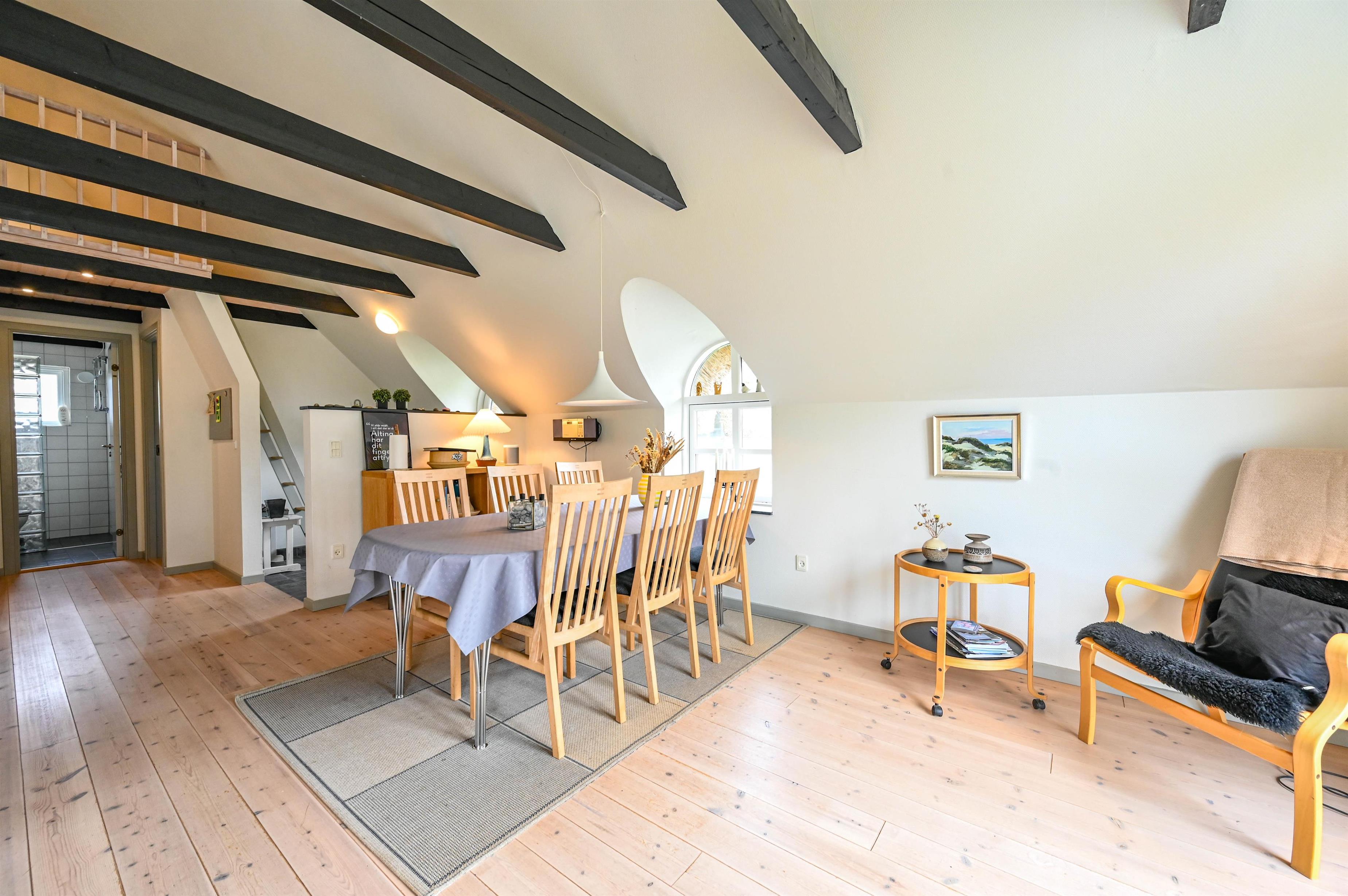 Det velholdte hus fremstår lyst, venligt og imødekommende, og I mærker straks den særlige feriestemning, når I træder indenfor.