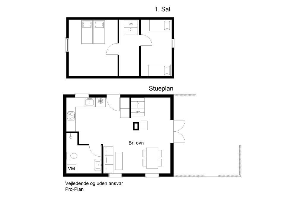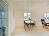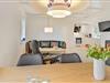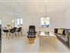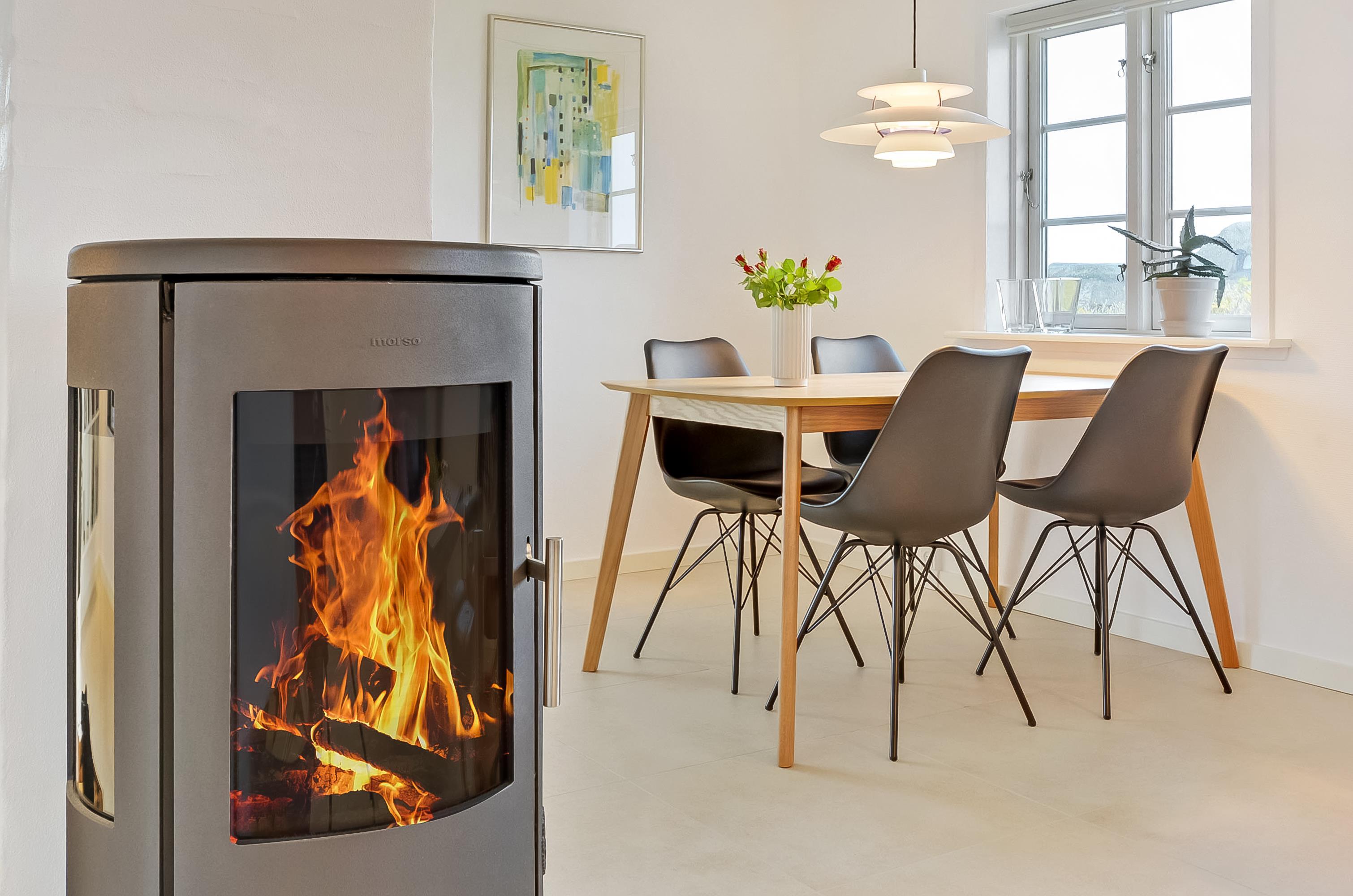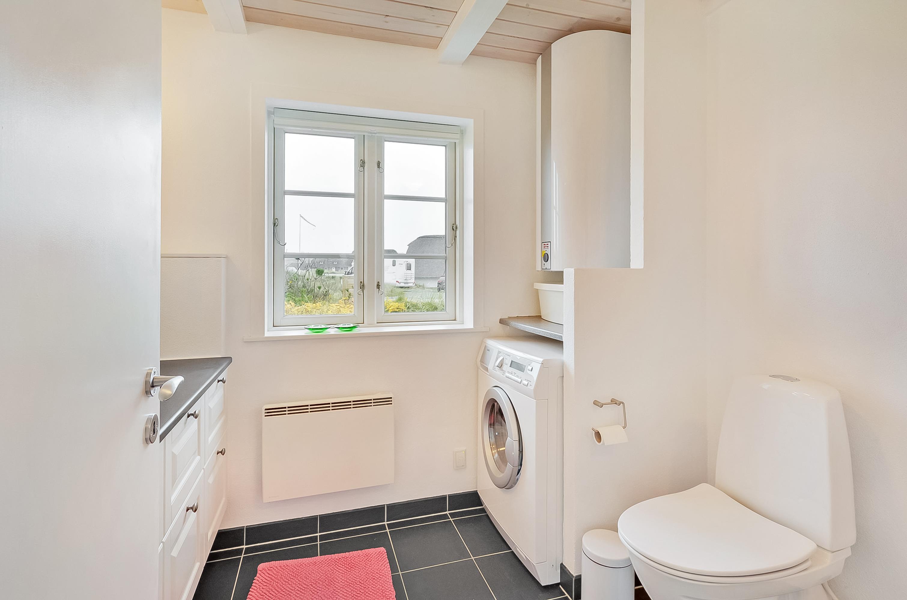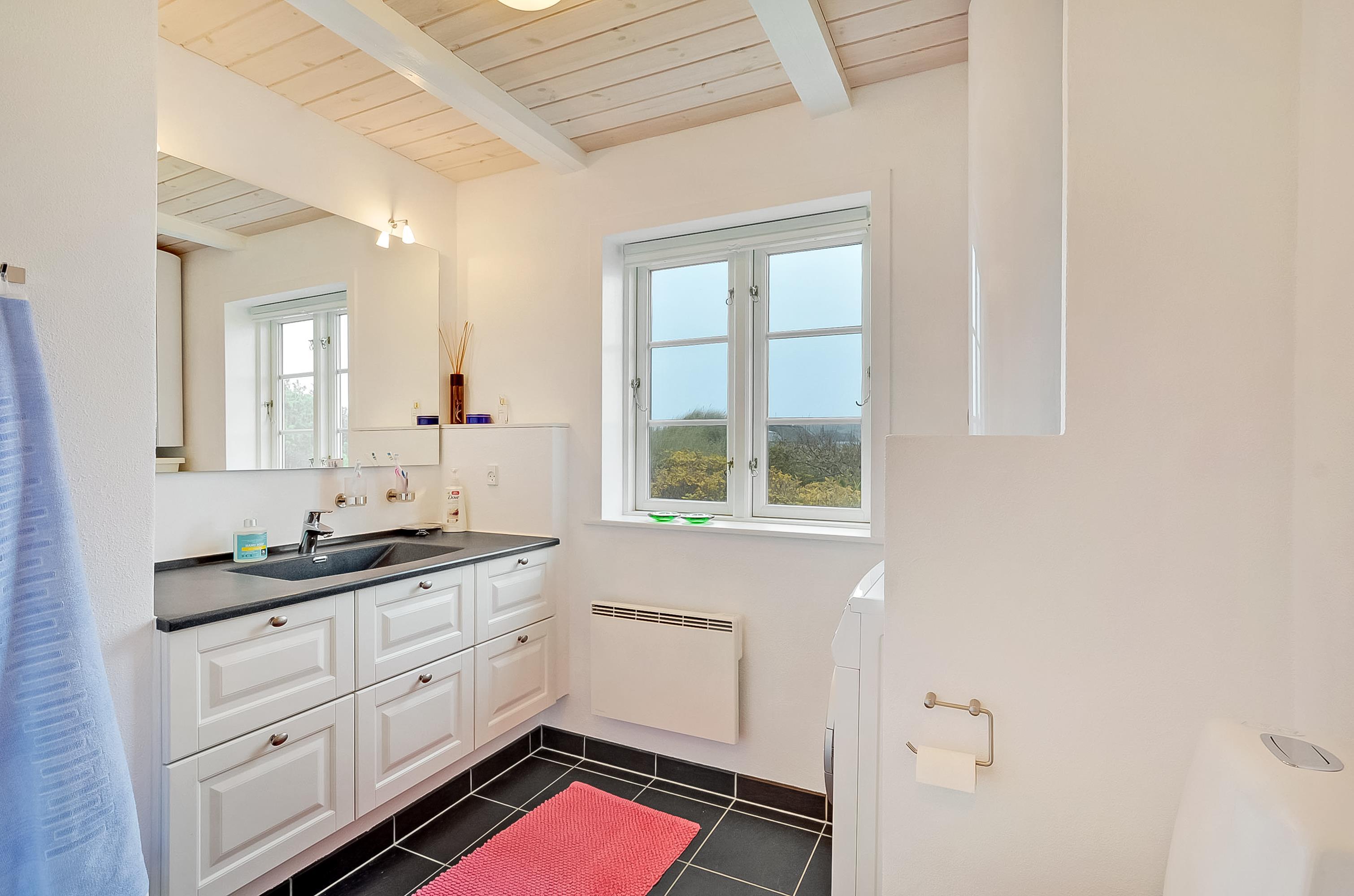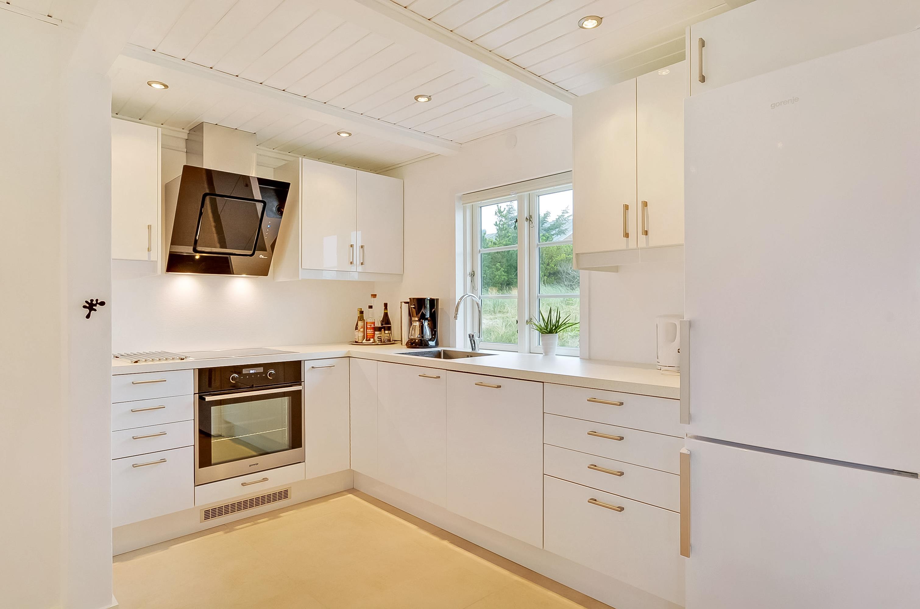 Indenfor mødes du af en lys og venlig atmosfære. Det åbne køkken er moderne indrettet og hænger naturligt sammen med stuen og spiseområdet. Her kan du slappe af i sofaområdet, nyde varmen fra brændeovnen og opleve ægte hygge. Fra stuen er der udgang til en delvist overdækket terrasse vendt mod sydvest, hvor du kan sidde i læ, nyde solen og den friske havluft – helt uforstyrret.