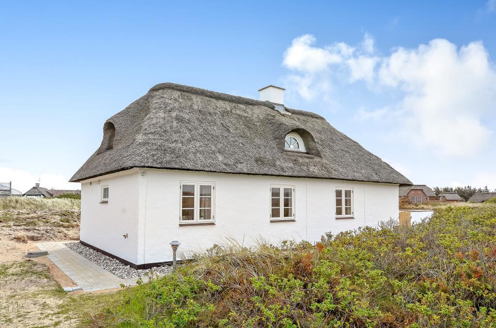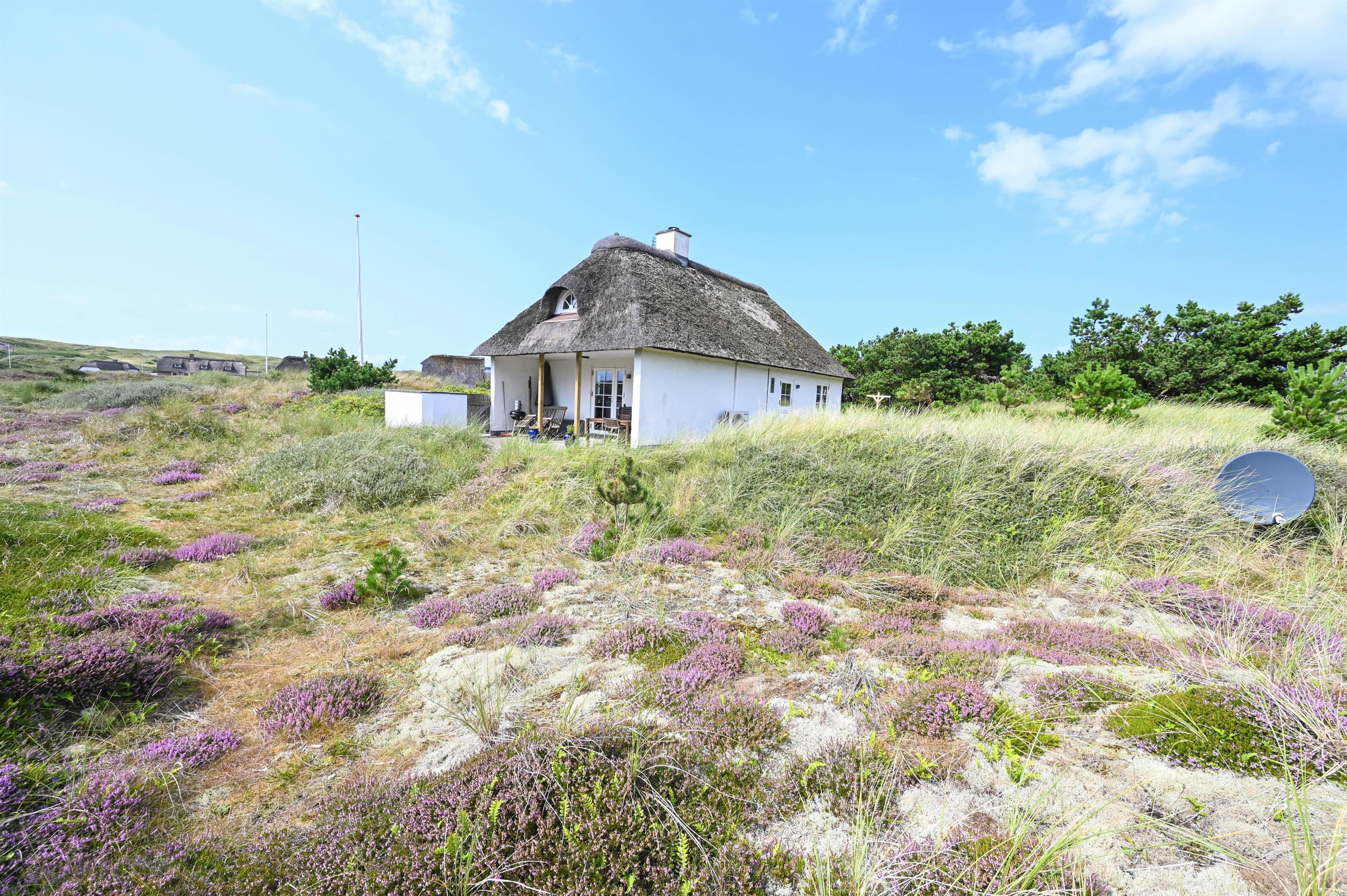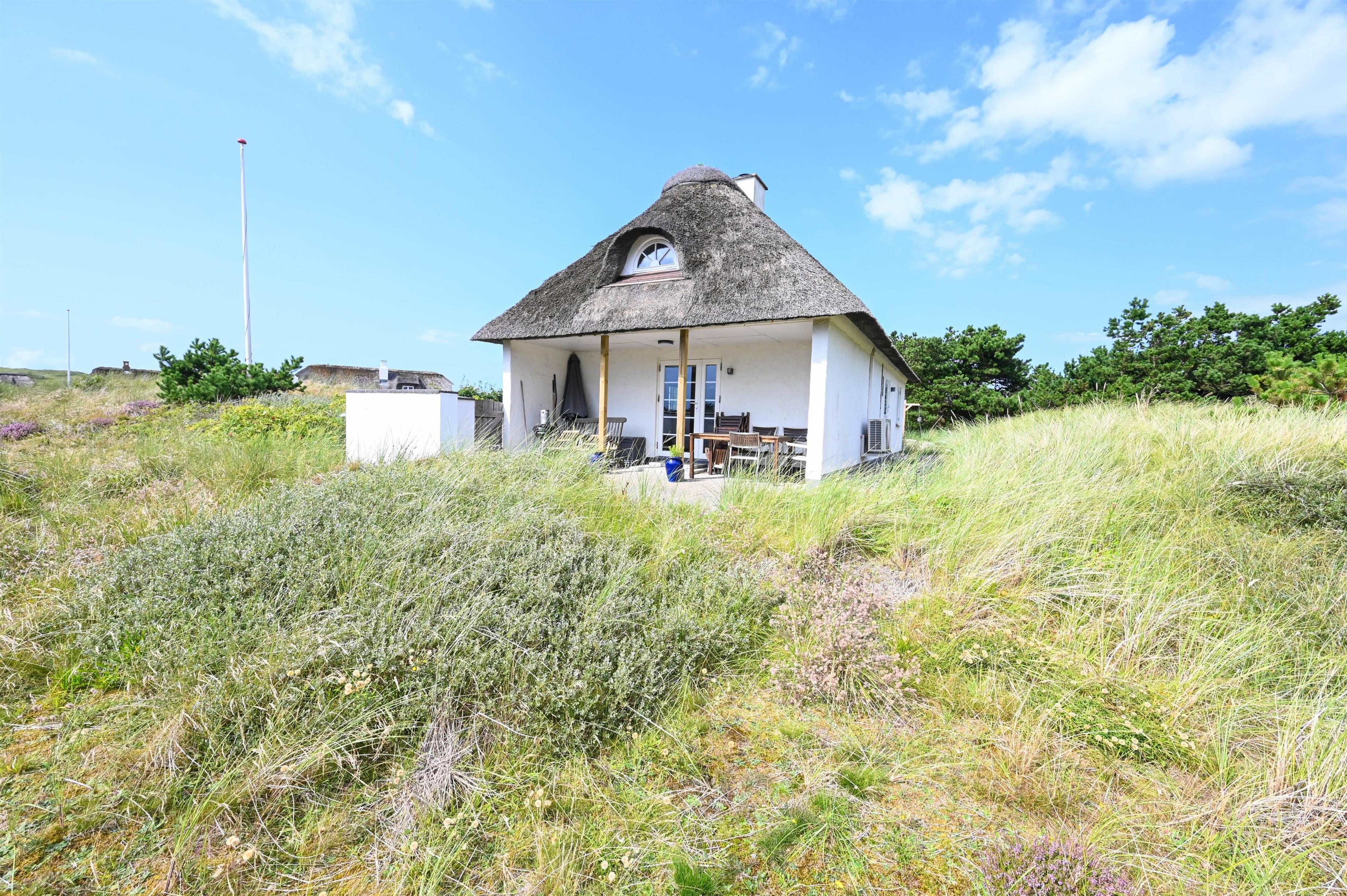 Dette smukke feriehus ligger på en 2.056 m² stor, kuperet klitgrund i det gamle Vedersø Klit – kun få minutters gang fra Vesterhavet og med en skøn udsigt til det kendte sømærke i horisonten.
