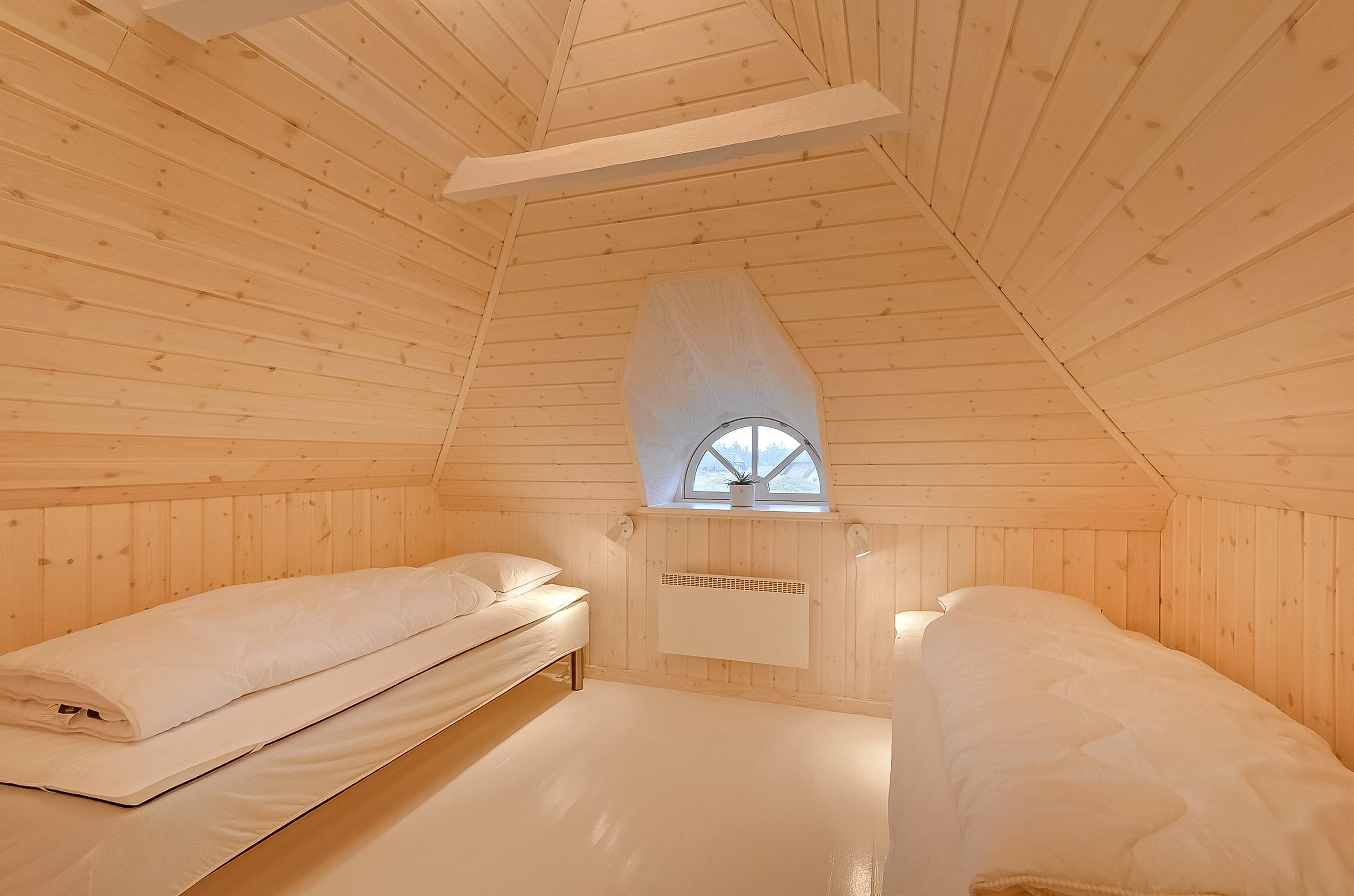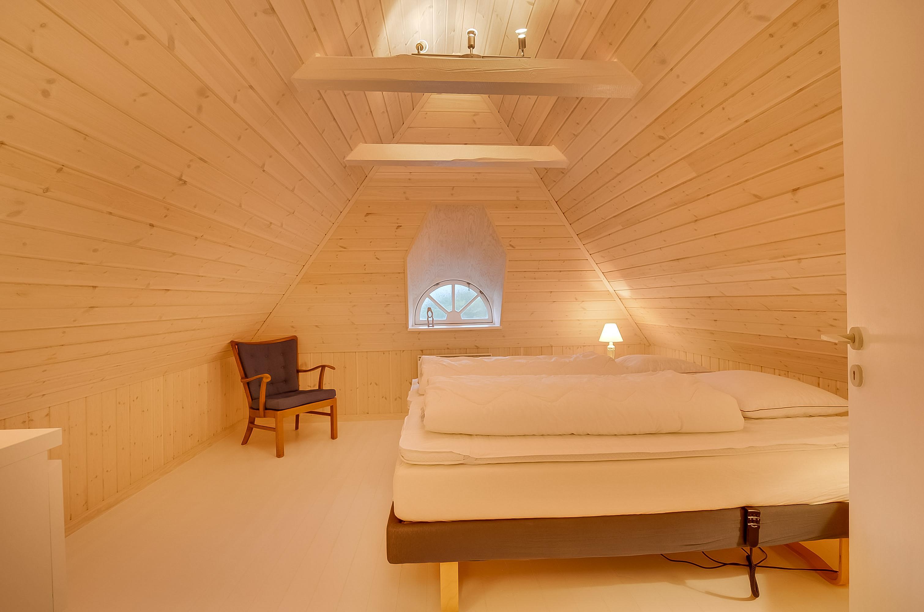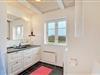 Badeværelset er moderne med bruseniche og vaskemaskine. På 1. sal finder du to smukt renoverede soveværelser – det ene med en dobbeltseng med elevationsfunktion, det andet med to enkeltsenge.