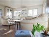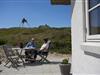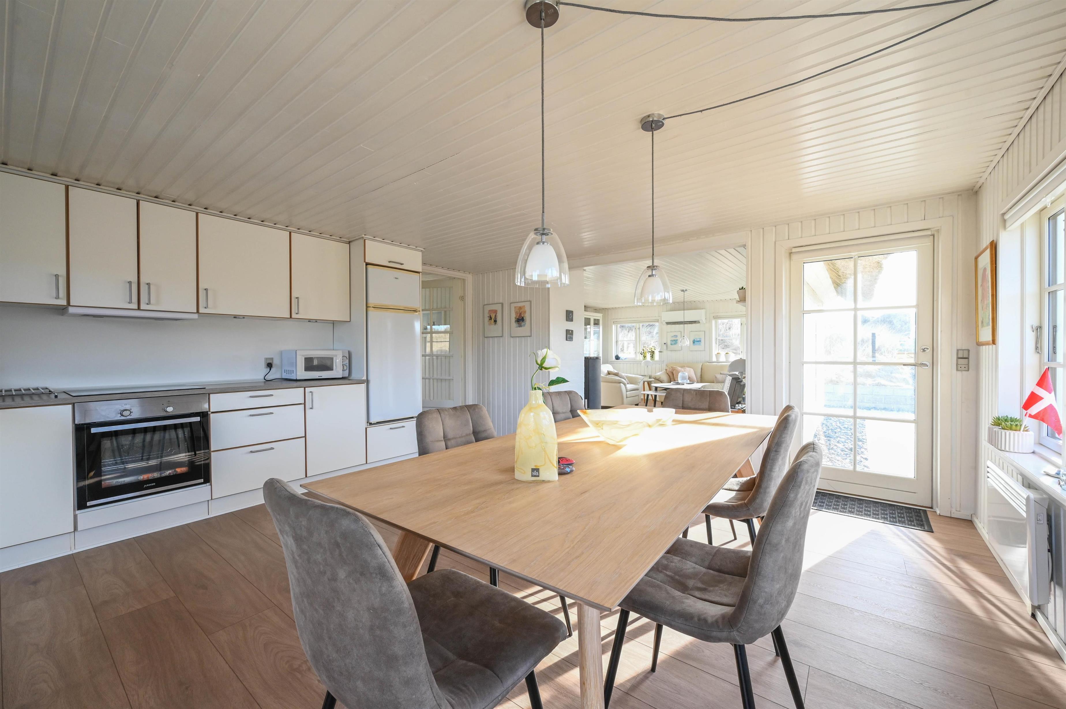 Fra stuen er der udgang til den syd/vest-vendte terrasse, der er hyggeligt og naturligt omkranset af klitterne.
