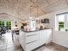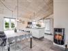 Køkken og stue ligger i åben forbindelse, så her er god plads til samvær. Den solide brændeovn sørger for hygge og varme, mens klinkegulvene gør huset praktisk og let at holde rent – især for jer, der har hund med.