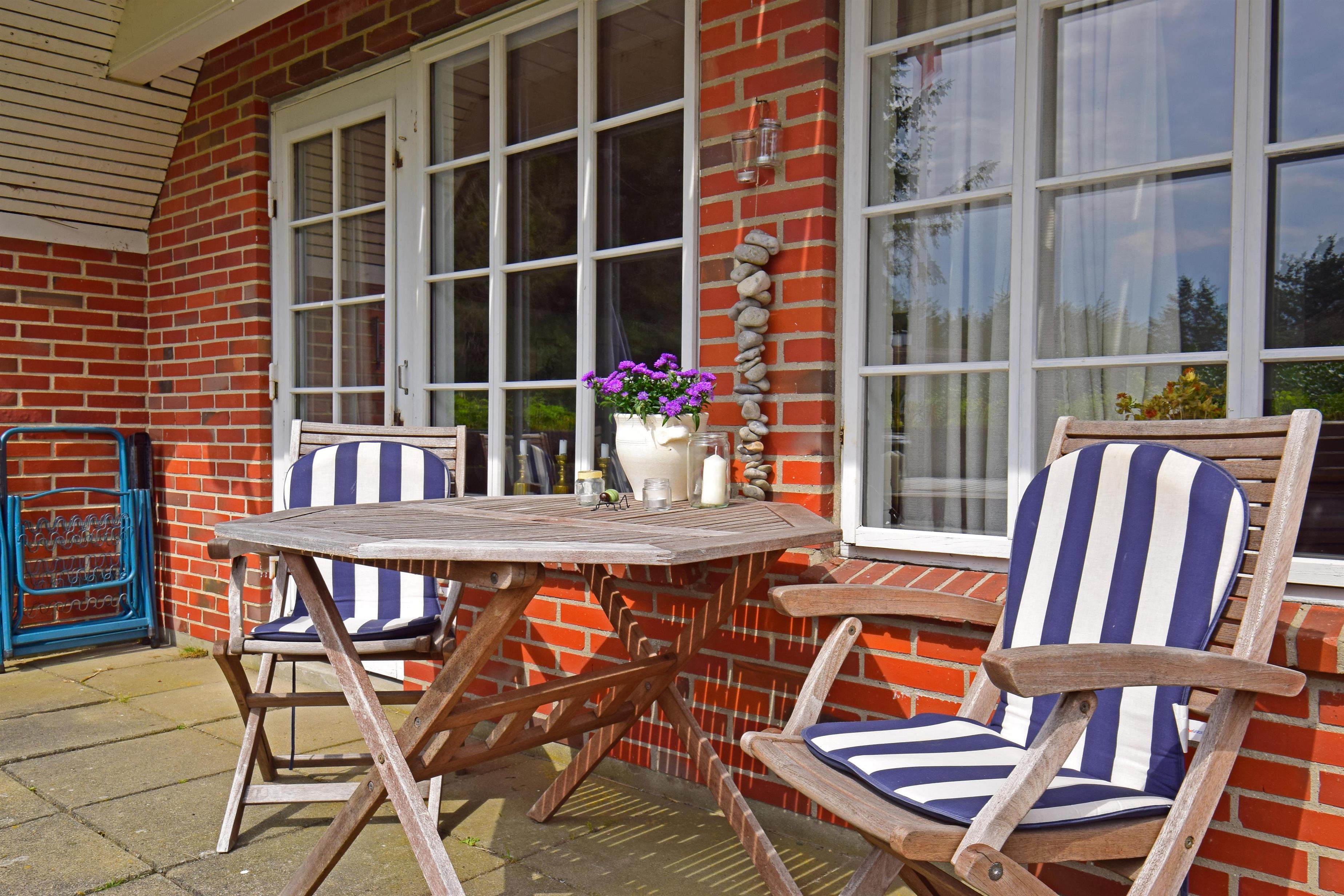 På de solrige terrasser – den sydvendte delvist overdækket – kan I nyde solen, den friske vestjyske luft og den særlige ro, som kun findes tæt på havet.