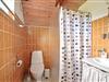 Badeværelse med bruseniche, vaskemaskine og toilet
