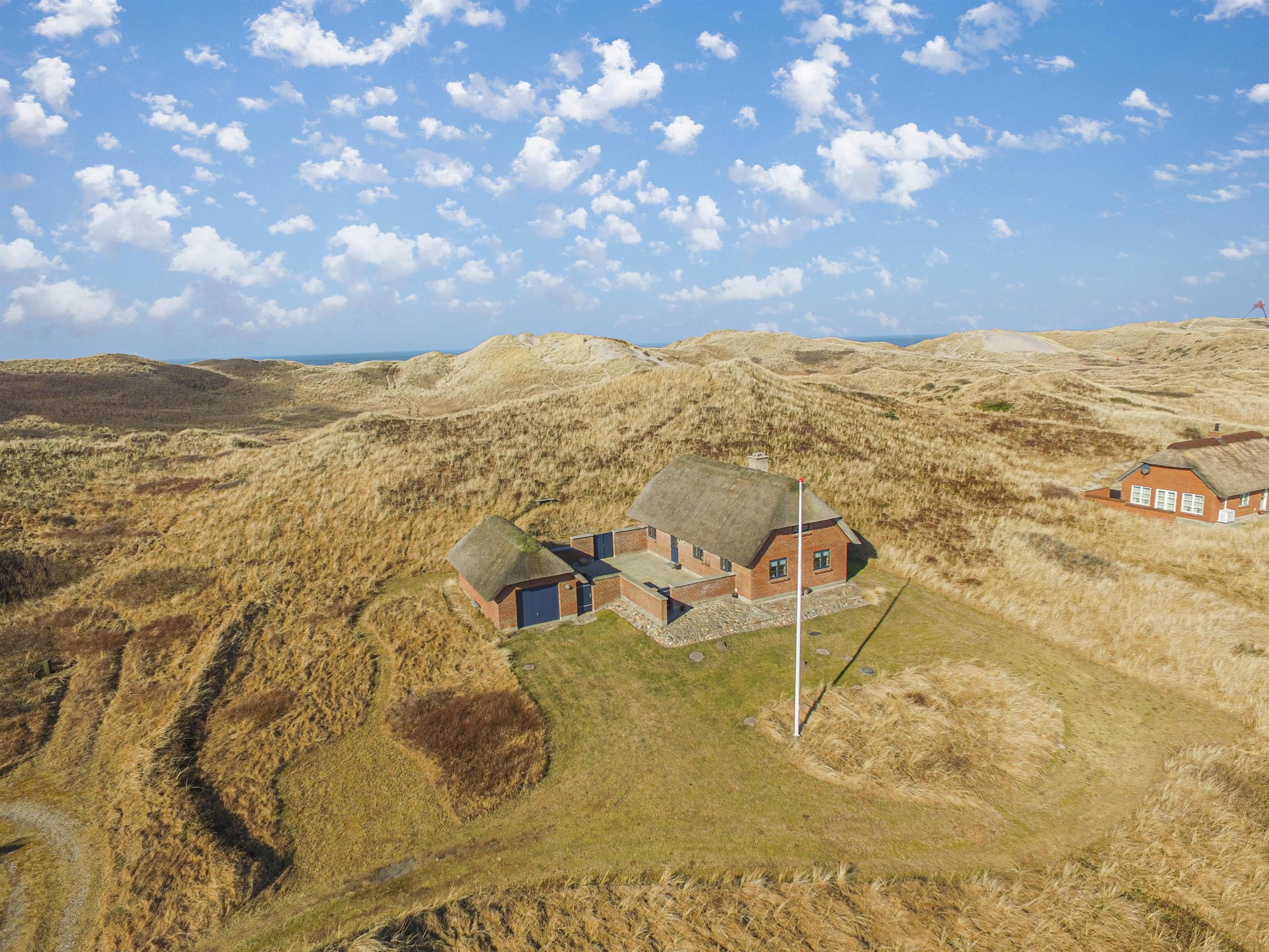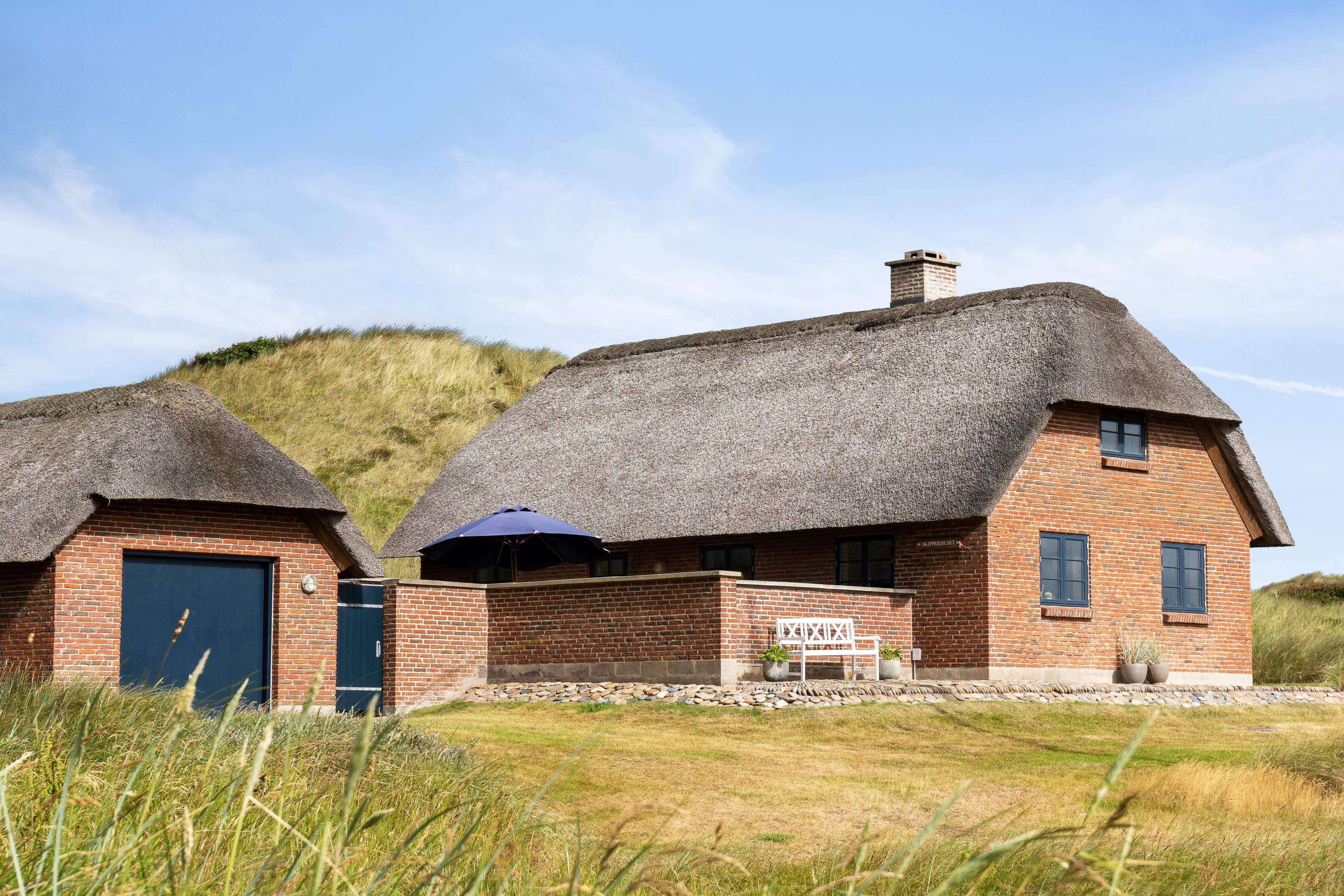 Huset ligger helt unikt – med sin egen klittop mod vest, hvorfra I kan nyde den smukkeste solnedgang over havet og det bølgende klitlandskab.