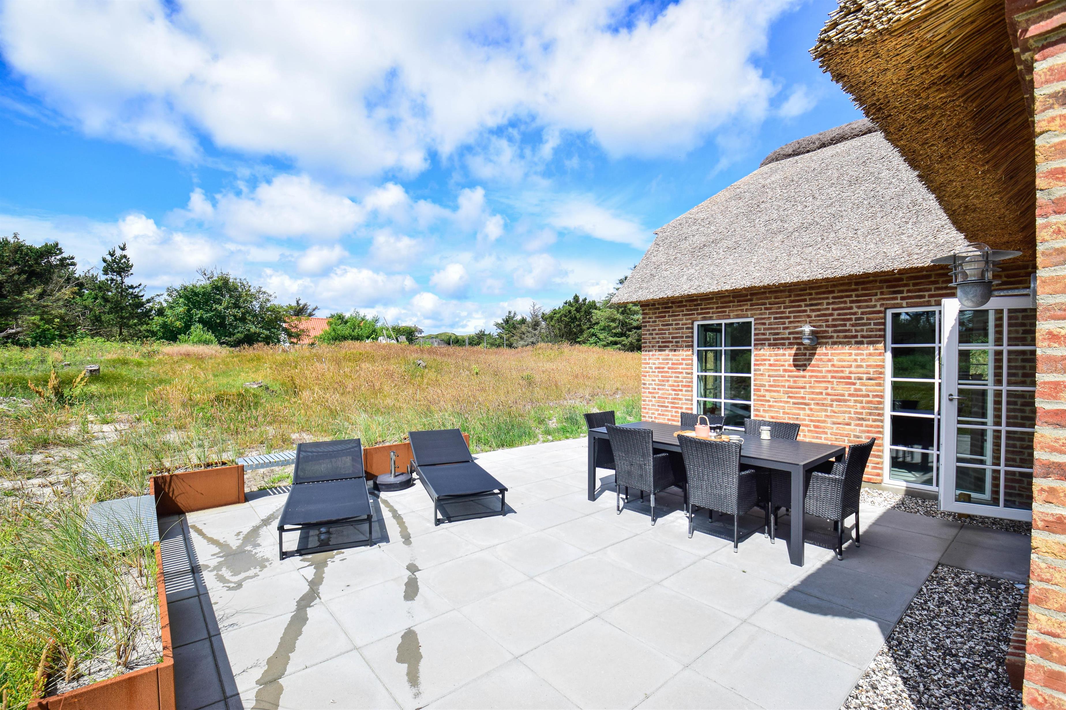 Nederst på grunden finder I en ekstra terrasse med udendørs spabad og bruser – herfra kan I sidde i det varme vand og nyde udsigten til klitterne og solnedgangen.