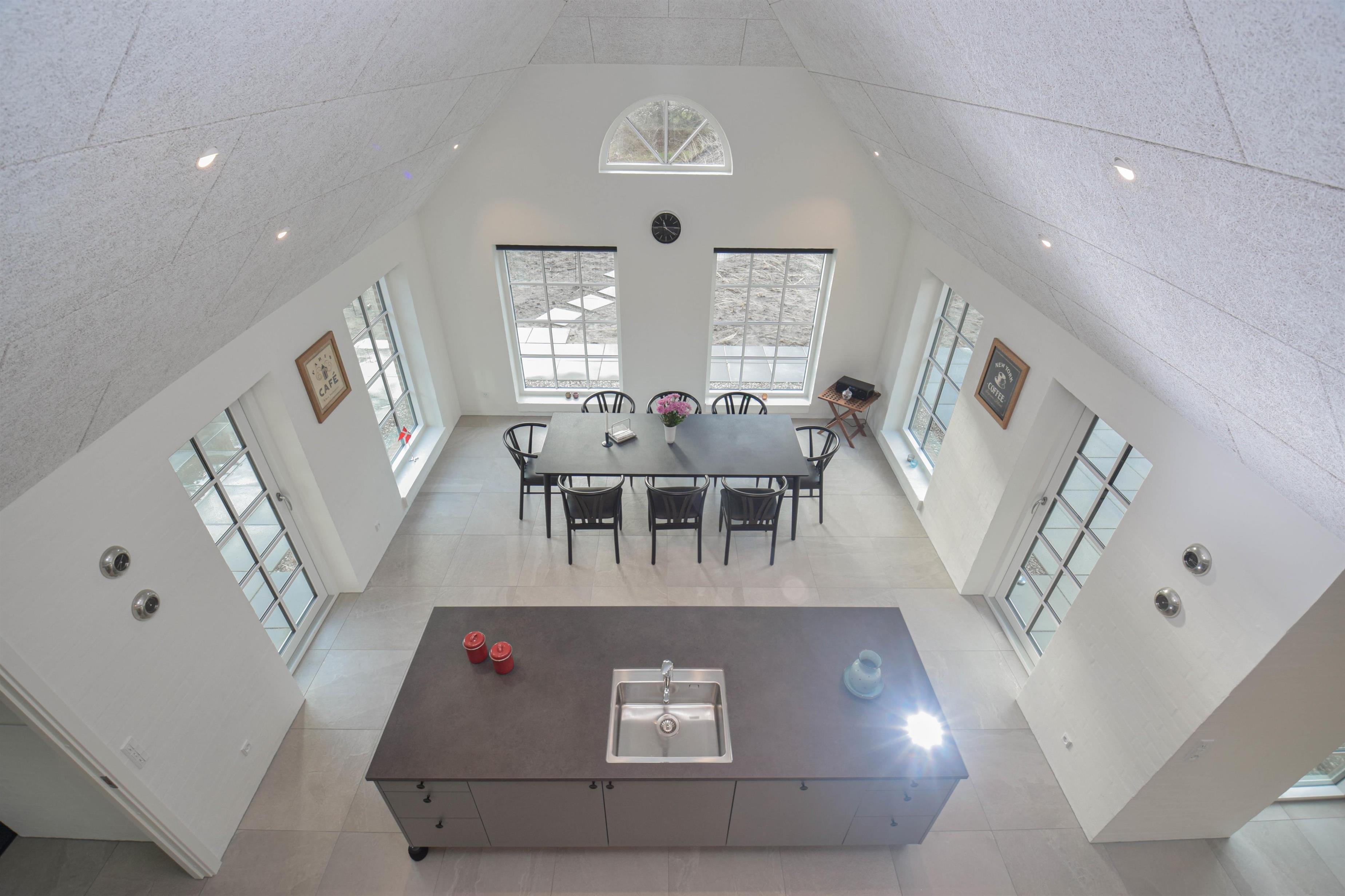 Det store køkken/alrum er hjemmets naturlige samlingspunkt, hvor der er god plads til madlavning, fællesskab og hyggelige stunder.