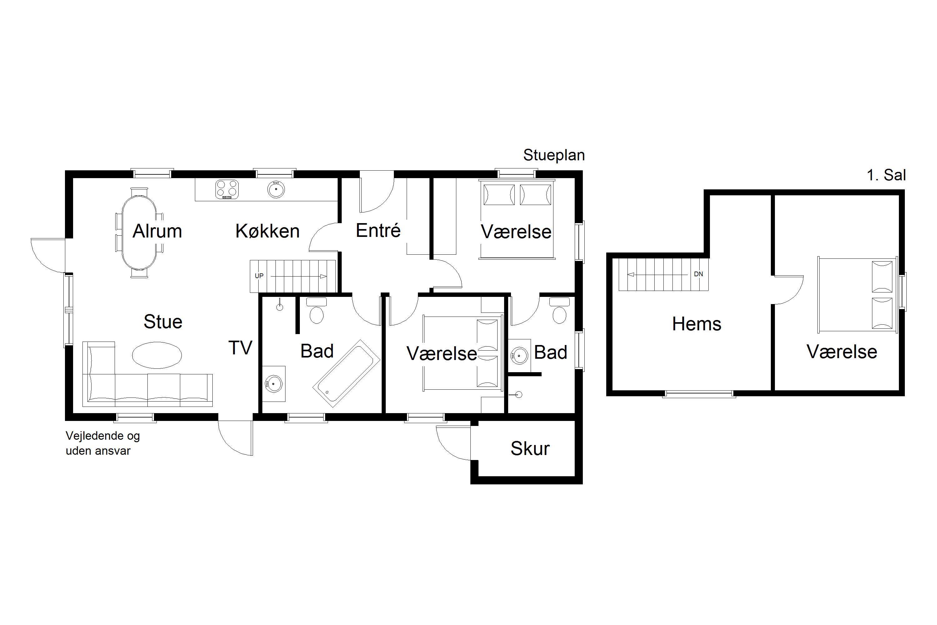 - Ekstra værelse på hemsen med to enkeltsenge (kan sættes sammen til dobbeltseng)