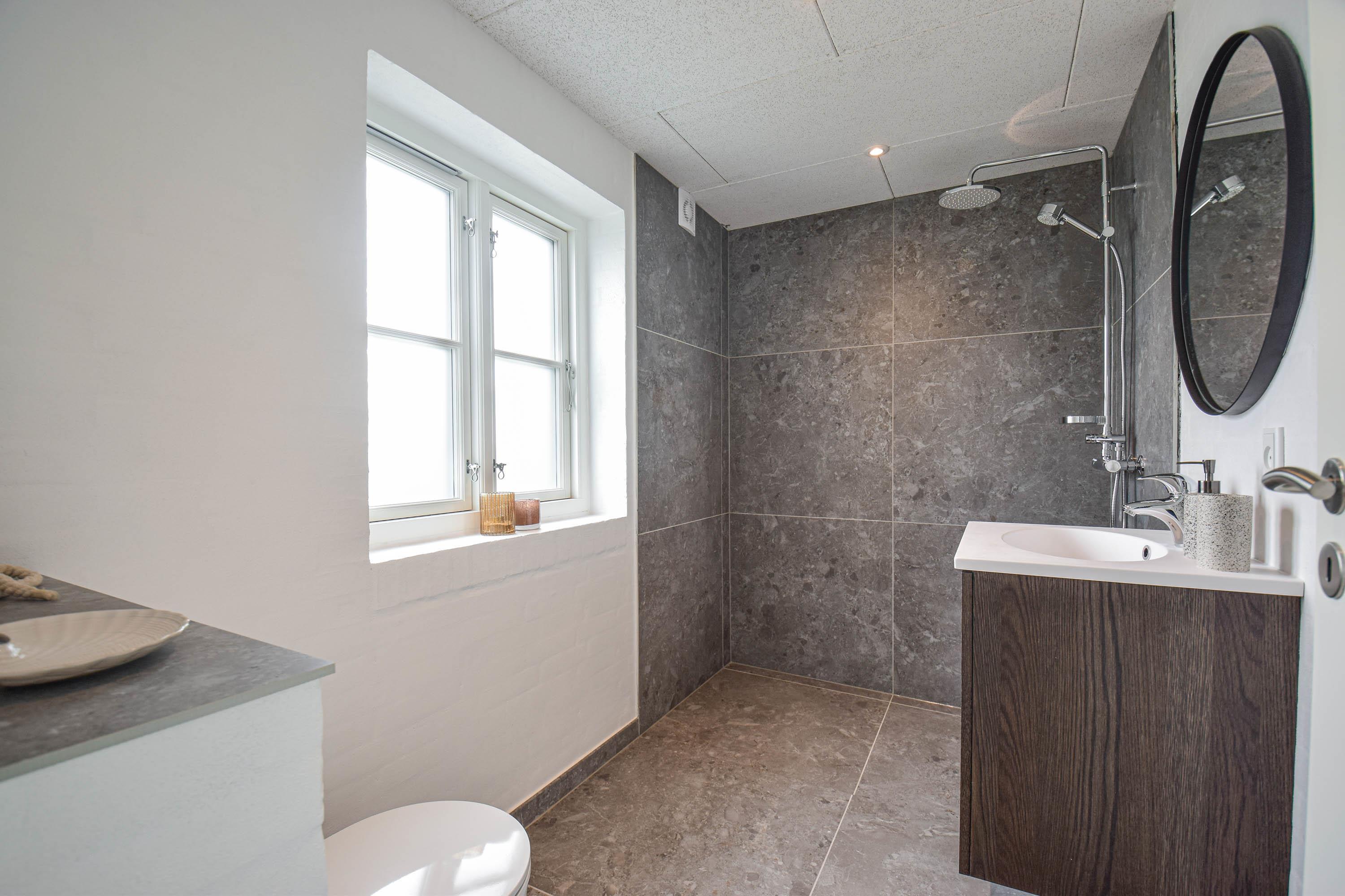 Køkkenet er moderne og fuldt udstyret, og i den hyggelige stue står en stor, komfortabel sofa, hvor hele familien kan samles til spil, film eller afslapning.