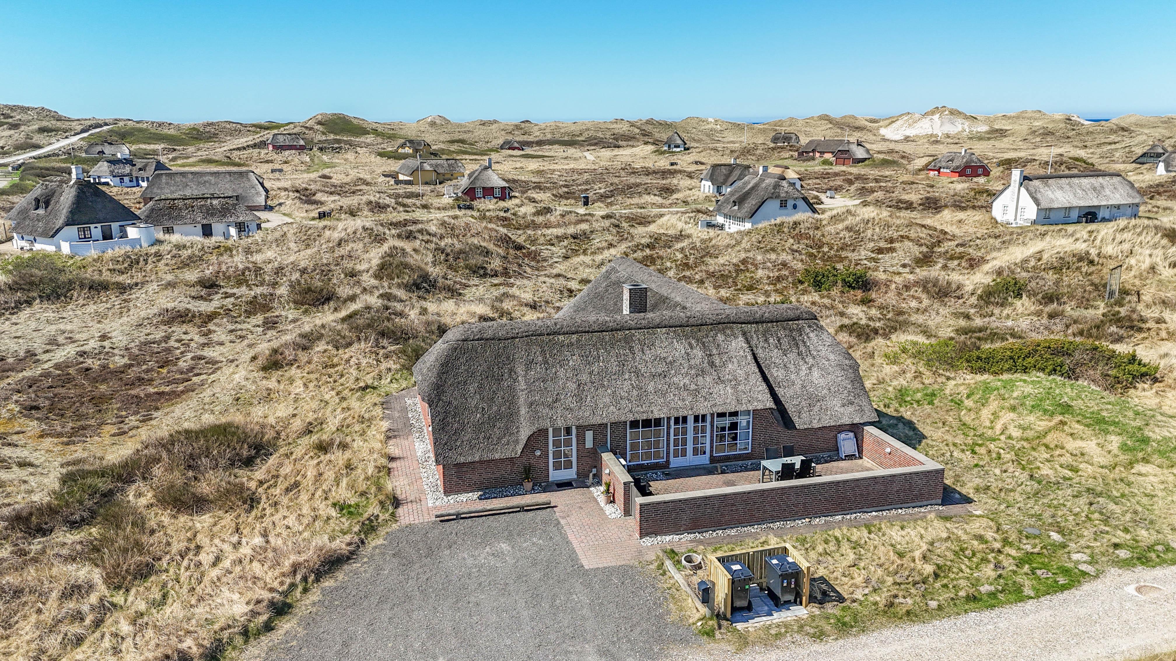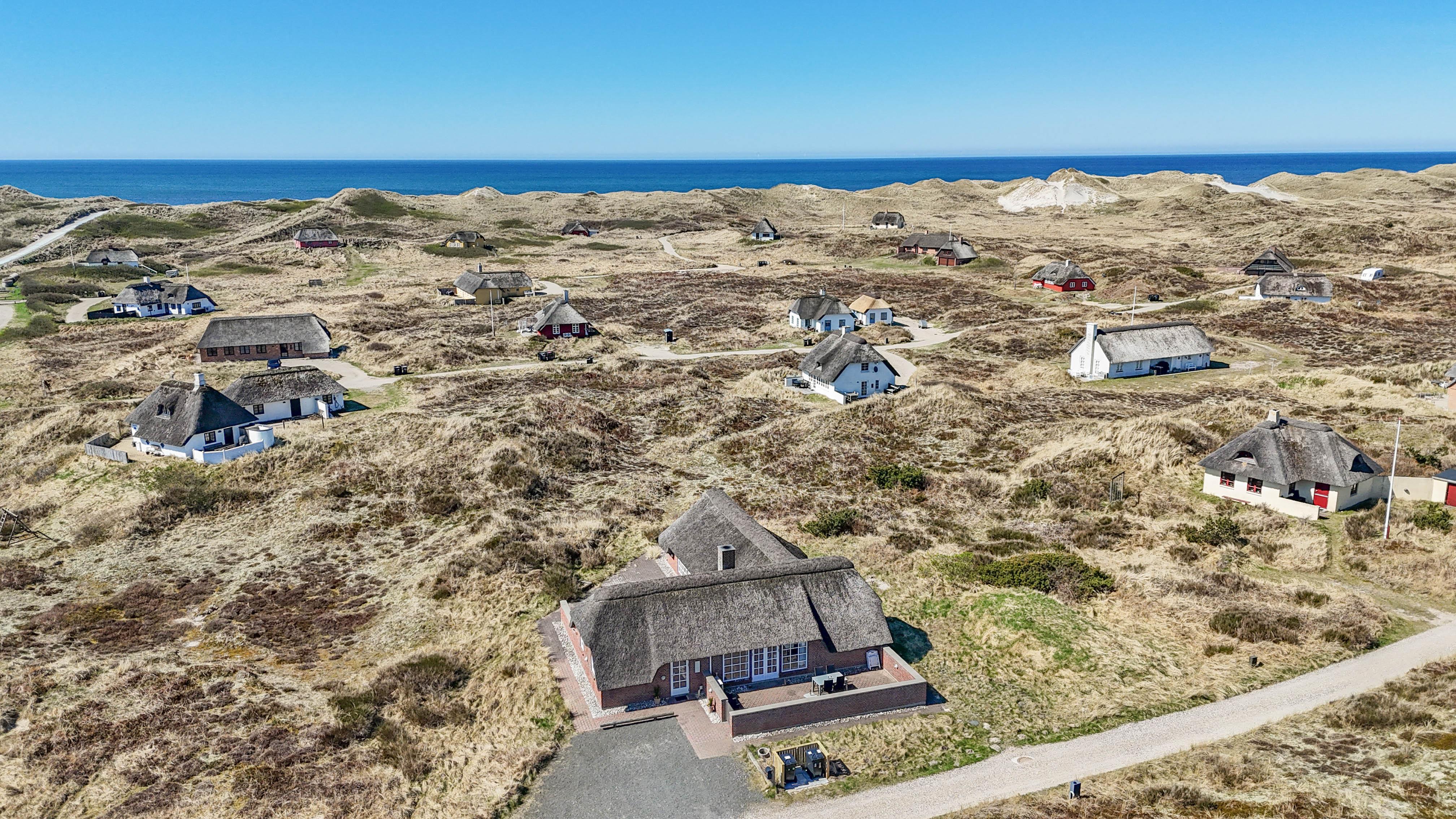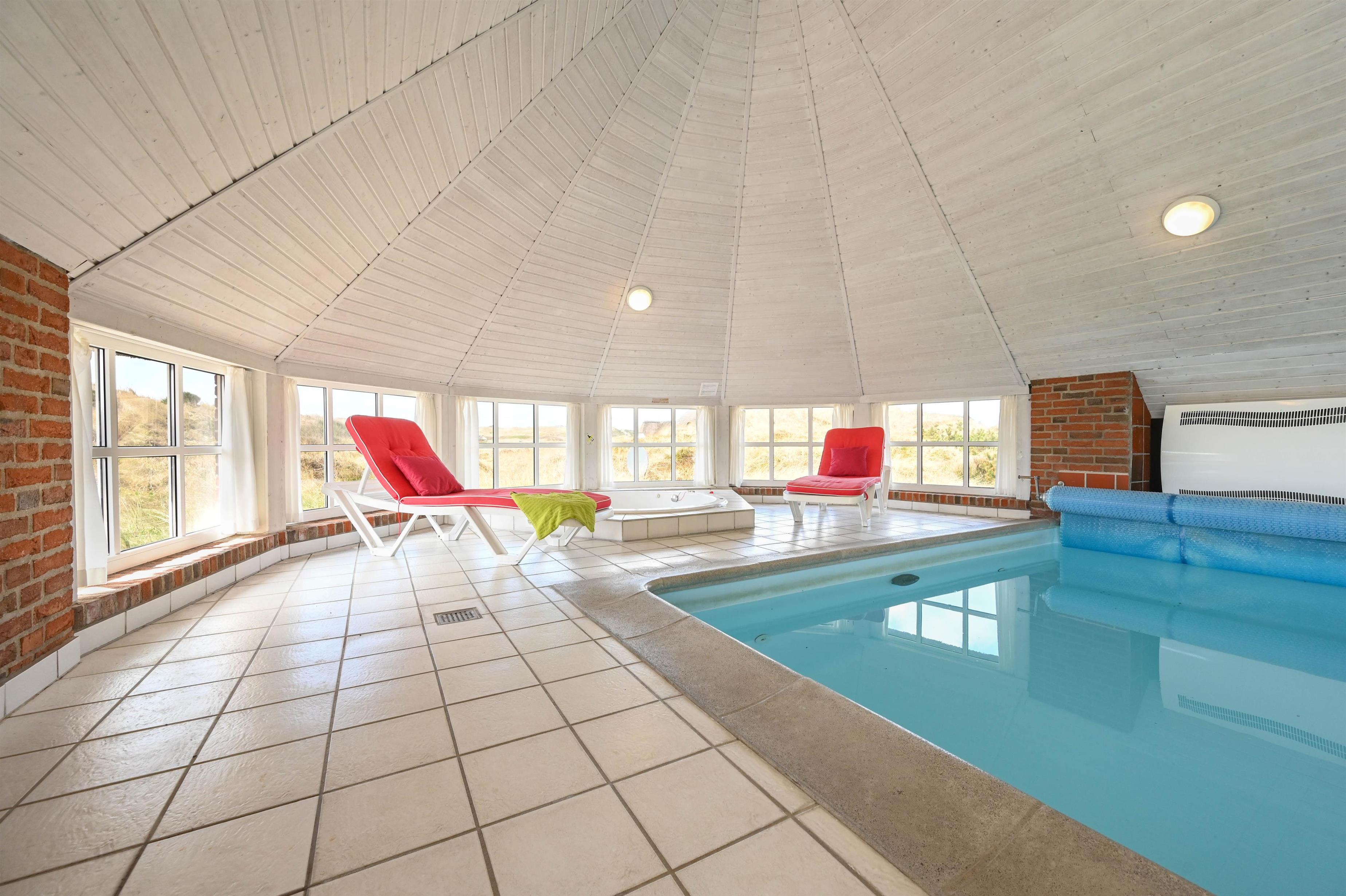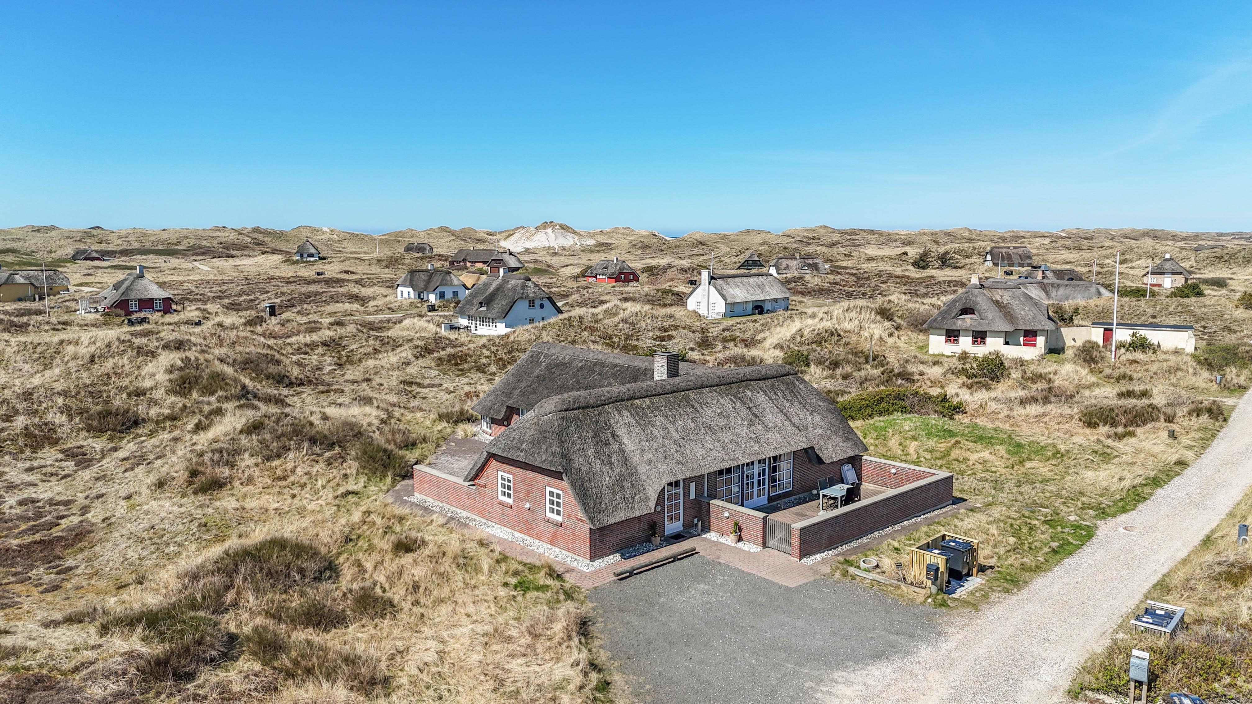 Beliggende på en flot klitgrund midt på Vedersø Klit, ligger dette feriehus med pool. Feriehusets klitgrund er på 2400 kvm.