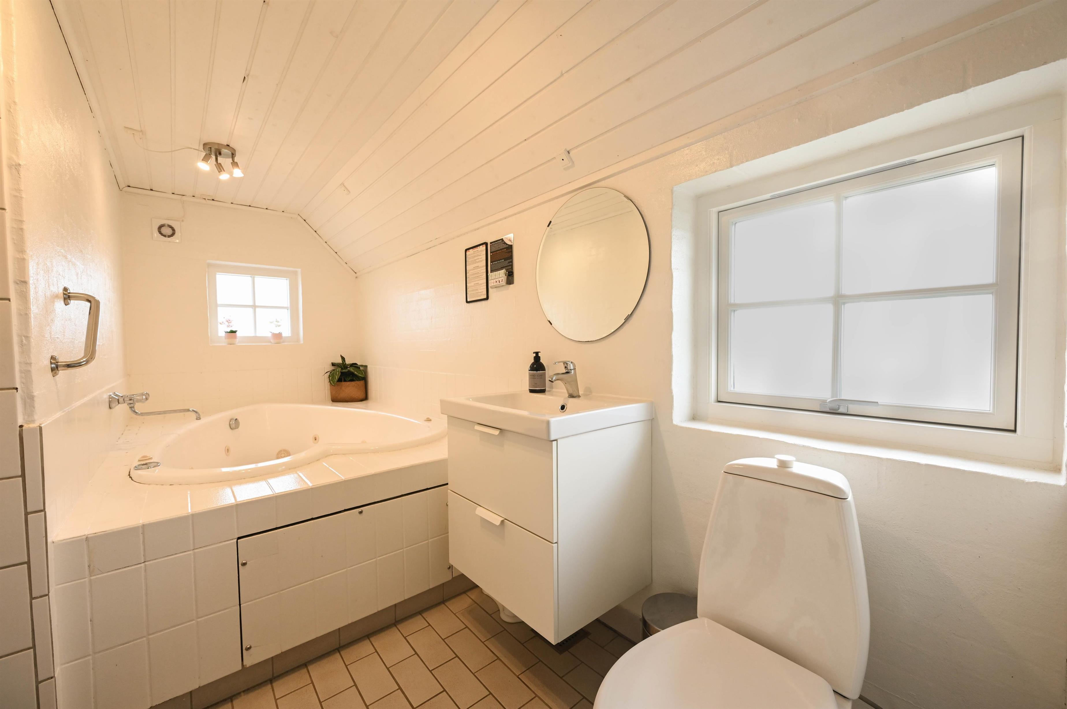 Lyst badeværelse med spabad, sauna og gulvvarme