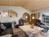Den store opholdsstue ligger i åben forbindelse med det veludstyrede køkken – her skaber brændeovnen, klinkegulv med gulvvarme og bløde møbler en indbydende atmosfære. Fra stuen er der udgang til en dejlig syd-/vestvendt terrasse, hvor du kan nyde solen dagen lang.