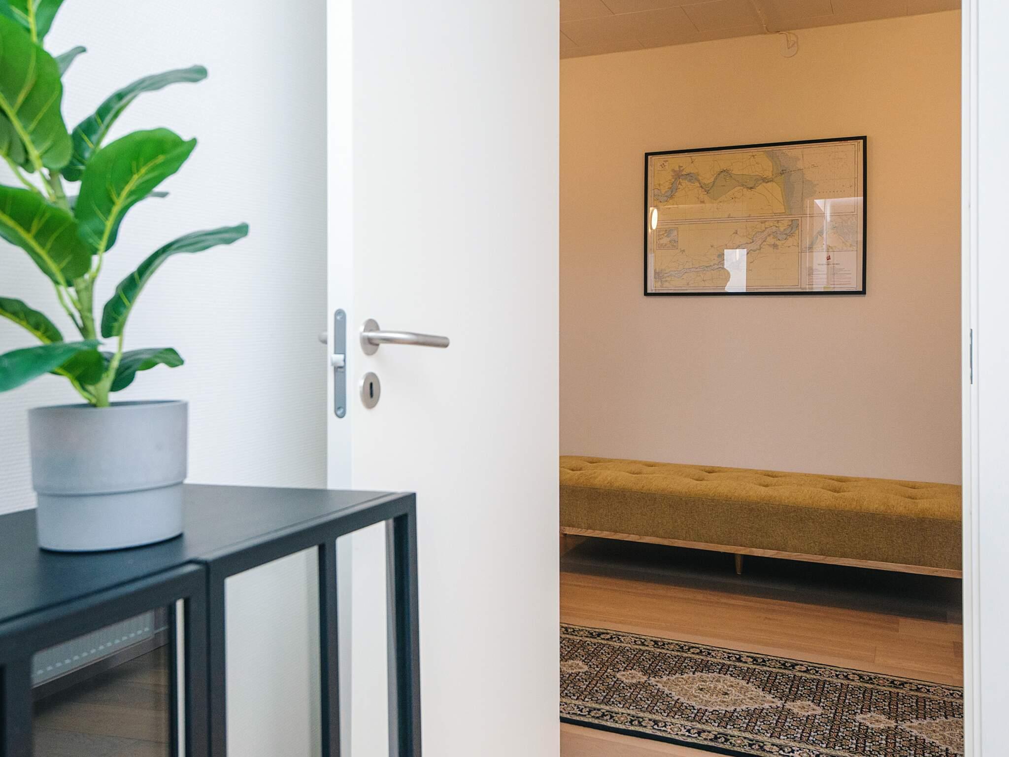 I stueetagen finder du et stort fællesområde, som er frit tilgængeligt for alle gæster. Her kan man samles og socialisere, uden at pladsen bliver for trang.