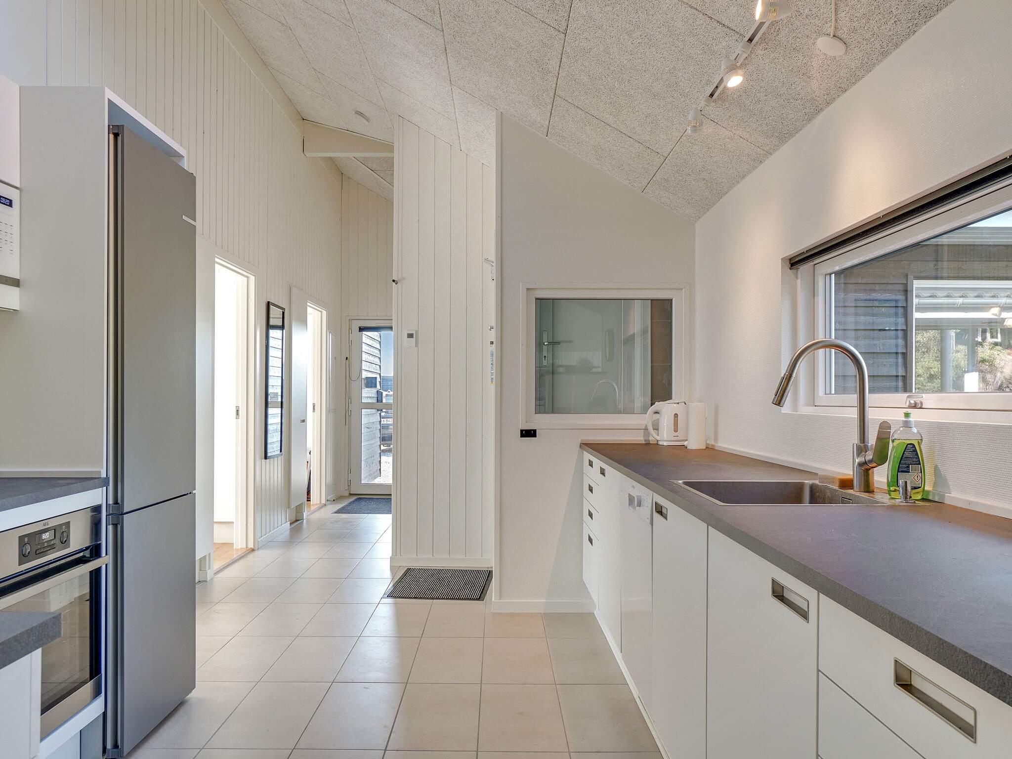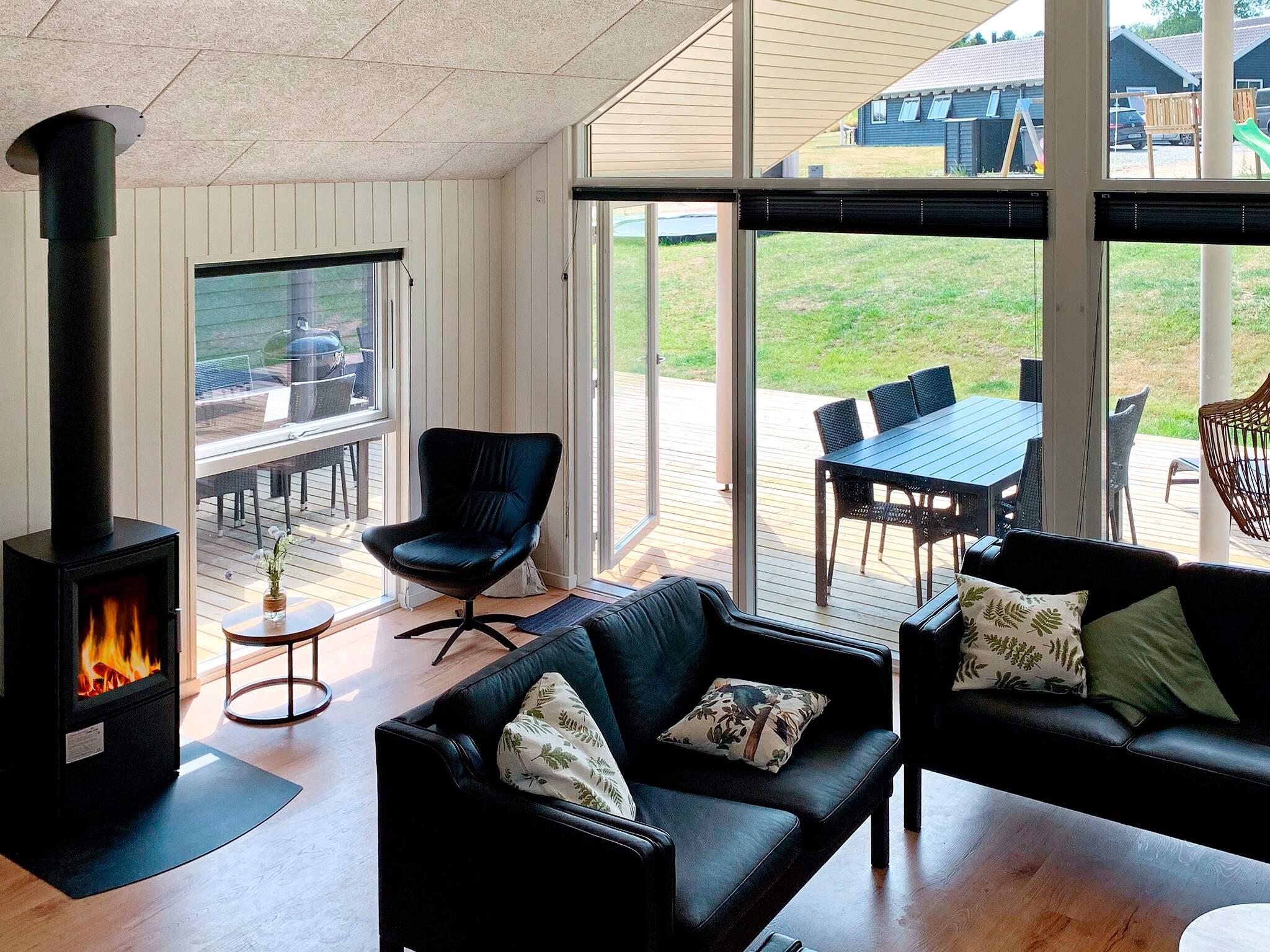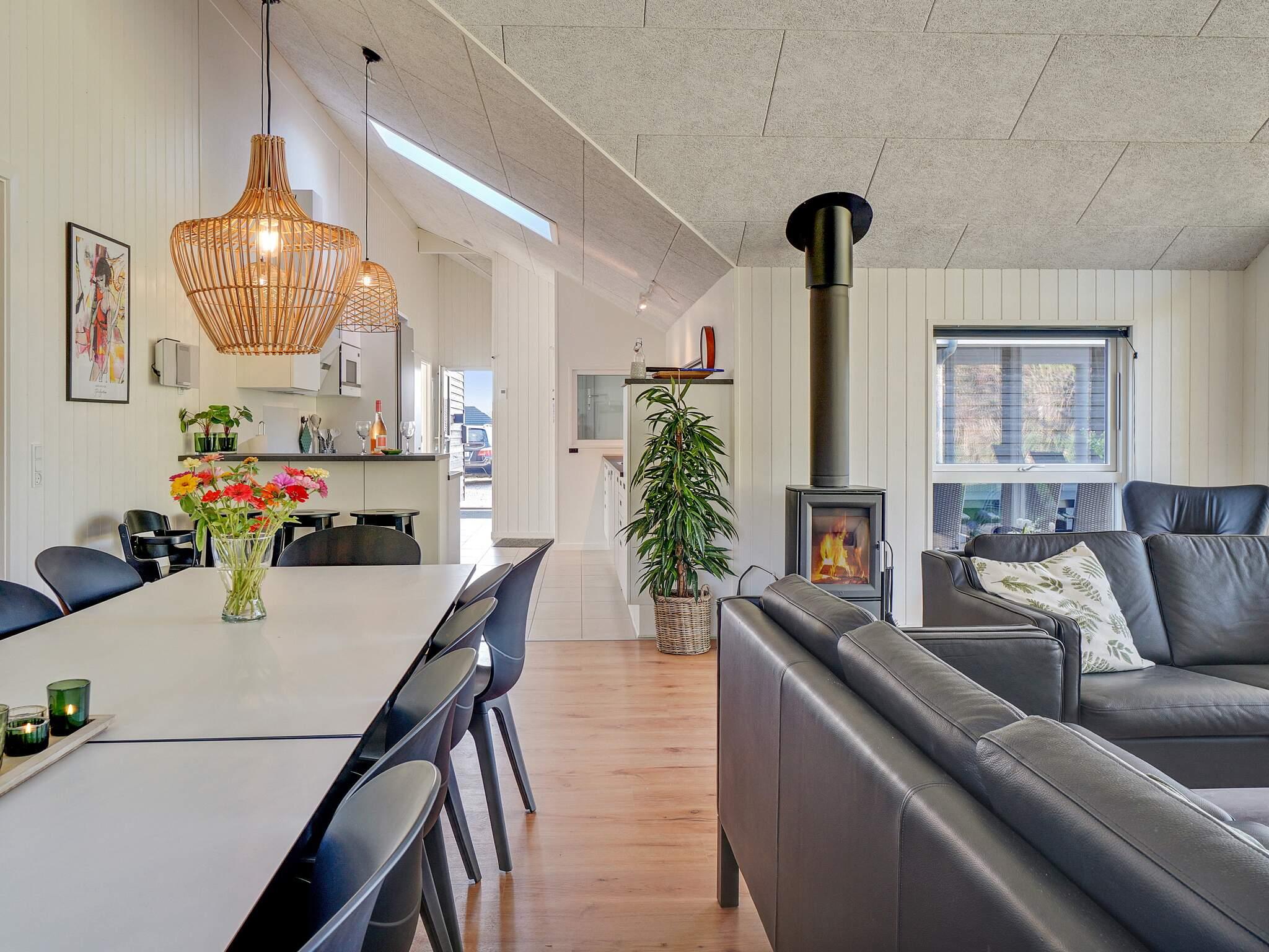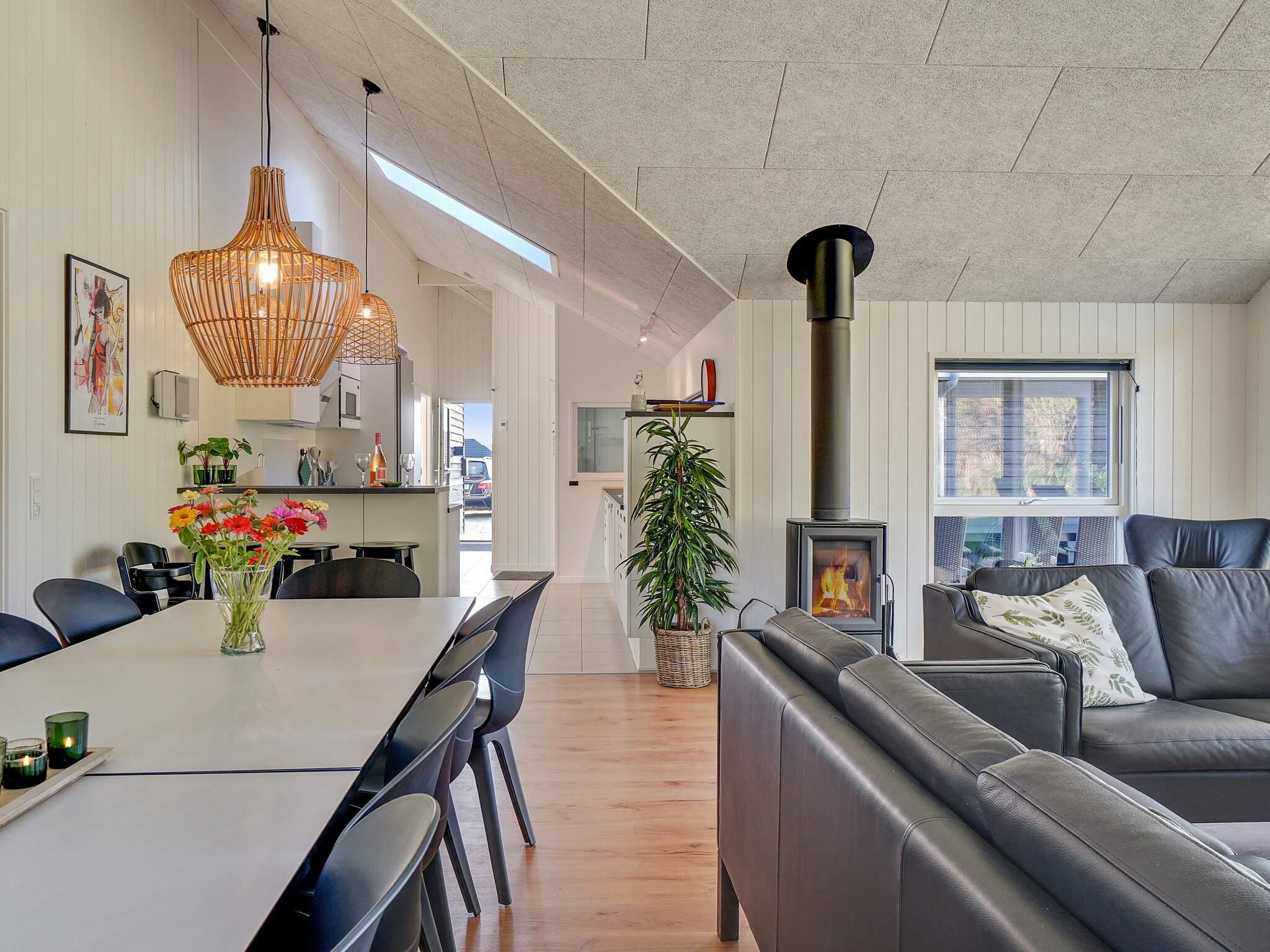 Køkken/alrummet fungerer som et naturligt samlingspunkt med sin centrale placering midt i sommerhuset. Her kan I hygge jer i sofaen, foran brændeovnen eller samles til et lækkert måltid mad. I forlængelse af stuen ligger det veludstyrede køkken med bl.a. 2 ovne, så hvis I er på madholdet, er I ikke afskåret fra resten af flokken.