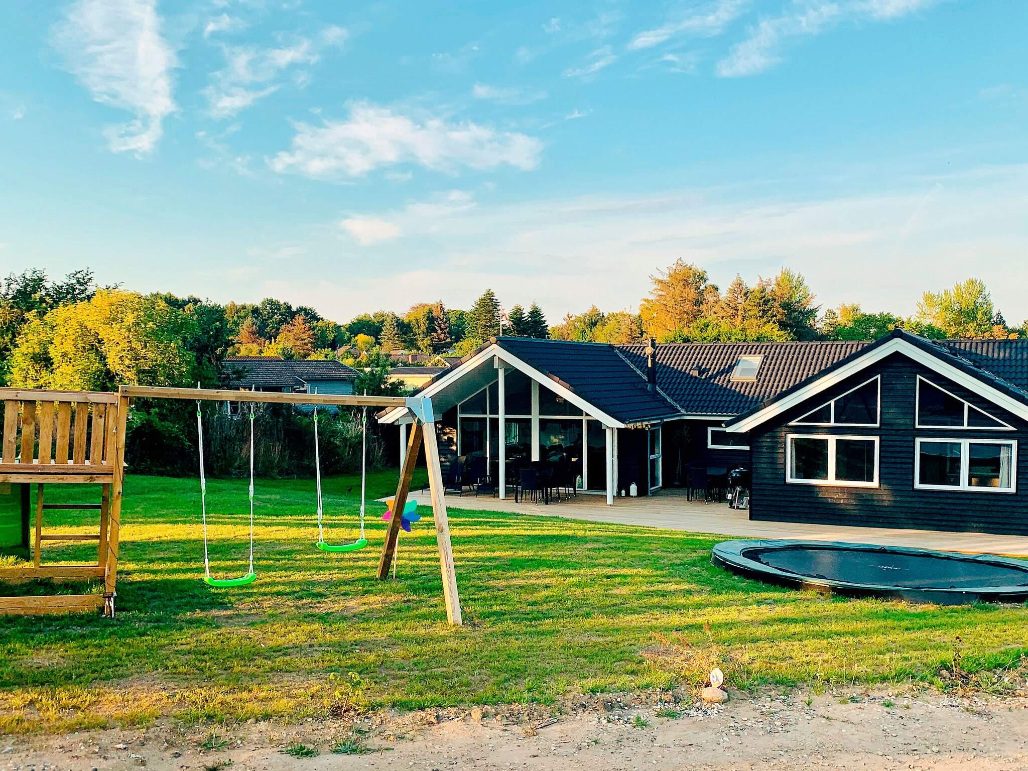 I haven er der legeredskaber til børnene: nedgravet trampolin, et legetårn med gynge og sandkasse (benyttes på eget ansvar/forsikring).