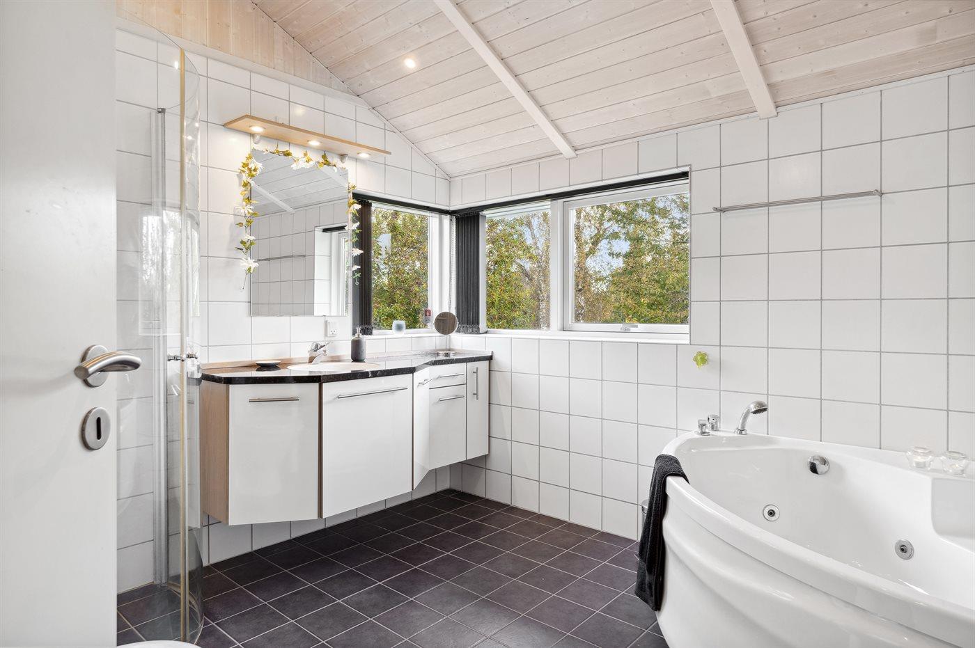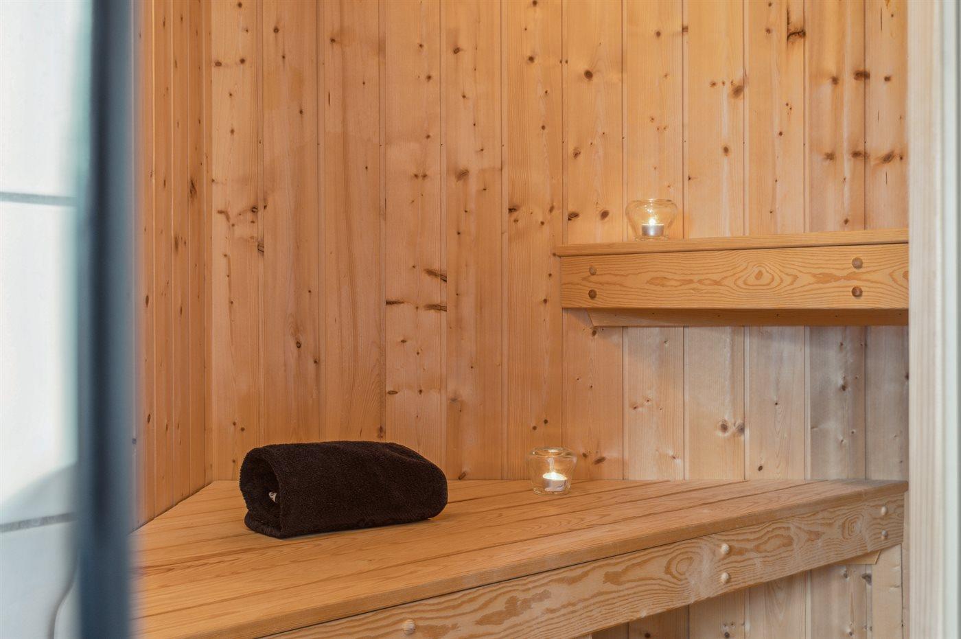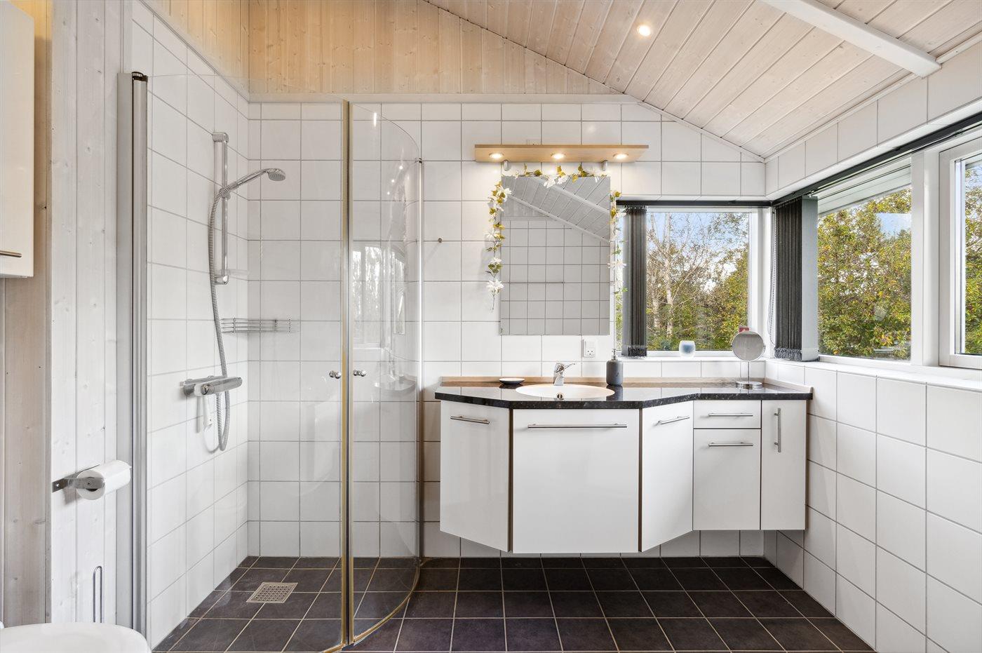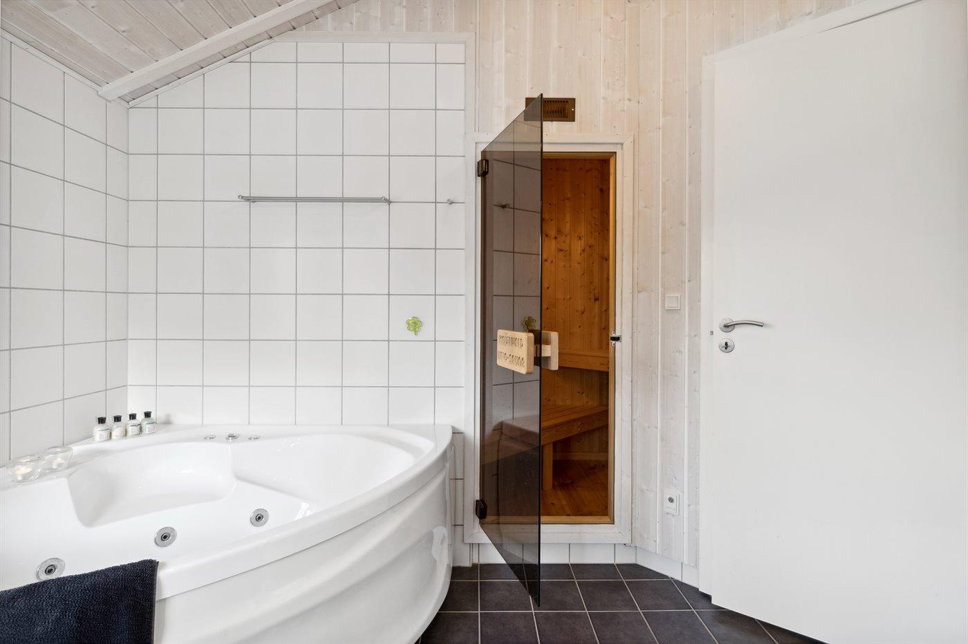 Der er 1 badeværelse med bruseniche og 1 toilet.. Der er gulvvarme på 1 badeværelse. I saunaen er der mulighed for afslapning.