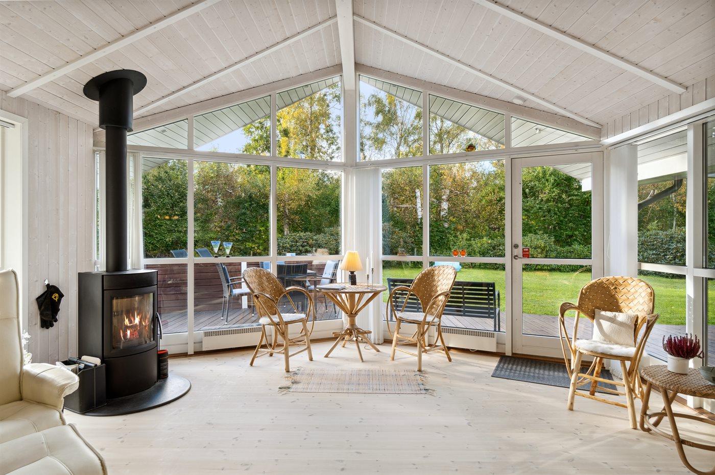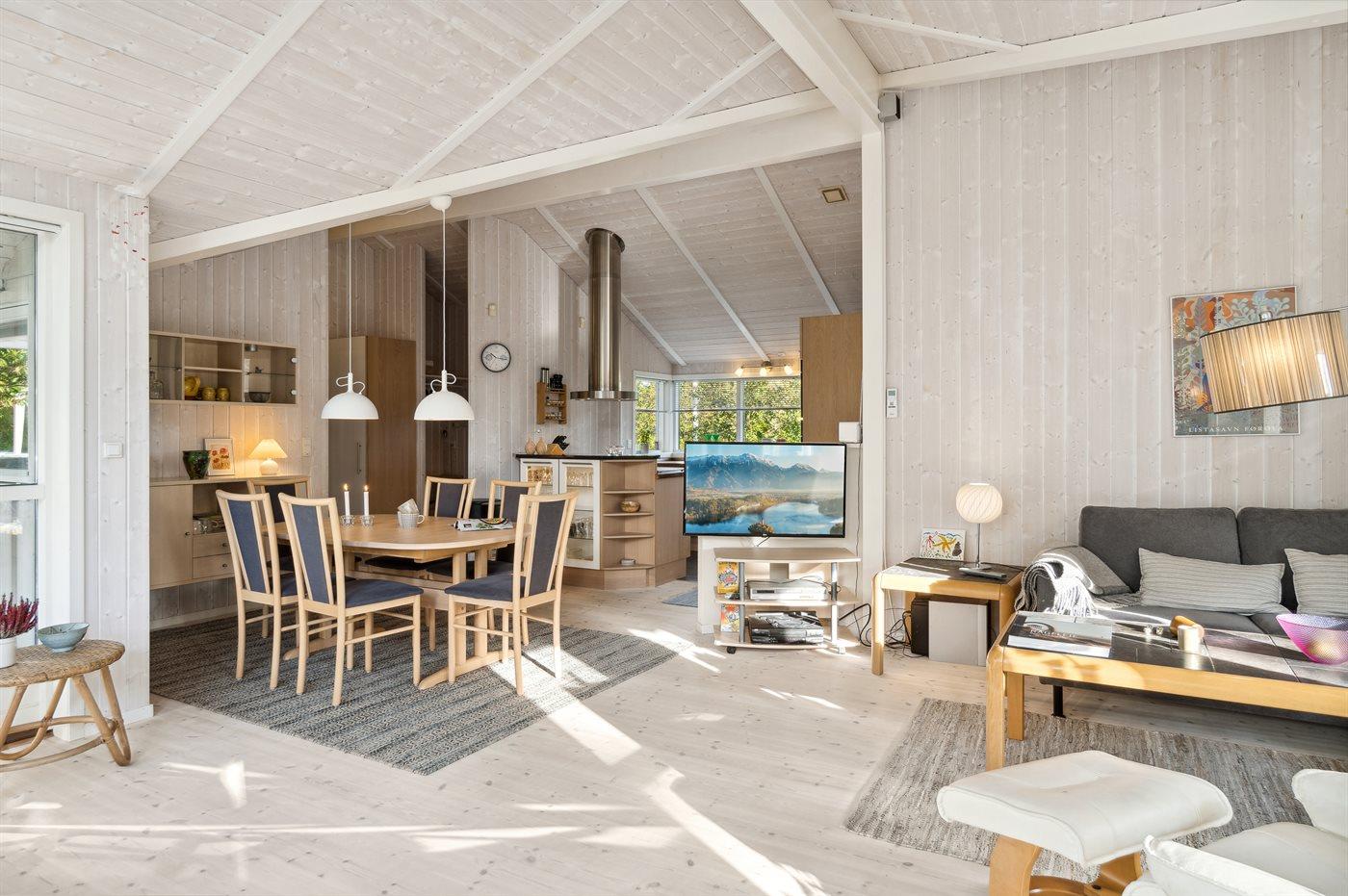 Et dejlig stort og lyst sommerhus, hvor der er plads til hele familien. Dette hus er især egnet til børnefamilier, fordi der er mange muligheder for at lege på grunden og på den store, overdækkede terrasse.