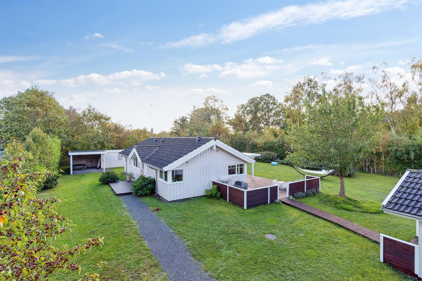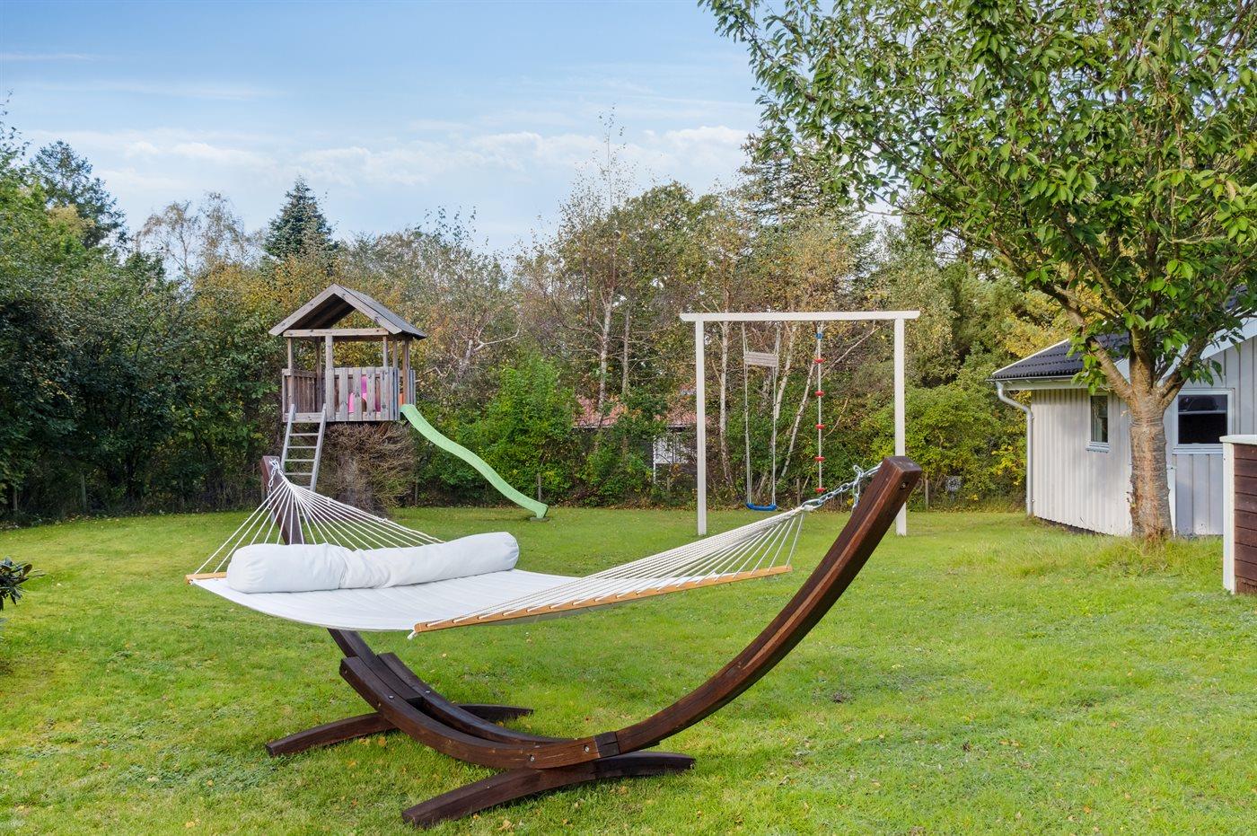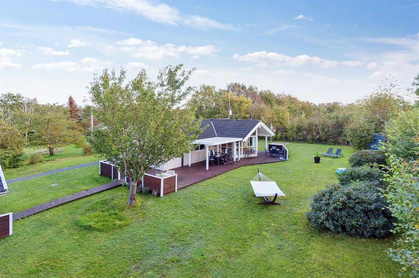 Ferieboligen er beliggende på en 1360 m² stor havegrund. Der er 1400 m til havet. Nærmeste forretning er beliggende i en afstand af 1340 m. Til ferieboligen hører åbent og 22 m2 overdækket terrasseareal. Gynge. Sandkasse. Legetårn. Rutchebane. Basketballkurv. Grill til rådighed. Udendørs vask. Parkering ved ferieboligen.