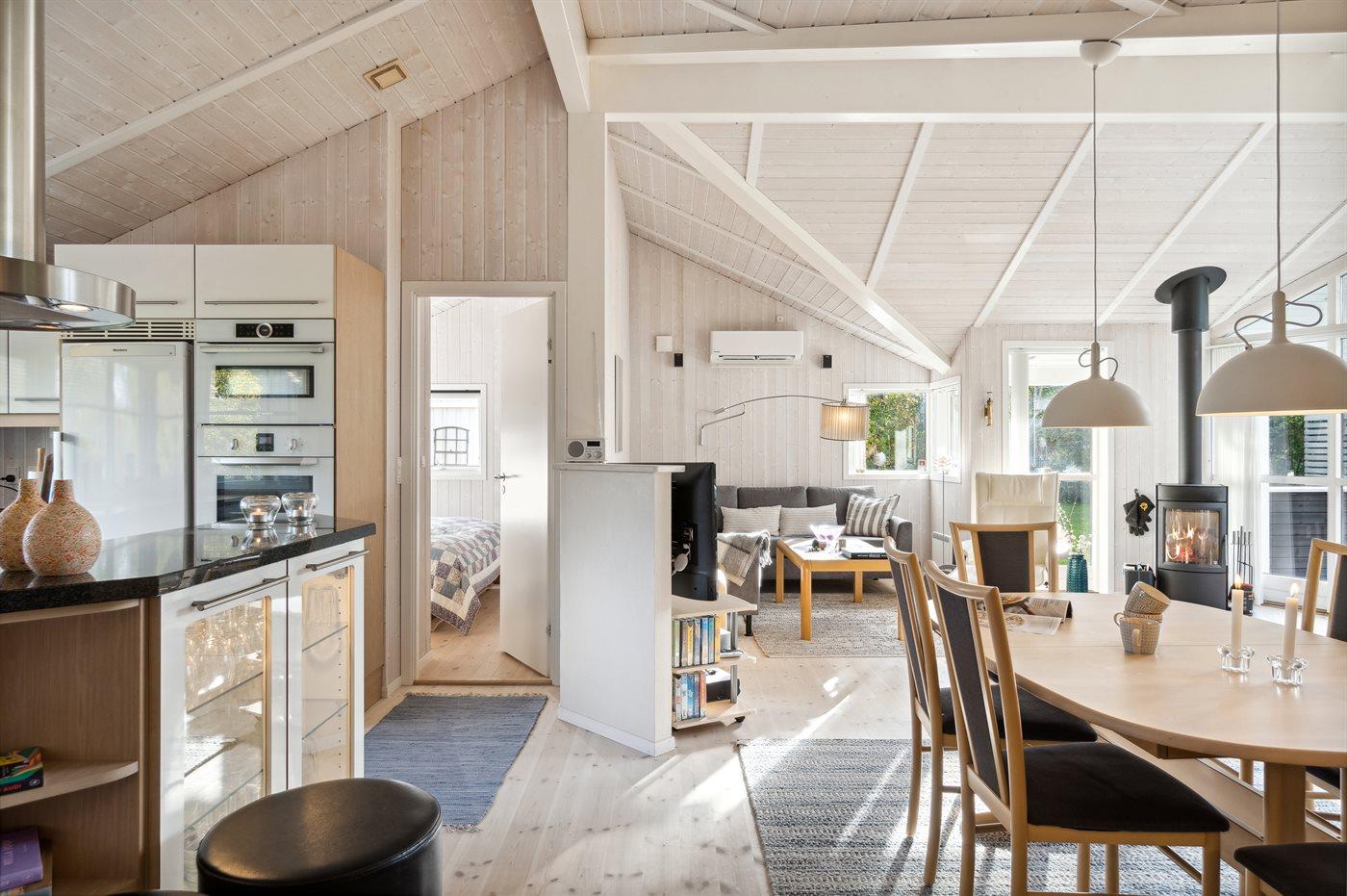 Køkkenet er udstyret med 1 køleskab. Der er 4 keramiske kogeplader, varmluftovn, mikrobølgeovn samt opvaskemaskine.