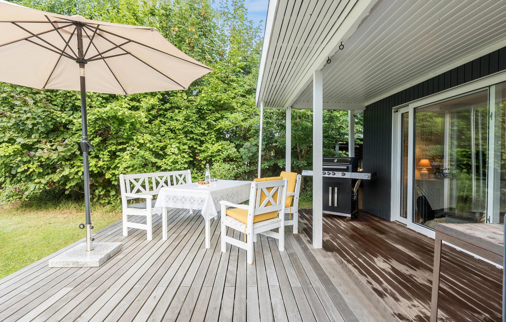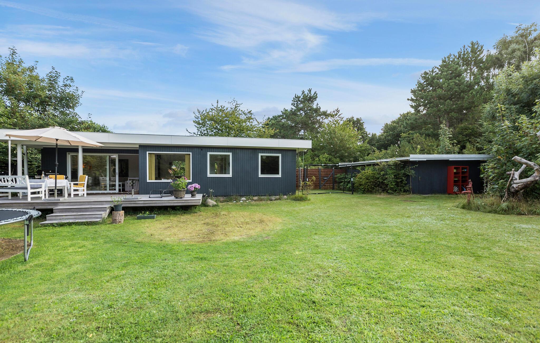 I kan også slappe af på terrassen med en god bog eller se børnene hoppe på trampolinen. Om aftenen bliver pejsen i haven et samlingspunkt for socialt samvær, hvor snobrød og skumfiduser er et must. Fra maj til slutningen af august kan I desuden se frem til en forfriskende dukkert i den fritstående pool.