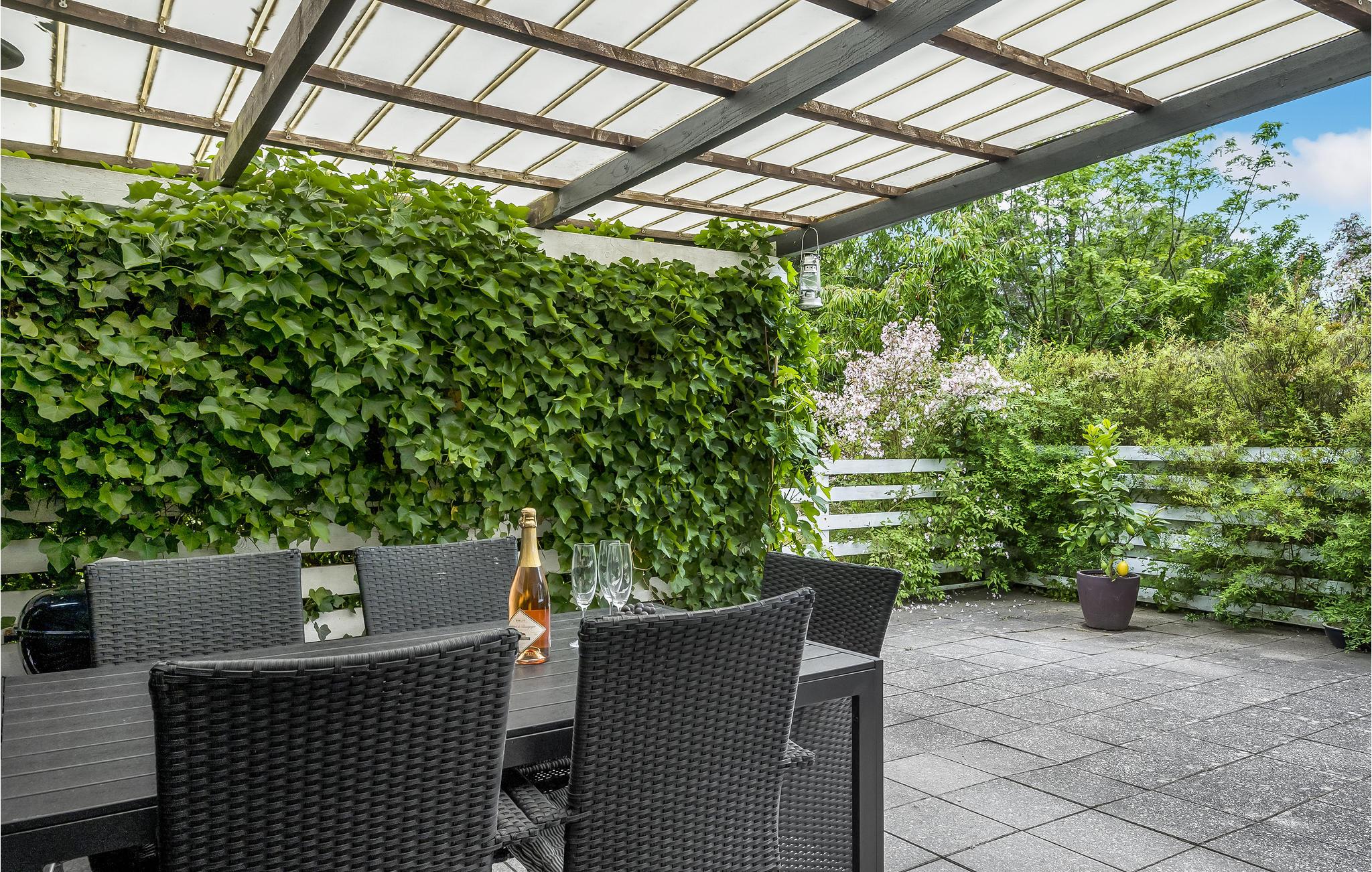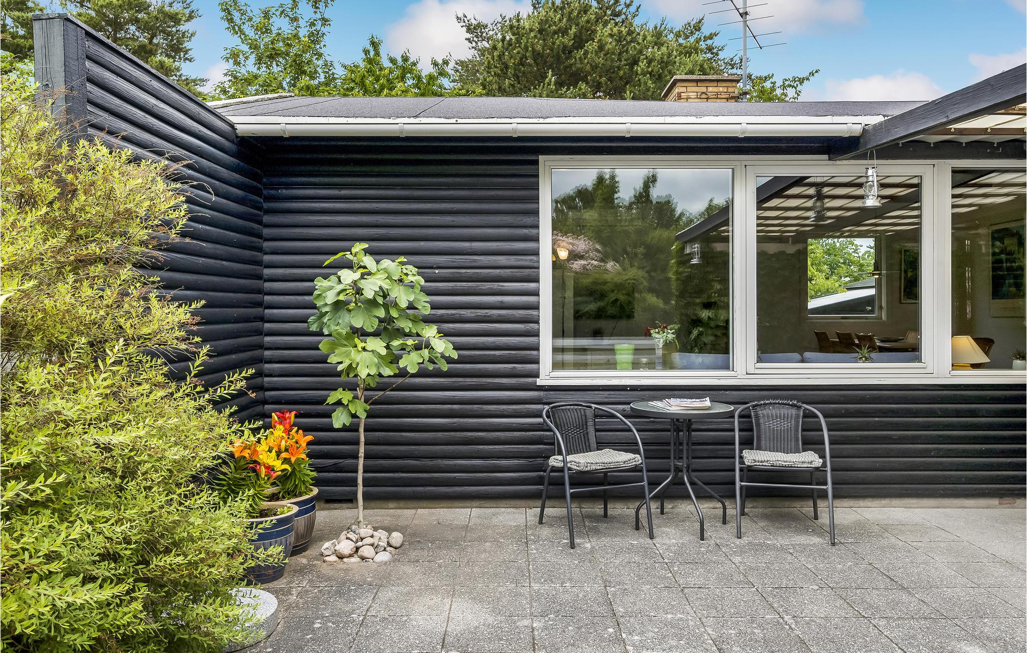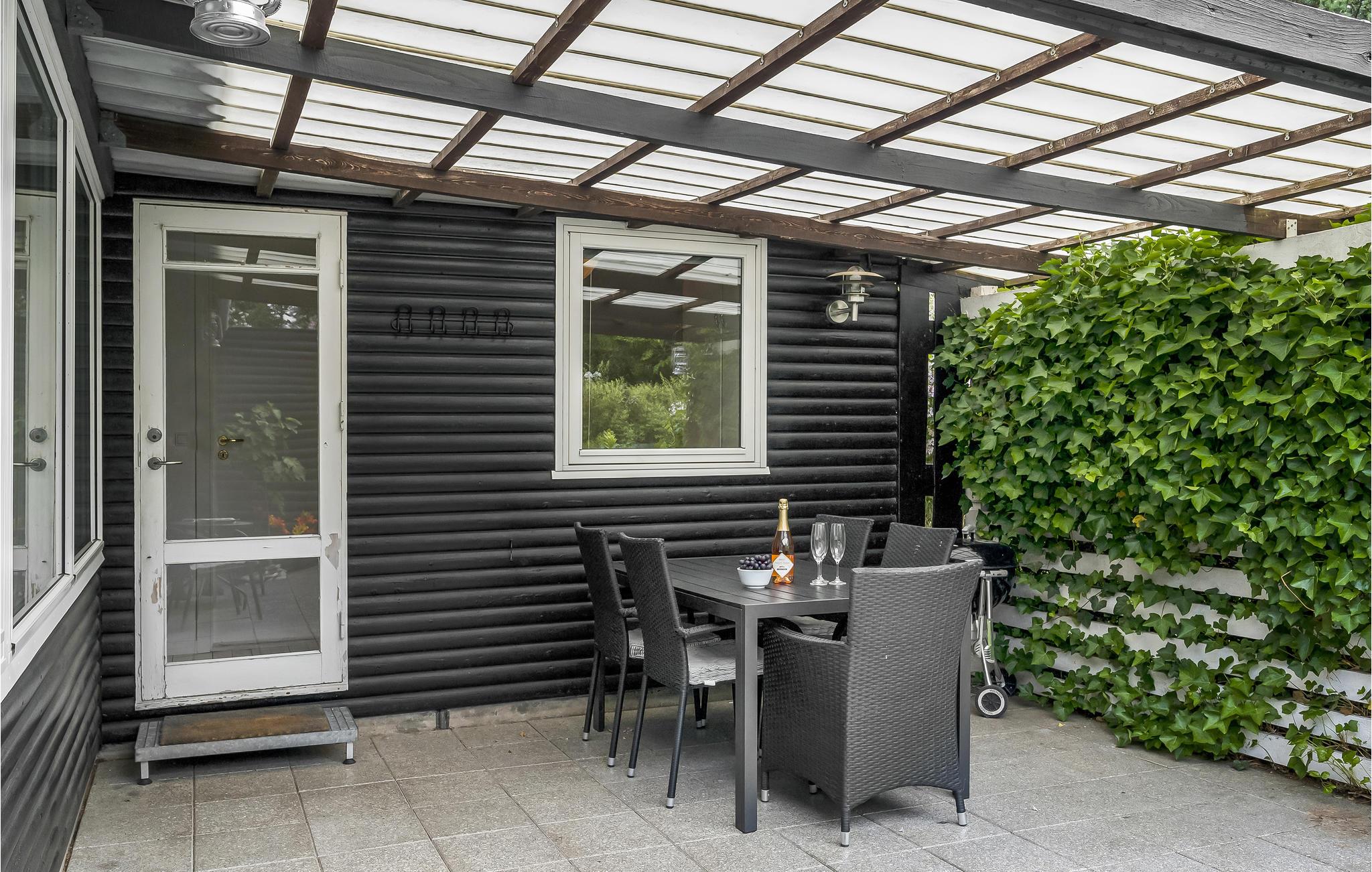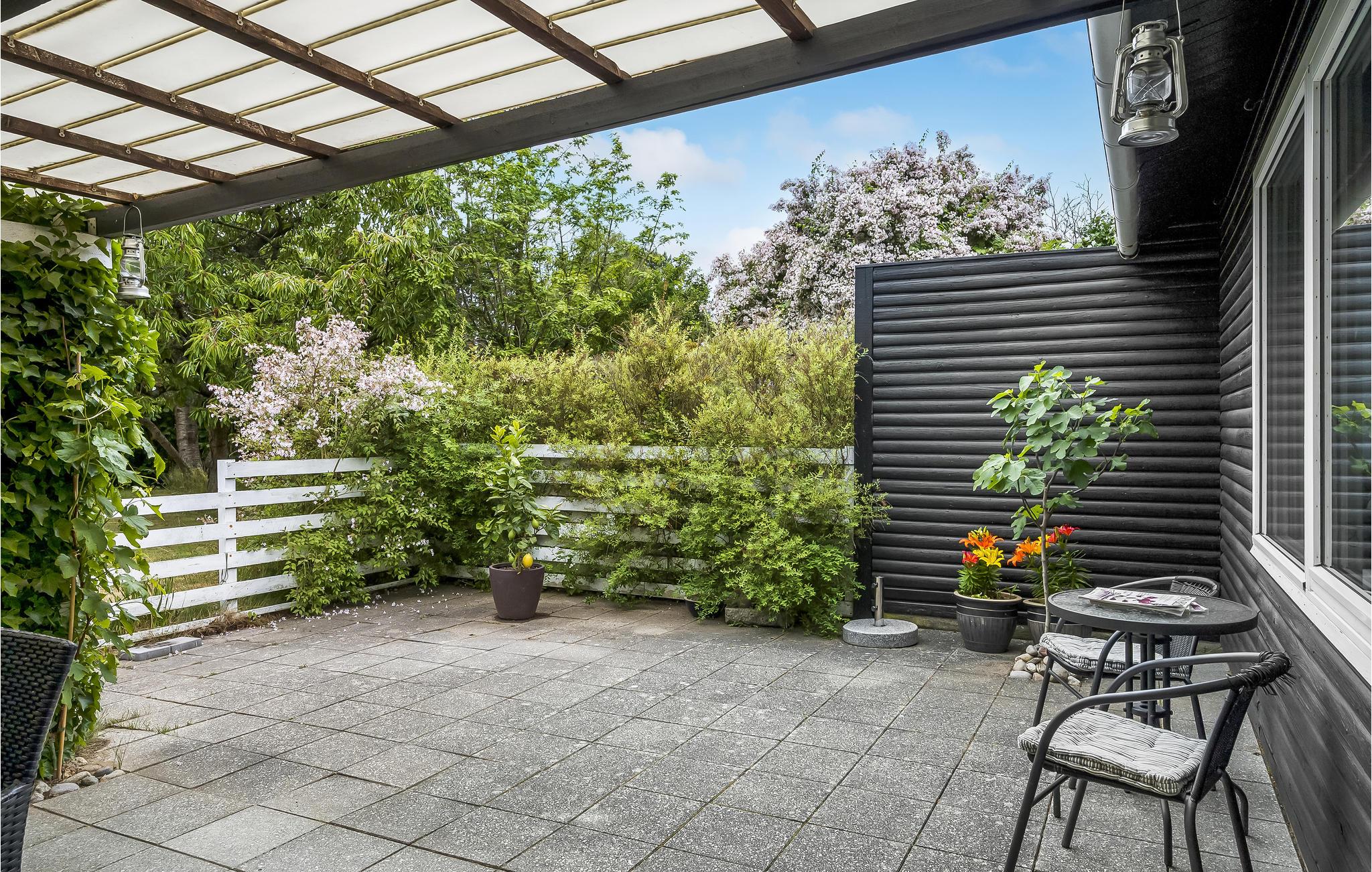 Charmerende feriehus ved Vejby Strand med have og delvist overdækket terrasse, tæt på natur og lokale seværdigheder.