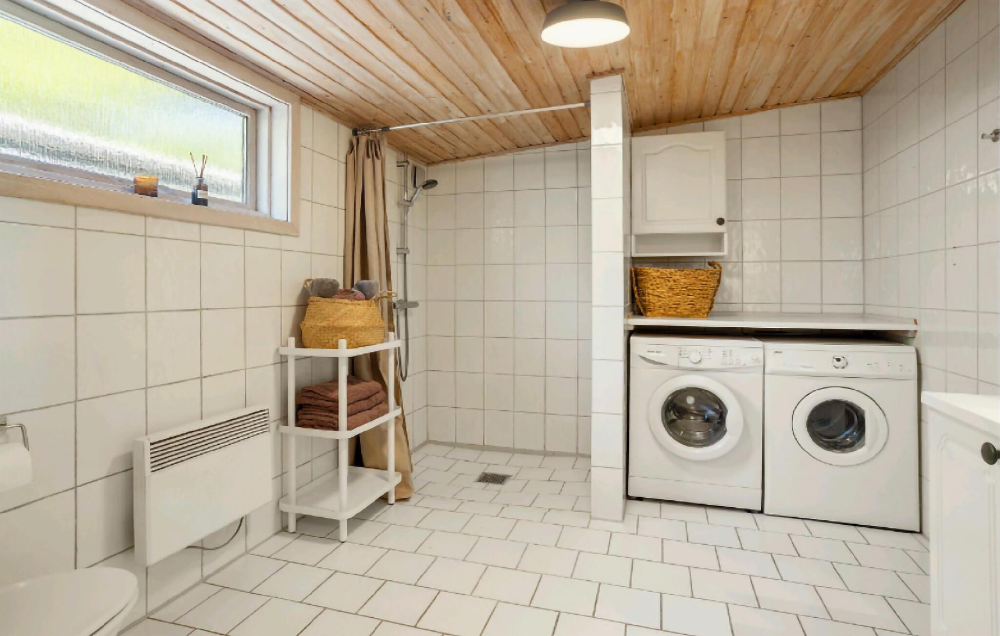 Huset er dejligt lyst at træde ind i. Læn jer godt tilbage i den rummelige opholdsstue og nyd den hyggelige varme fra brændeovnen. Tilbered jeres måltider i det moderne køkken med kogeø og nyd dem ved det store spisebord. De store vinduer lukker masser af lys ind i rummene og skaber en behagelig, åben atmosfære.