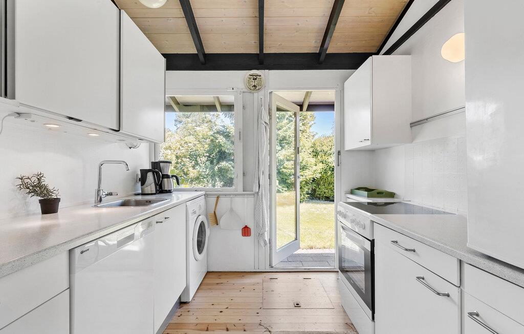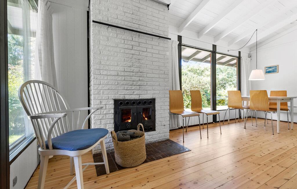 Velkommen til dette hyggelige sommerhus med en varm, indbydende indretning. Begynd dagene med morgenmad i det hyggelige køkken og nyd morgenens fredelige stilhed. I stuen er der plads til, at I kan slænge jer i sofaen foran brændeovnen. Om spisebordet kan I hygge jer med sjove bræt- og kortspil eller nyde en god bog ude i haven. Terrassen er delvist overdækket, så I kan sidde udenfor til sent ud på aftenen.