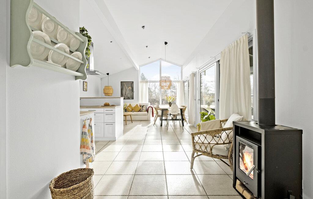 Tag familien under armen og lad turen gå til Vejby Strand, hvor der venter jer denne perle af en feriebolig. Huet er flot indrettet med gulv-til-loft-vinduer, højt til loftet og fin kunst på væggene, der alt sammen er med til at skabe en rar og hjemlig stemning. Gør madlavningen til et fornøjeligt fælles projekt i det veludstyrede køkken og spis sammen ved spisebordet eller tag måltiderne med ud i det fri.