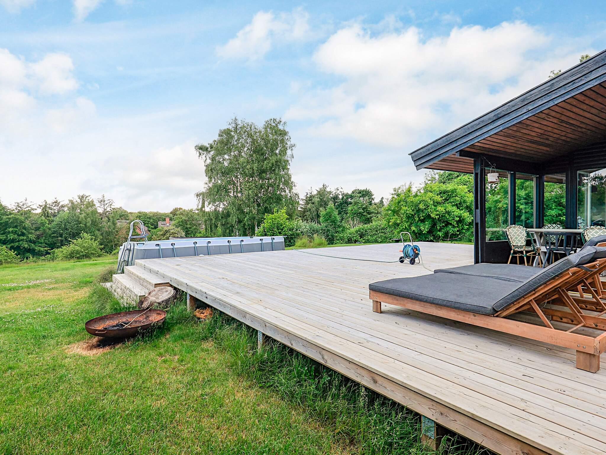 Dette sommerhus ved Vejby er helt unikt og skiller sig ud fra resten. Med en imponerende 4500 m2 grund er der god plads til leg og aktiviteter. Børn kan hoppe på trampolinen eller tage en dukkert i den store, overjordiske pool på 5x2,5 meter (kan kun bruges af 3 voksne ad gangen). Den rummelige 120 m2 træterrasse er perfekt til solbadning på de to dobbelte liggestole.