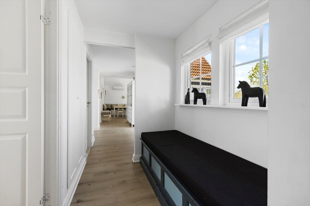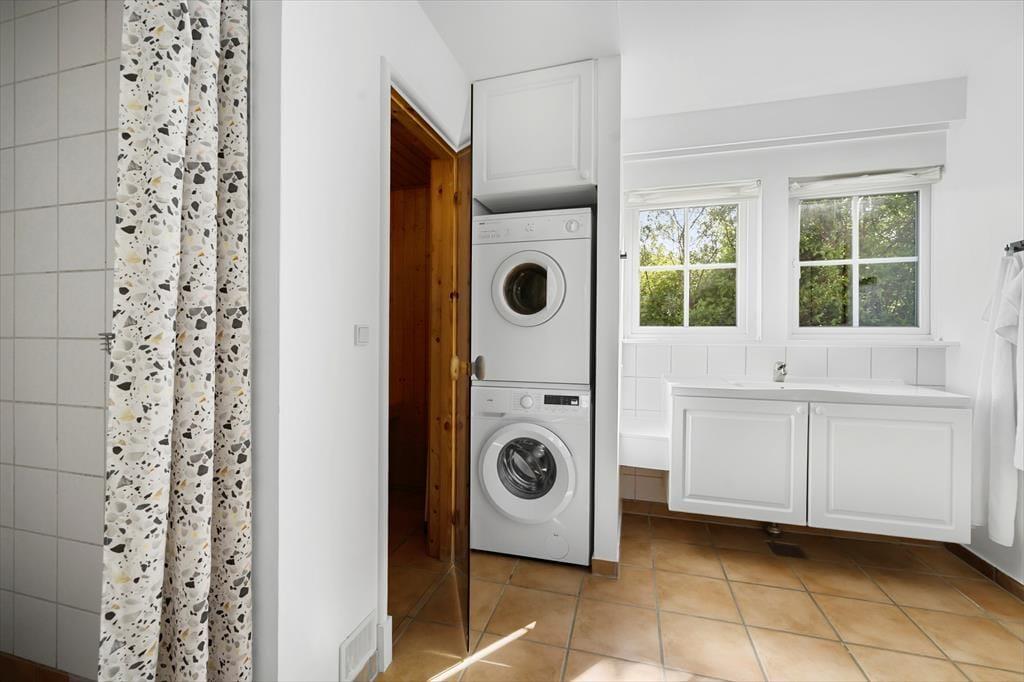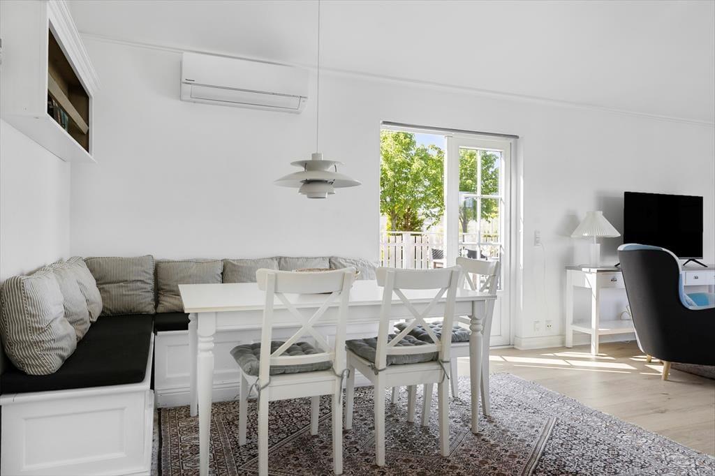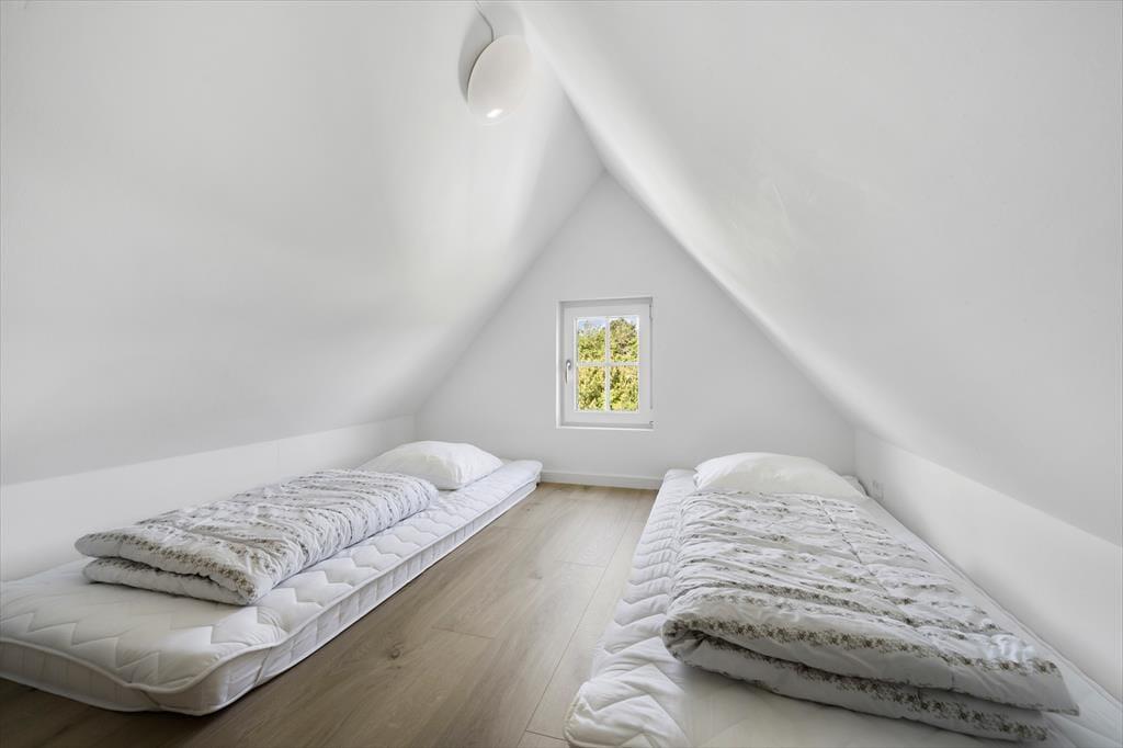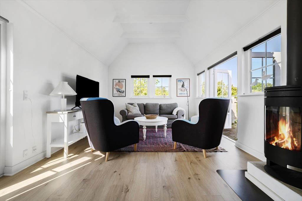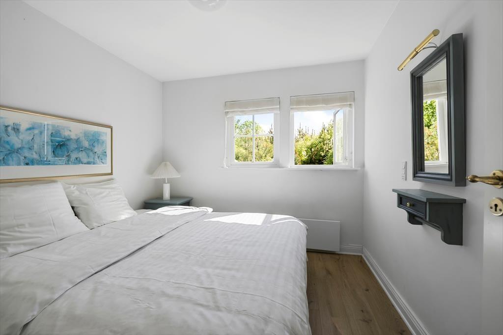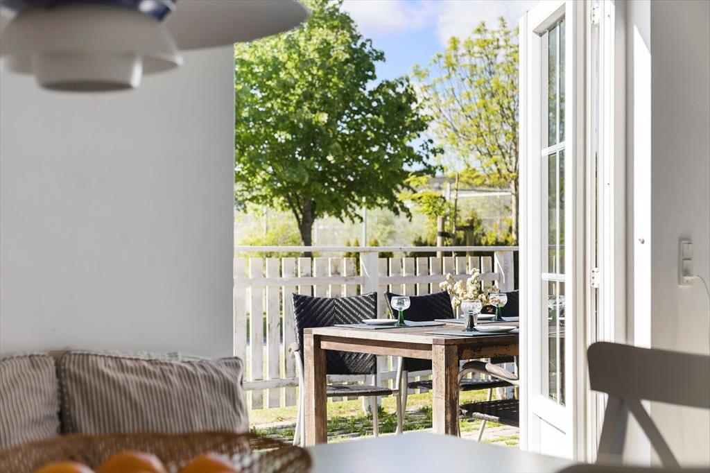 Udenfor er huset omgivet af en stor fliseterrasse, der giver rig mulighed for at nyde udelivet. Her kan I tænde op i grillen og nyde et dejligt måltid under åben himmel eller blot slappe af med en kop kaffe og solen i ansigtet. For de aktive i familien er der legepladser, petanquebane, boldbane og tennisbaner i området, og der er rig mulighed for at cykle eller gå til den nærliggende strandtrappe ved Kaprifolievej. Her venter roligt vand og en børnevenlig strand, der indbyder til afslapning og leg – perfekt til en dag ved vandet med sandslotte og bølgesprøjt.