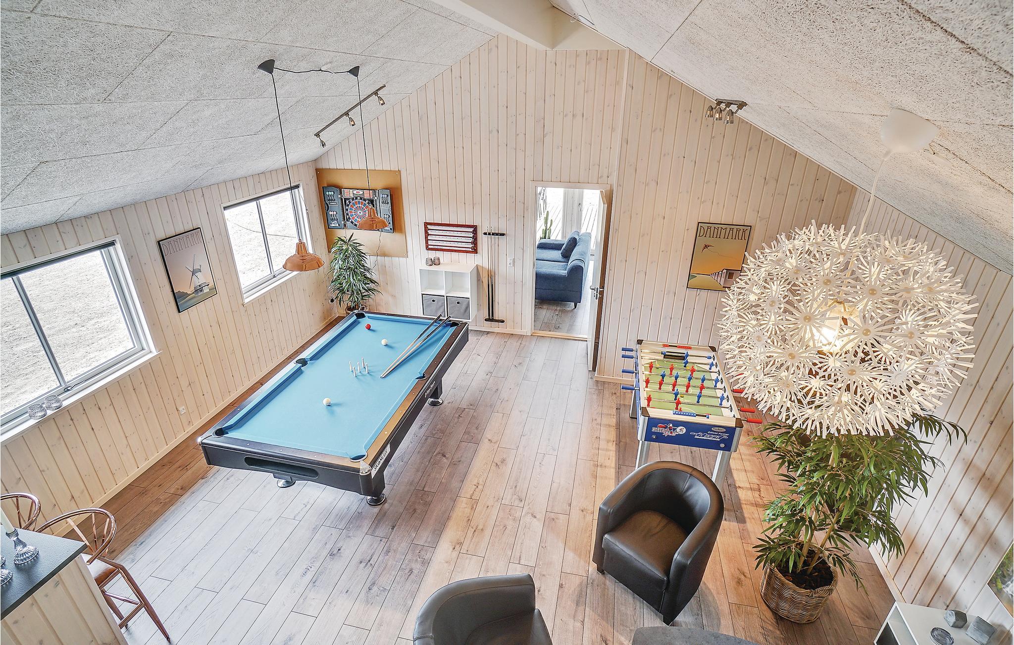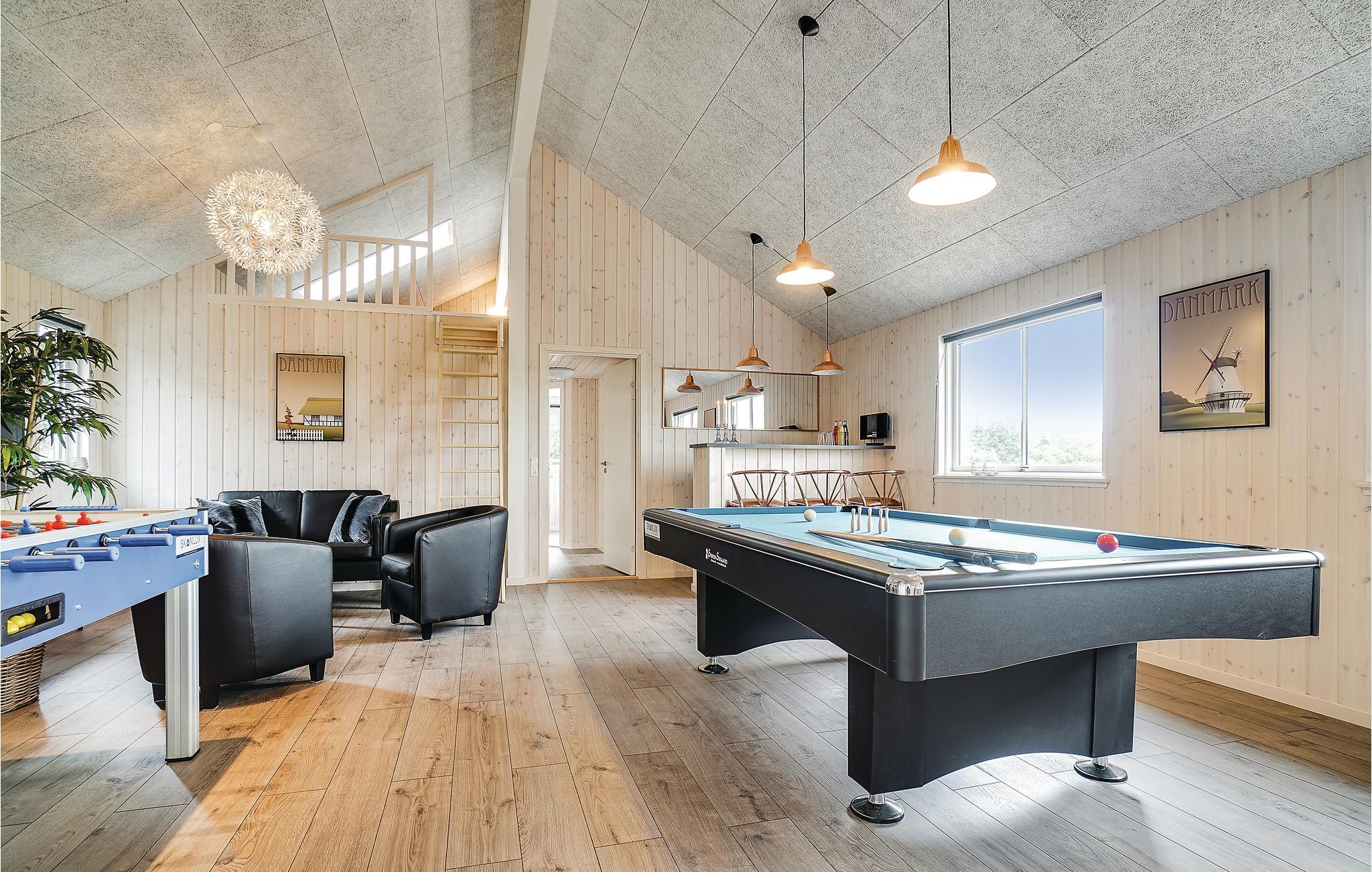 Et moderne og lækkert sommerhus, smagfuldt indrettet og udstyret med alle former for komfort. Det flotte køkken ligger i åben forbindelse med opholdsstuen, det vil helt sikkert blive stedet hvor I samles, og hygger jer sammen. En anden stor attraktion i huset er den skønne swimmingpool med vandrutsjebane, hvor I kan boltre jer i det forfriskende vand med efterfølgende afslappende massage i spabadet eller en tur i saunaen - det er ren wellness. Aktivitetsrummet byder på både billard, bordfodbold og mange andre aktiviteter. Når roen sænker sig om aftenen, kan I afslutte en dejlig dag med en drink i baren. I huset findes seks gode soveværelser samt en hems, der er specielt velegnet til børnene, som her kan have deres egen hyggeafdeling. Tre flotte badeværelser fuldender oplevelsen. Huset ligger perfekt til udflugter i området, fx til Heather Hill med de høje skrænter eller troldeskoven i Tisvildeleje, hvor der også er gode restauranter, caféer og små hyggelige butikker. Tisvildeleje er en gammel badeby med bred sandstrand, som er en del af ’Den Danske Riviera’ med masser af feriestemning. Der afholdes arrangementer hele sommeren: Kildemarked, Tisvildeleje går i fisk, musik i lejet og musikfestival. Depositum og rengøring afregnes ved ankomst til huset.