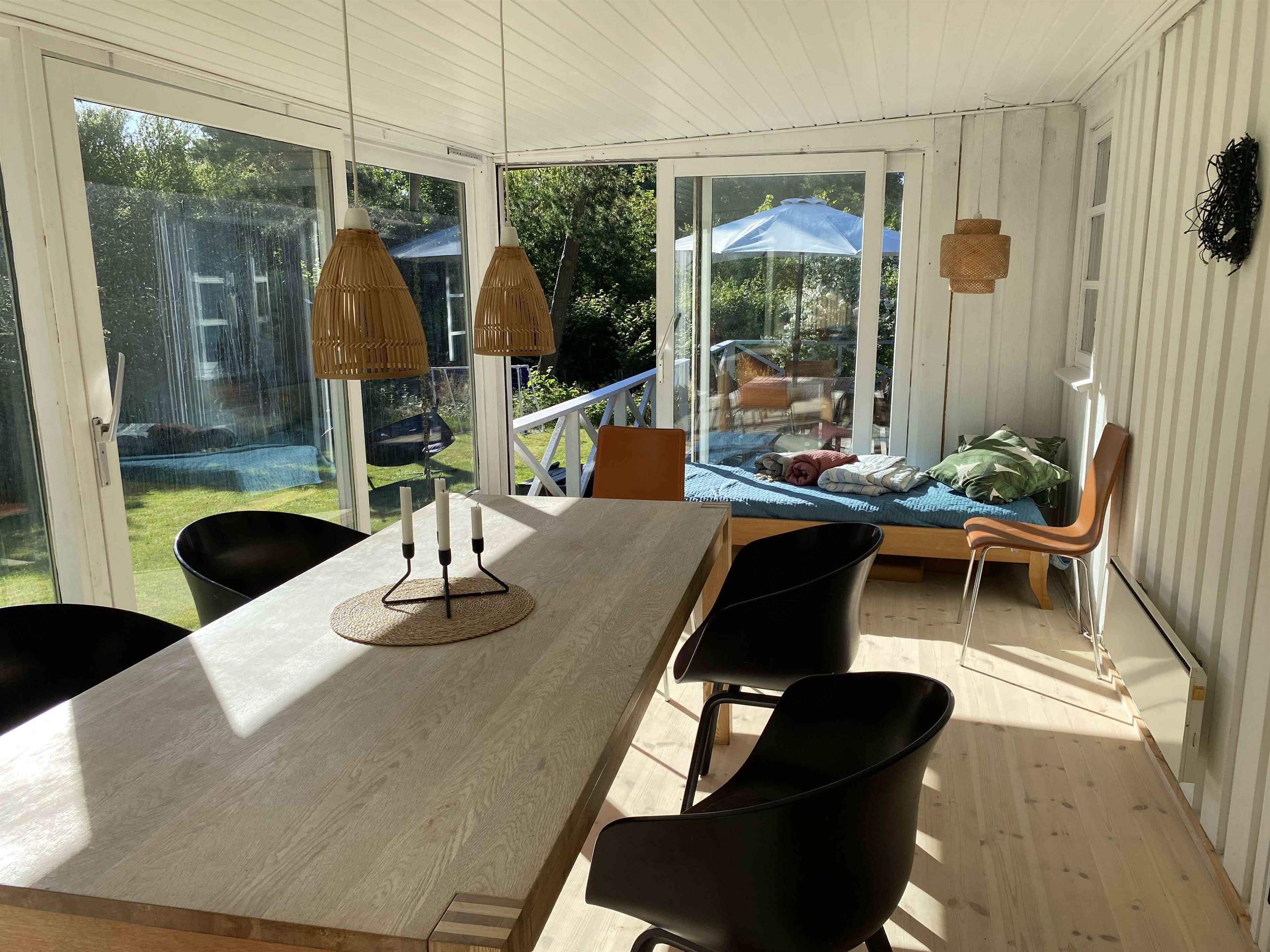 Dette dejlige og rummelige sommerhus på 112 m² giver plads til hele familien. Med fire soveværelser og otte sovepladser er det ideelt til både små og store ferieselskaber. Sommerhuset er hyggeligt indrettet og har alt, hvad du behøver til en dejlig, afslappende ferie med familie eller venner. Der er masser af legetøj både inde og ude, så huset er velegnet til børnefamilier. Den store terrasse har sol hele dagen og indbyder til afslappende timer under åben himmel. Havestuen skaber en lys og behagelig oase, perfekt til morgenkaffe eller aftensamvær. Indenfor sørger brændeovnen og varmepumpen for komfort året rundt. Gæstetoilettet giver ekstra bekvemmelighed, og internet gør det nemt at være forbundet, hvis det ønskes. Der er to soveværelser med dobbeltsenge, hvor den ene dobbeltseng kan skubbes fra hinanden til at blive to enkeltsenge. I de to andre værelser er der hver en køjeseng, den ene ca 170x75 cm stor og den anden er 200 x 90 cm stor. Derudover findes en sovesofa og en daybed i huset. Kun 600 meter til en dejlig strand betyder, at en frisk dukkert eller en lang gåtur ved kysten altid er tæt på. Områdets naturskønne omgivelser skaber en rolig og afslappende atmosfære. Skov og åbne vidder danner rammen om et rigt dyreliv, hvor rådyr, harer og fugle ofte kan opleves tæt på. Naturstier indbyder til både vandre- og cykelture i smukke omgivelser. Huset ligger tæt på naturreservatet Heather Hill. Nærmiljøet byder på små, hyggelige lokalsamfund, hvor gårdbutikker og lokale spisesteder frister med friske råvarer og god mad. Mulighed for at opleve både natur og lokale specialiteter. Huset er let tilgængeligt med offentlig transport. Den lokale Spar-købmand ligger kun en kort gåtur væk, og der er også gode indkøbsmuligheder i Vejby. Huset kigger tæt på Tisvildeleje, Rågeleje og Gilleleje. En ferie her handler om ro, nærvær og naturoplevelser. Kombinationen af komfort og beliggenhed gør dette sommerhus til en oplagt base for en uforglemmelig ferie. Obs, udlejes ikke til erhversmæssigt brug.