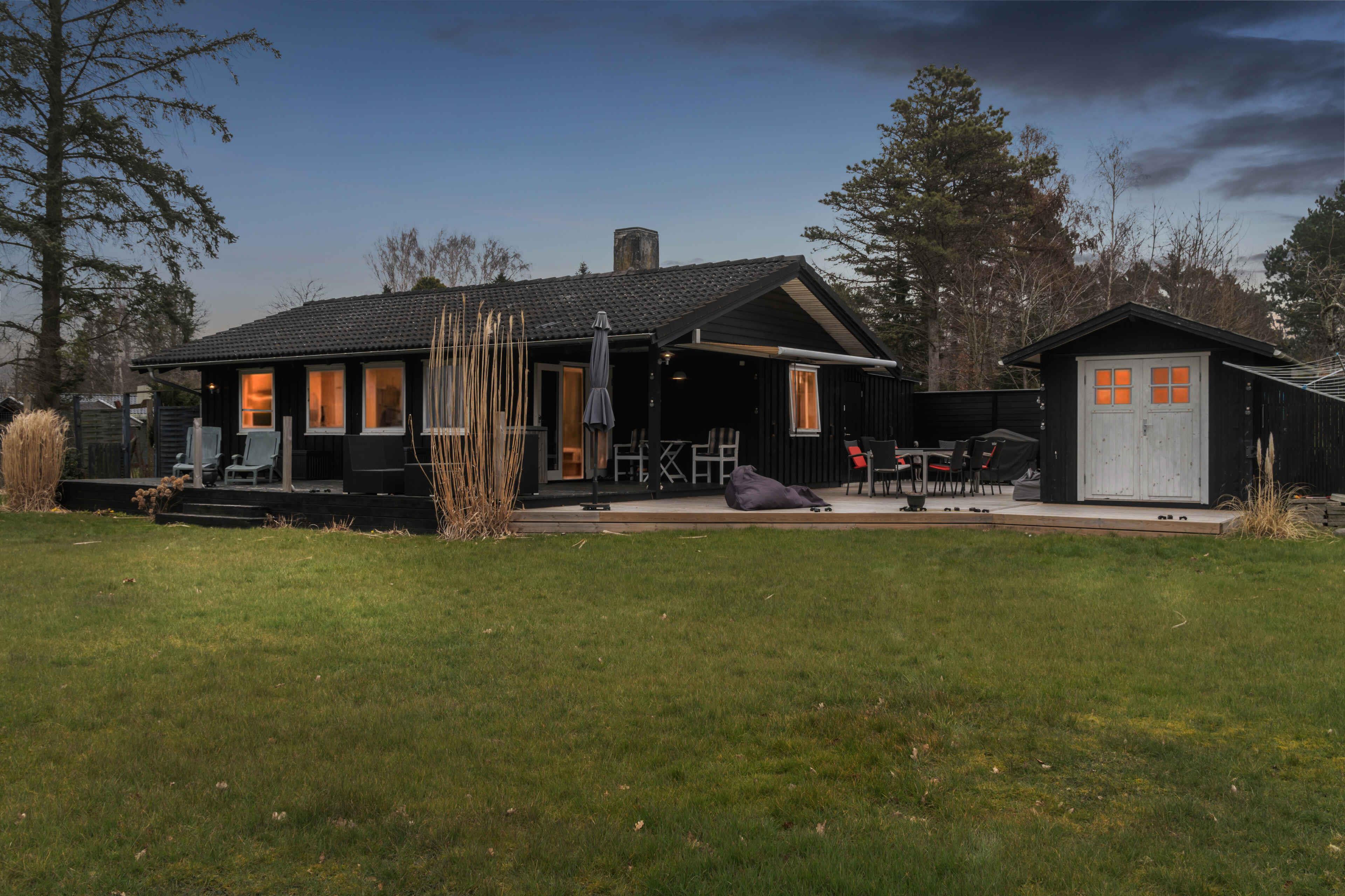 Sommerhus, rolige omgivelser, stort terrassemiljø