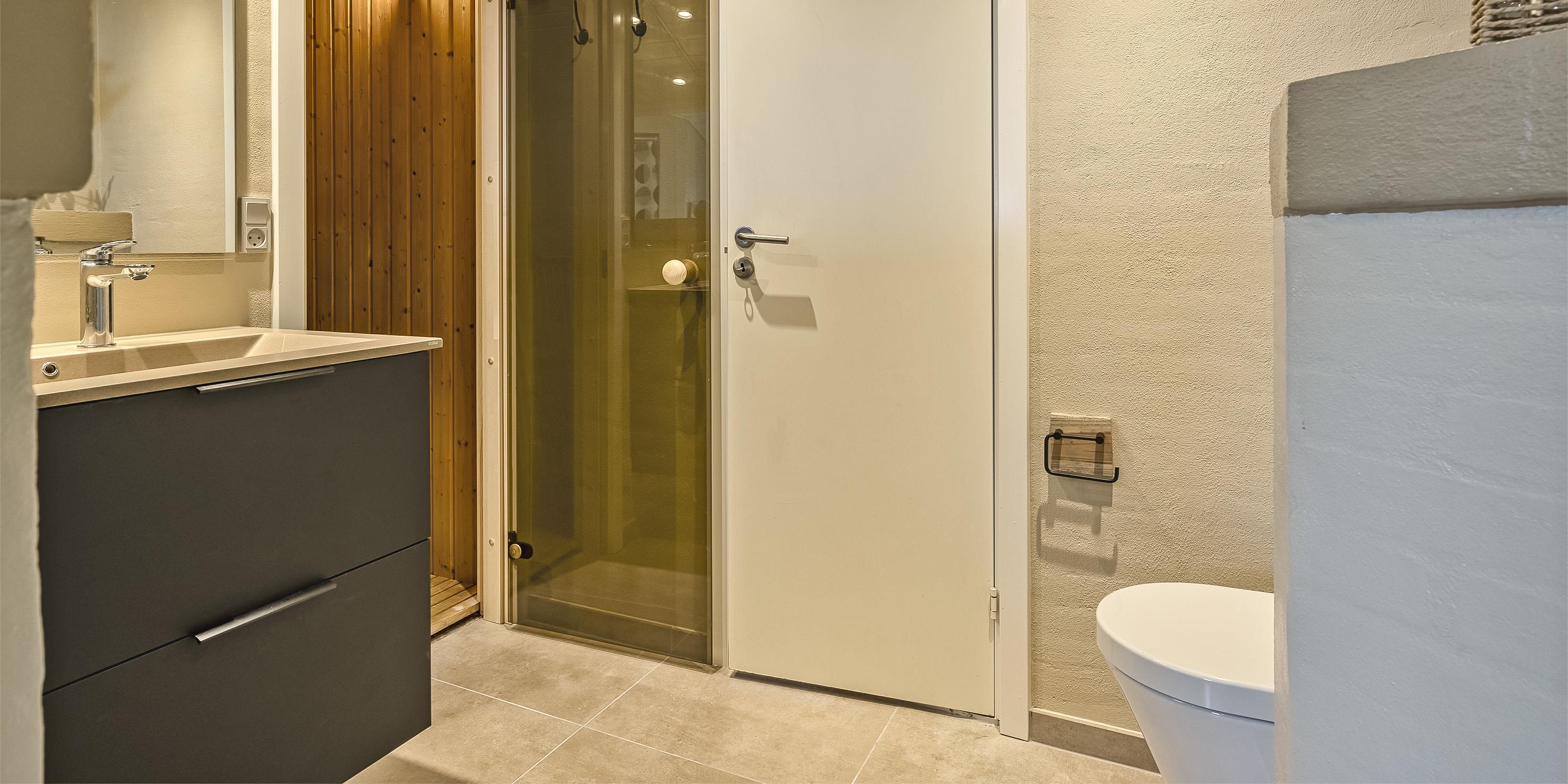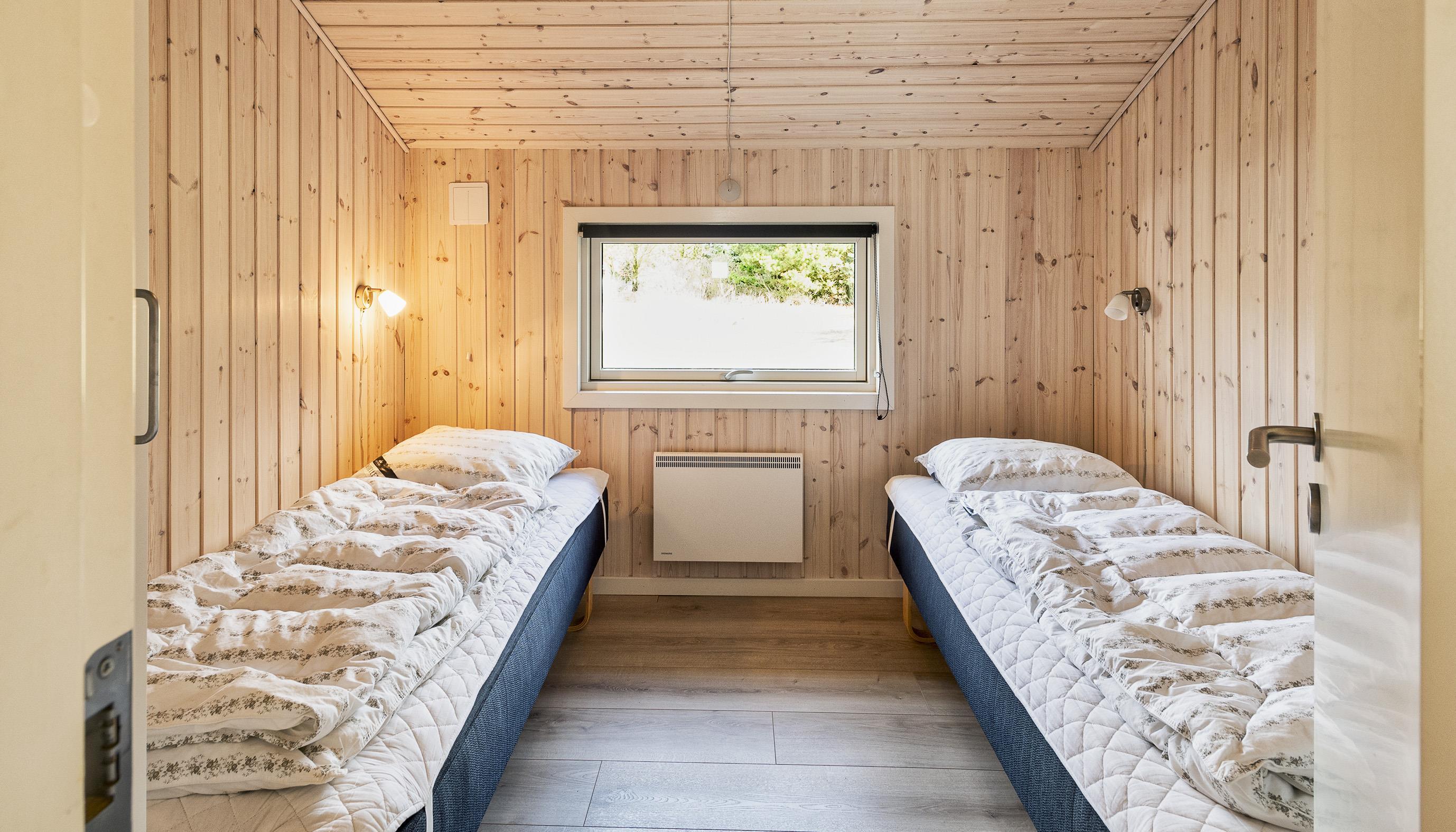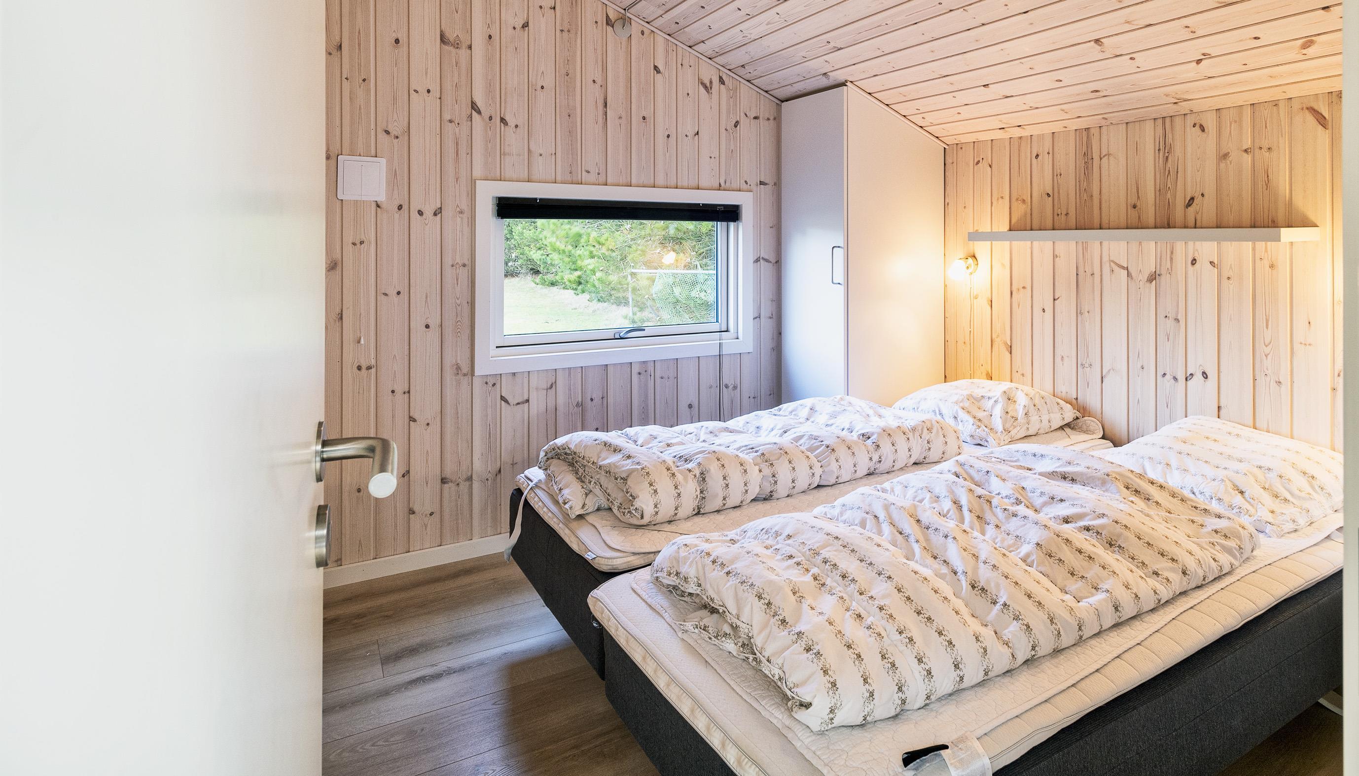 2 soveværelser med dobbeltseng 180x200 cm. 2 enkeltsenge (á 90x200 cm)