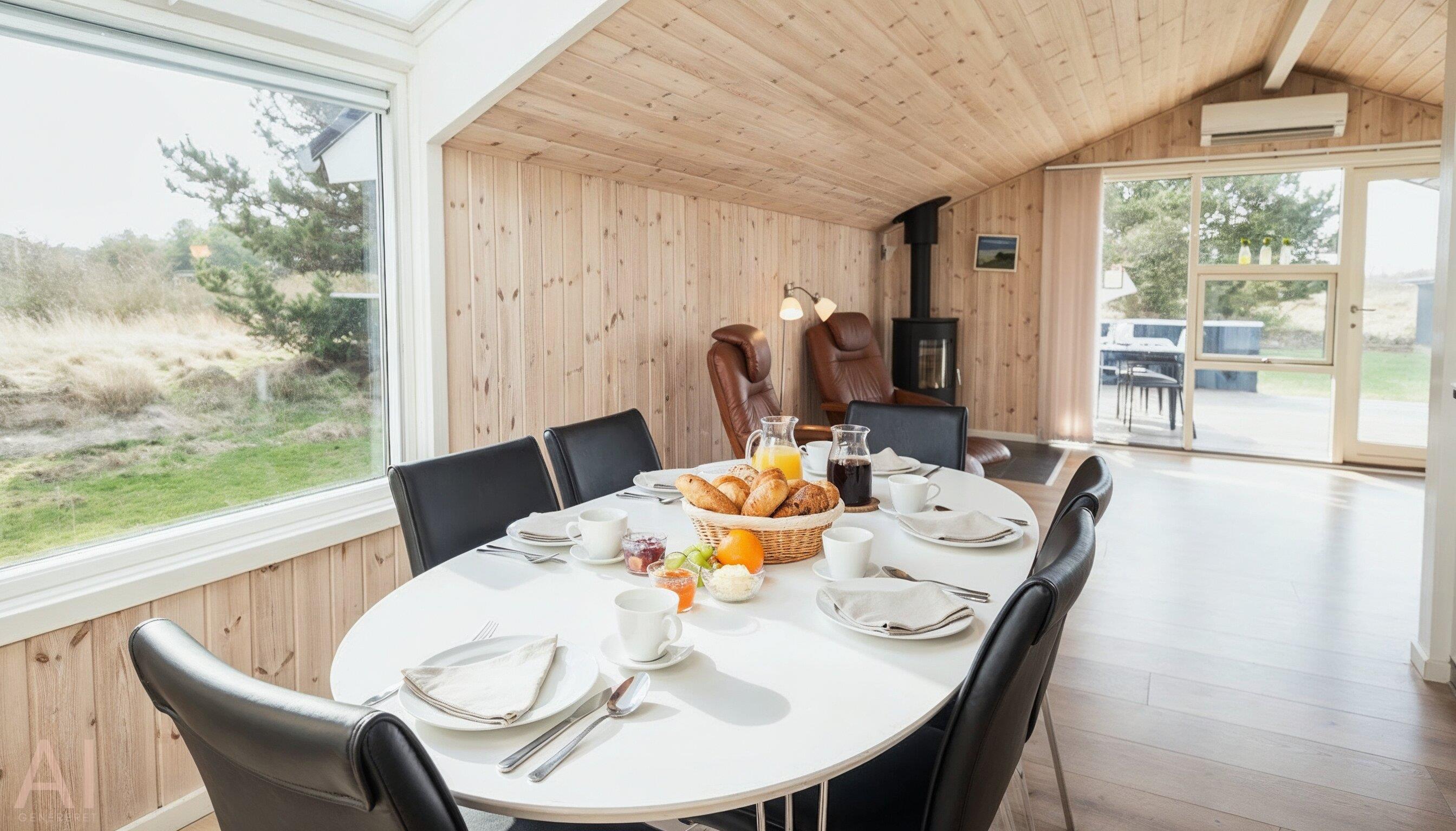 Smagfuldt sommerhus til 6 personer, beliggende på stor naturgrund, ca. 900 meter fra stranden. Stue med brændeovn, fjernsyn og parabol. Åbent køkken med køle-/fryseskab, opvaskemaskine og mikroovn. Trådløs internetadgang. Varmepumpe. Badeværelse med bruser/wc og standvandsspa. Sauna, vaskemaskine og tørretumbler. 3 soveværelser: DS + DS + 2S. Stor lukket terrasse med sandkasse. Gynge og carport. I spabad er en udlufter som kører hele tiden og kan ikke slukkes. Ekstra udgift for vandforbrug. Katte er ikke tilladt. Ladestik til elbil 230 volt. Byggeår 1982, renoveret 2017. Badeværelse renoveret 2024.