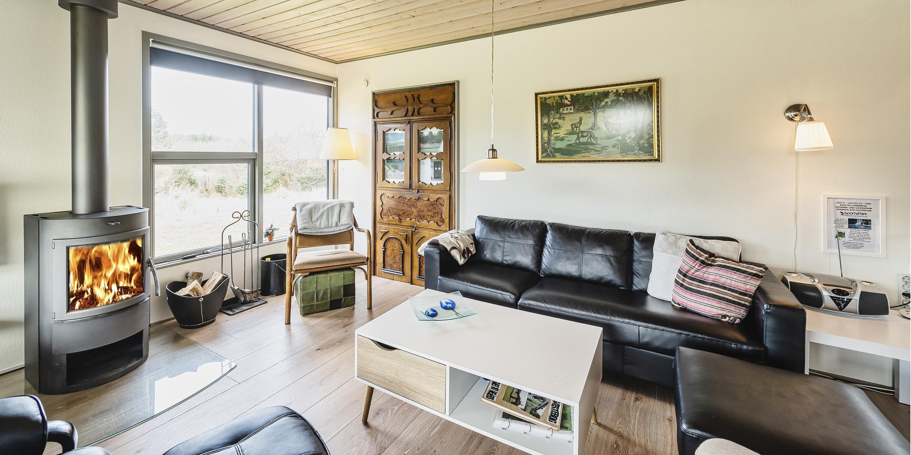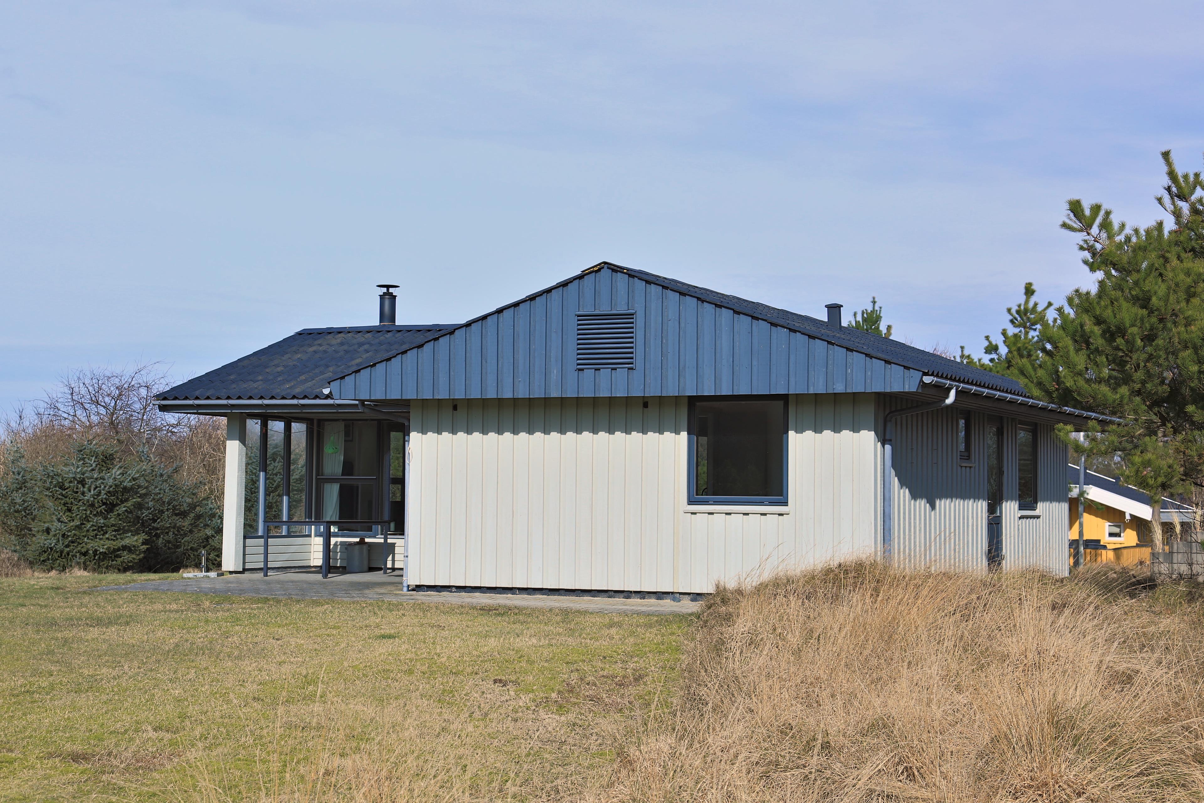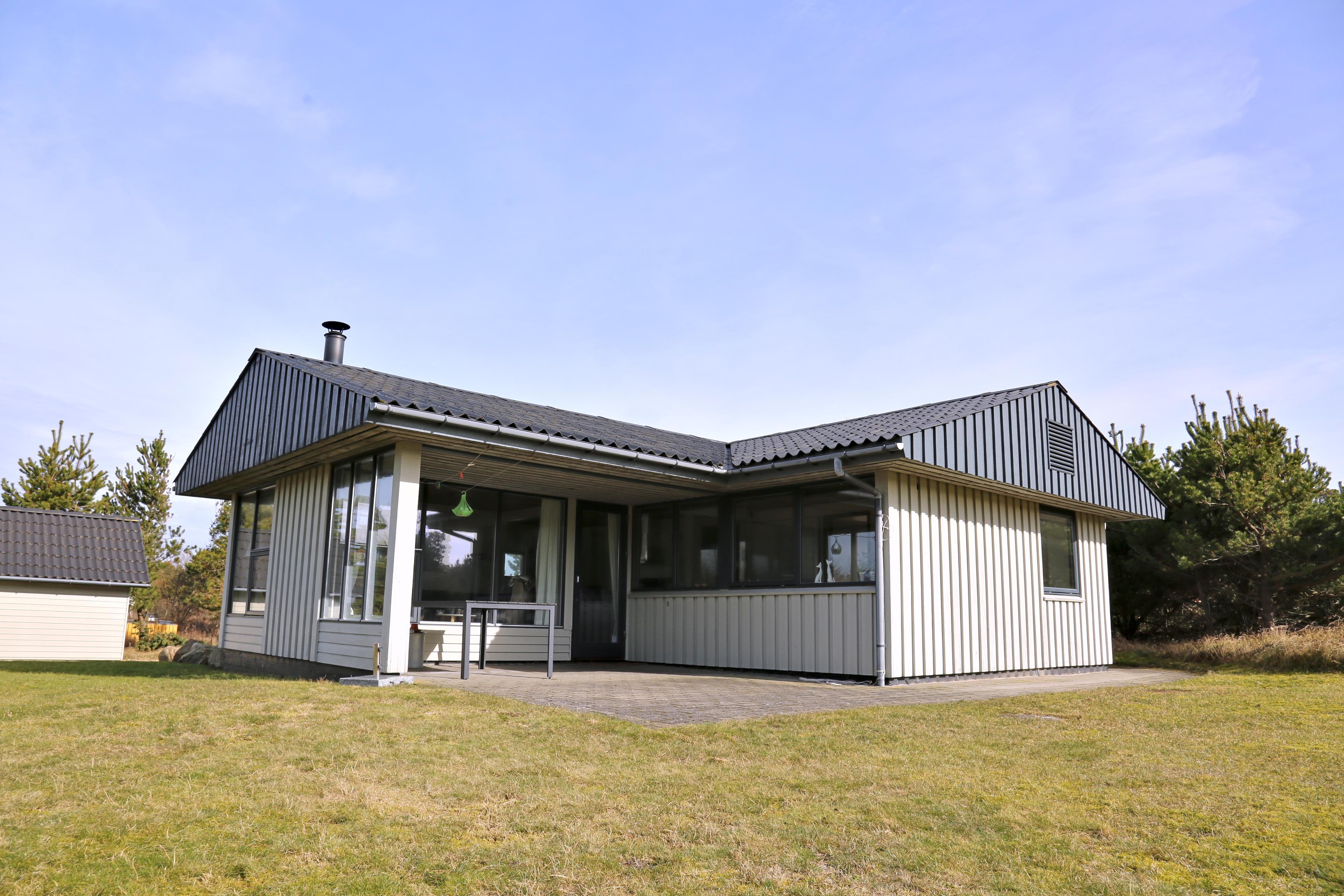 Charmerende sommerhus til 4-6 Vejers fan beliggende på en dejlig ugeneret naturgrund, ca. 900 meter fra stranden. Huset indeholder: Lille entre med indgang til stort opholdsrum. Det åbne opholdsrum er opdelt i spisestue og opholdstue med køkkenet imellem. Opholdsstuen er hyggeligt indrettet med udsigt til brændeovn, radio, fjernsyn med Stofa-Tv pakke, DVD-afspiller og trådløs internet. Spisestuen er indrettet med spiseplads, sovesofa og varmepumpe, fra spisepladsen er der udkig til den overdækkede terrasse som haven. Åbent køkken med køle-/frysekombination, mikroovn og opvaskemaskine. Fra spisestuen er der indgang til 1 soveværelse med 1 dobbeltseng. Fra entreen er der adgang til nyrenoveret (2021) badeværelse med vaskearrangement, bruser, wc og gulvvarme. 1 rummeligt soveværelse med dobbeltseng, klædeskabe og en saftyboks. 2 soveværelser: DS + DS. Anneks til f.eks. cykler. Rundt om huset er der flisebelagt, mod vest forefindes en stor delvis overdækket terrasse. Den store græsudlagte have indbyder til bold og leg. Ungdomsgrupper er ikke tilladt. Der er tilladt med max. 1 hund - katte er ikke tilladt. Rygning er ikke tilladt. Byggeår 1973, renoveret løbende.