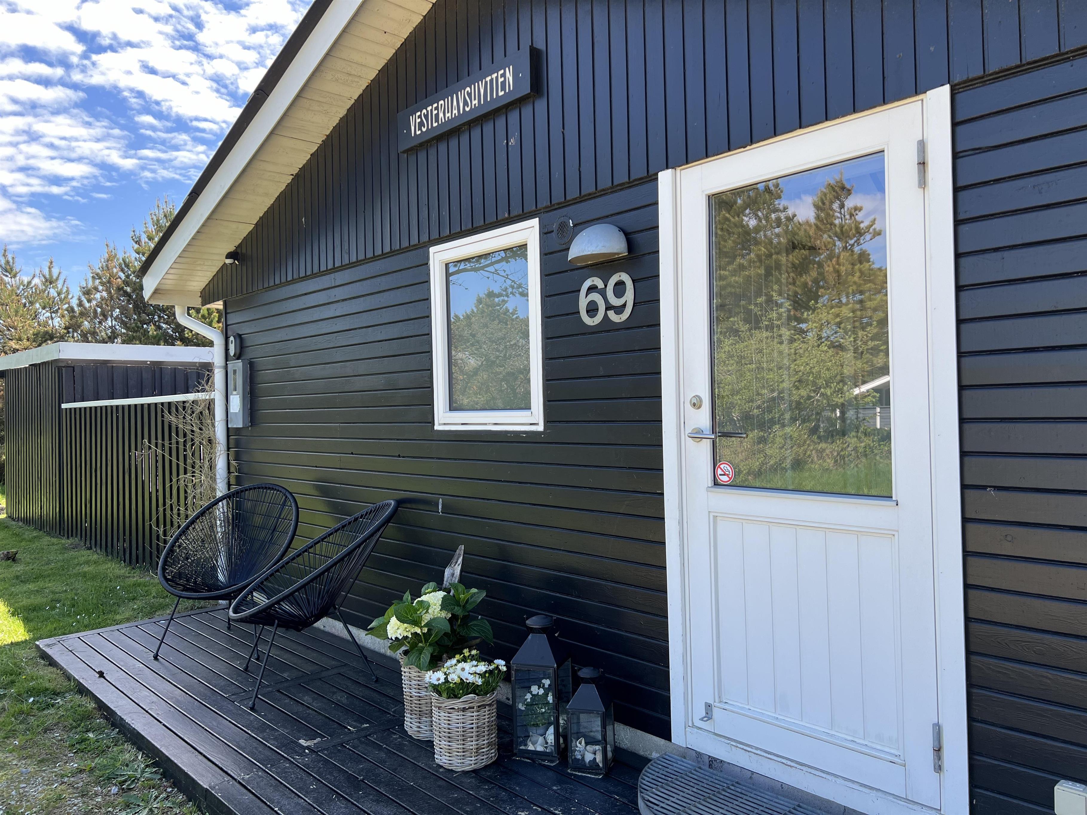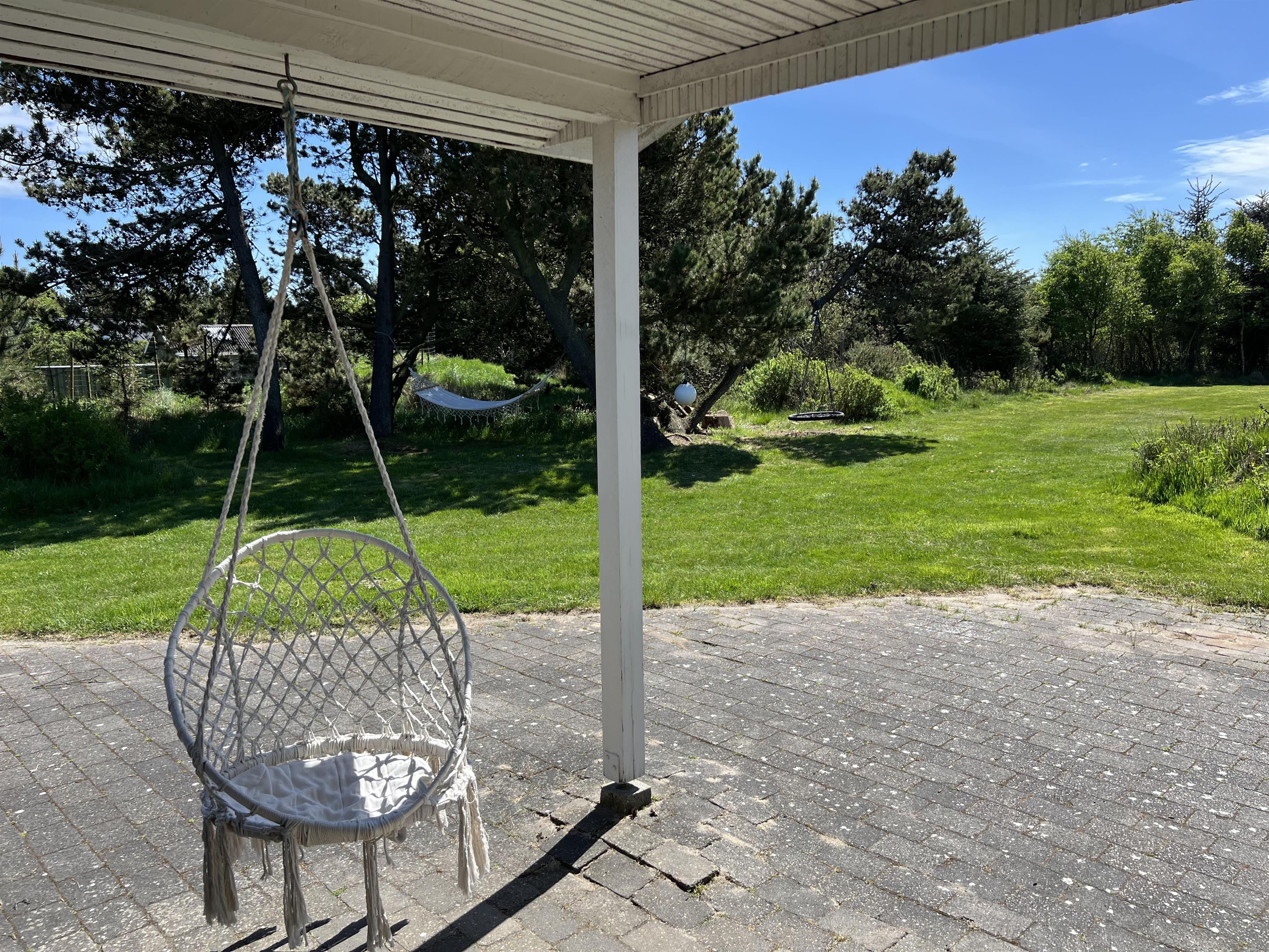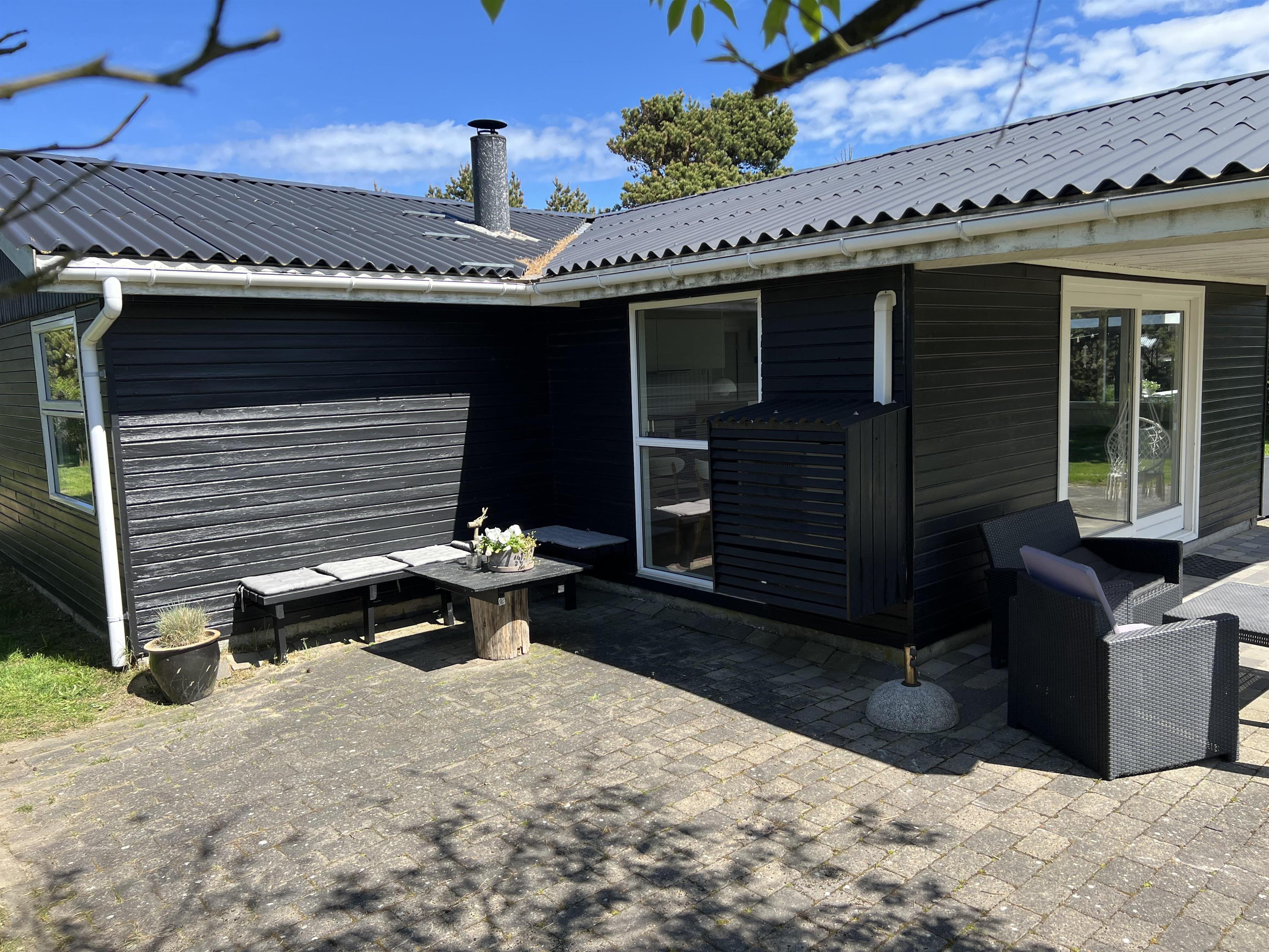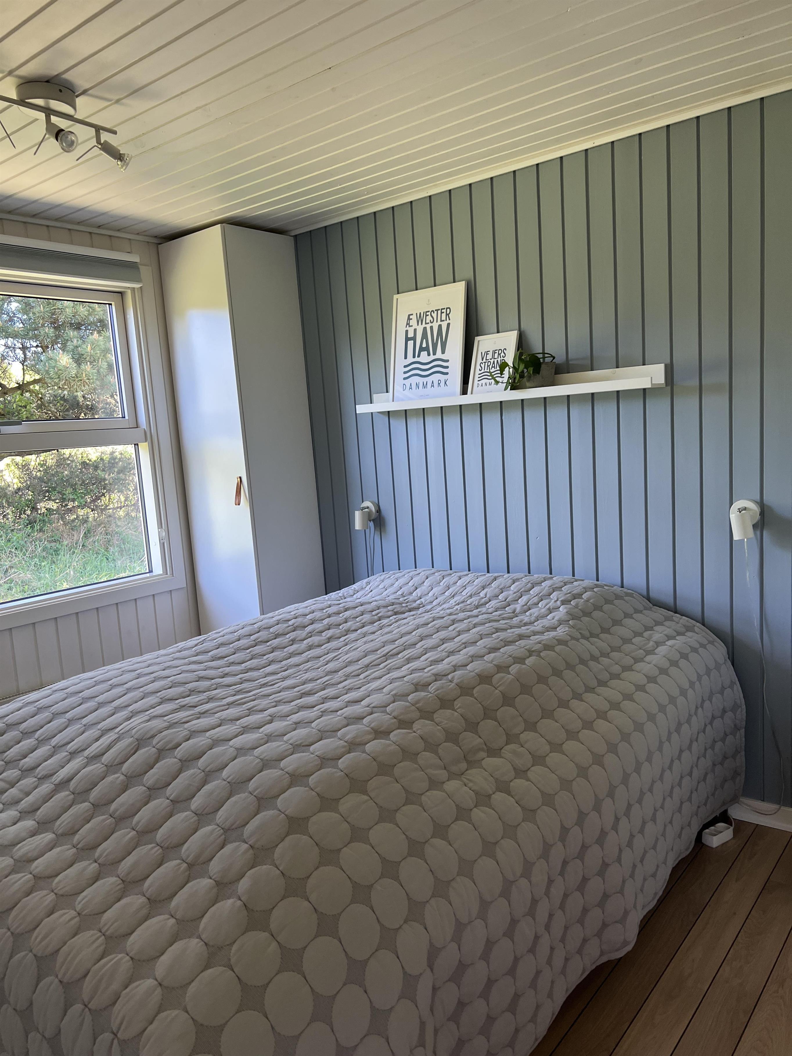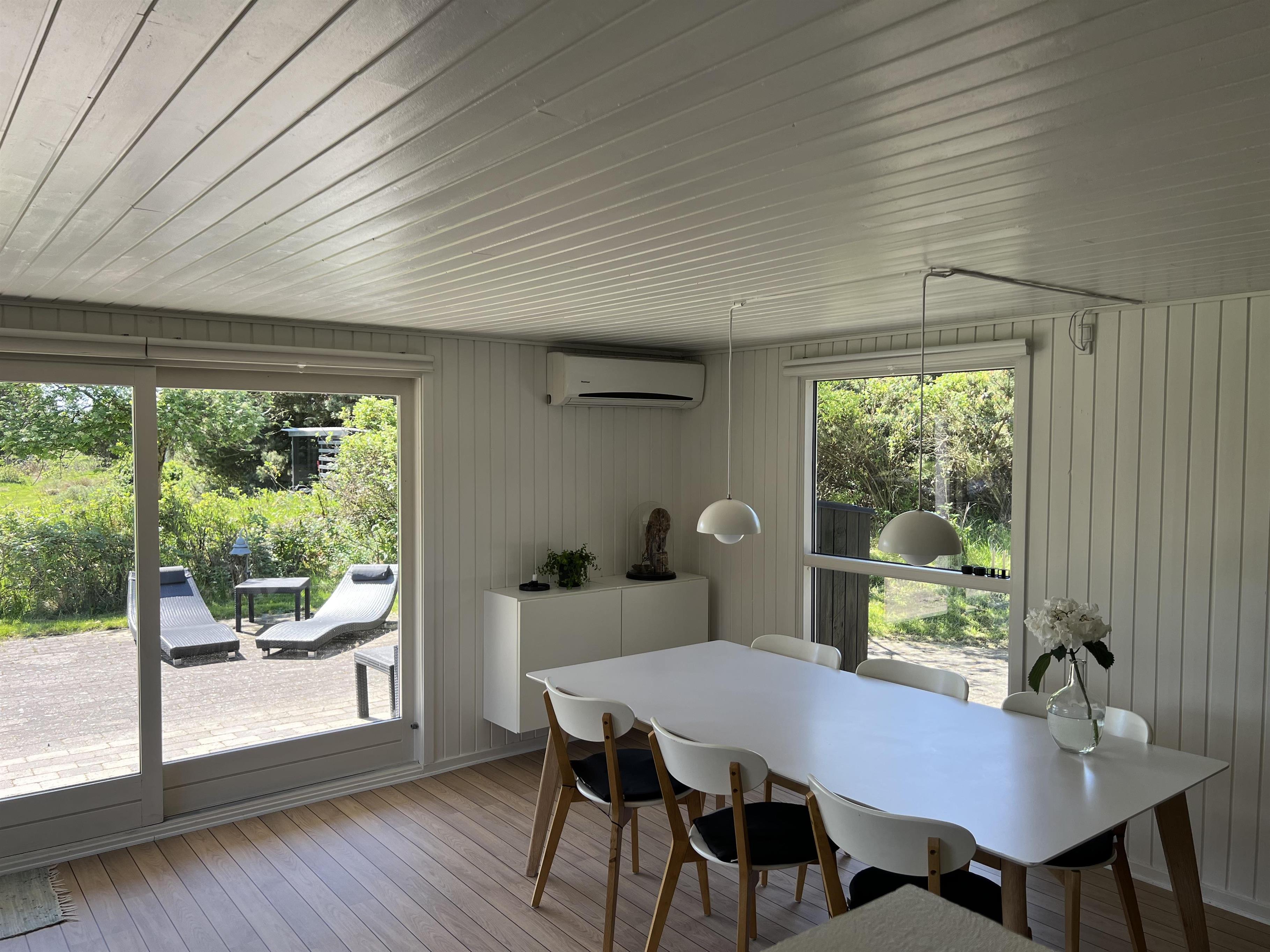 Charmerende lyst sommerhus til 6 Vejers fans, beliggende på naturskøn grund tæt ved skov og cykelsti. ca. 900 meter fra stranden. Huset indeholder: Indgang/entre med garderobeplads og lille hems til opbevaring eller hyggekrog for børn. Herfra er der indgang til badeværelse med bruseniche, vaskearrangement, toilet og vaskemaskine med tørretumbler. Fra gangen kommer man ind i et stort åbent og hyggeligt indrettet opholdsstue, der er indrettet med spisestue afdeling, brændeovn og hyggehjørne med hjørnesofa, Radio med bluetooth og DAB og fjernsyn (Stofa Tv og netflix hvortil man skal benytte egen kode). Varmepumpe. Opholdsstuen er ydermere i åben forbindelse med køkkenet. 3 soveværelser: DS + DS + 2S.