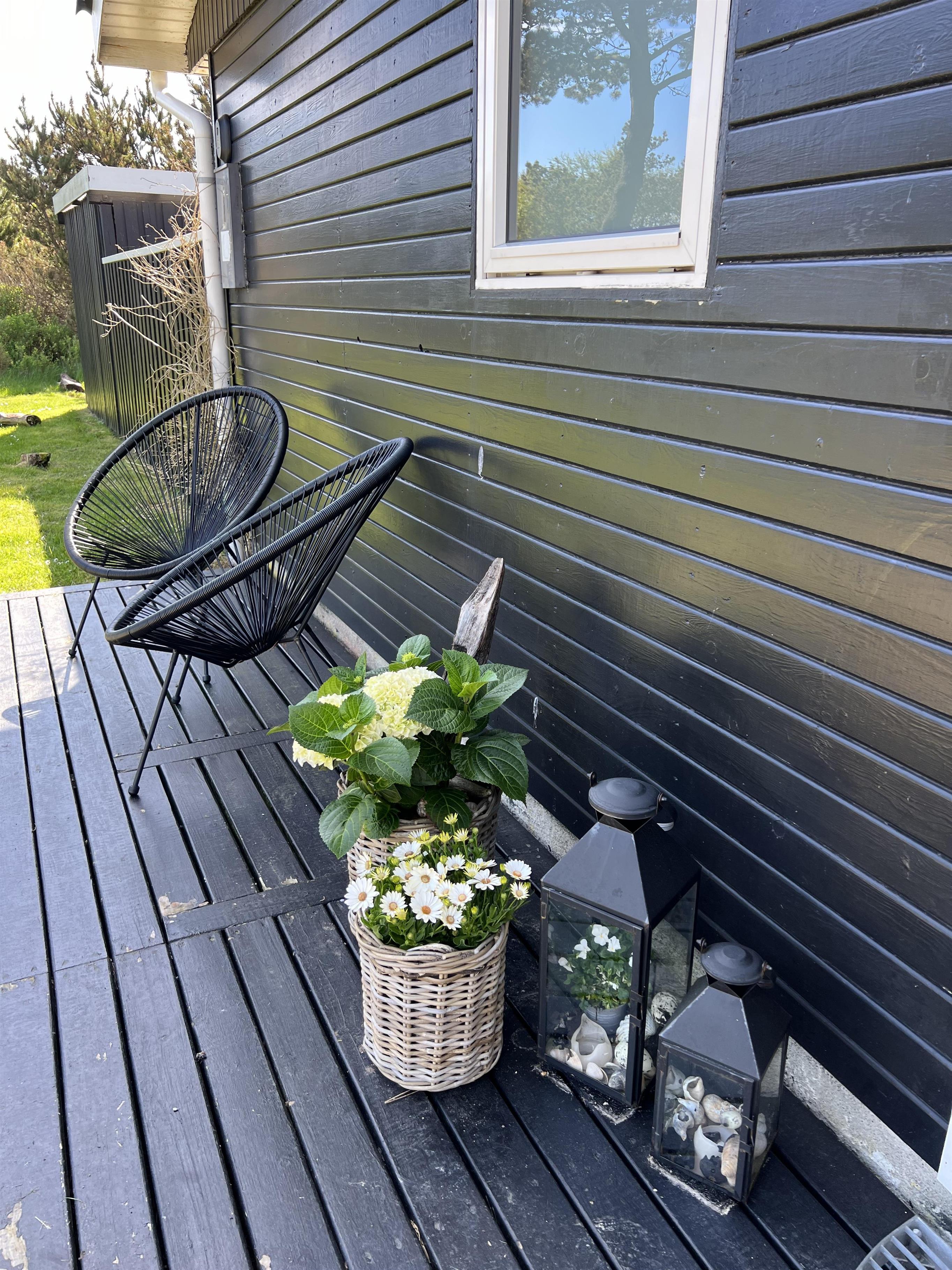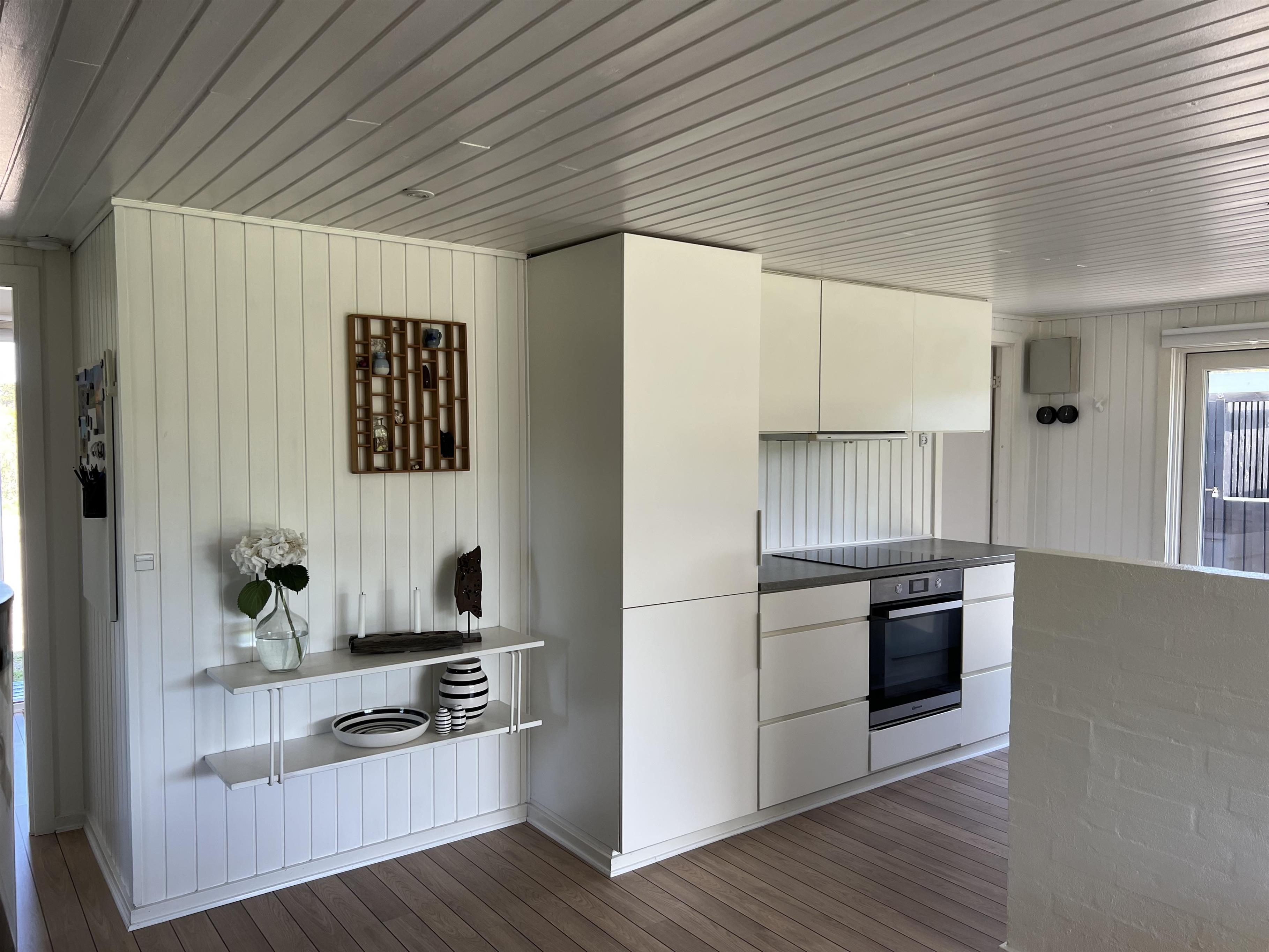 Det velassorterede køkken råder over et nyt køle-/fryseskab (2020), nyt indbygningsovn (2020), ny induktions kogeplade (2020), emhætte, mikroovn og opvaskemaskine. Fra køkkenet er der udgang til østvendt terrasse. Fra den hyggeligt indrettede stue, er der udgang til en delvis overdækket terrasse, hvor aften kan forlænges i det tidlige forår som efterår. Klimaanlæg. Fra stuen er der indgang til 2 soveværelser med hver 1 dobbelt seng (1 x 140 x 200 og 1 x 180 x 200) og klædeskabe. Fra køkkenet er der et mindre værelse med en køjeseng og en briks der indbyder til leg og hygge. De udvendige forhold byder på en fantastisk flisebelagt terrasse samt carport der er inddraget til lækrog/overdækket terrasse. Grunden er på 2300 m2 , hvor børnene nemt kan udfolde sig med sansegynge, klatretræ og en græsplæne der indbyder til boldspil. Ekstra udgift for vandforbrug. Hund og rygning er ikke tilladt. Huset er bygget i 1988 og derefter løbende renoveret. Der er forberedt stik til ellader til bil, 11kW. Laderen er placeret på den sorte terasse.