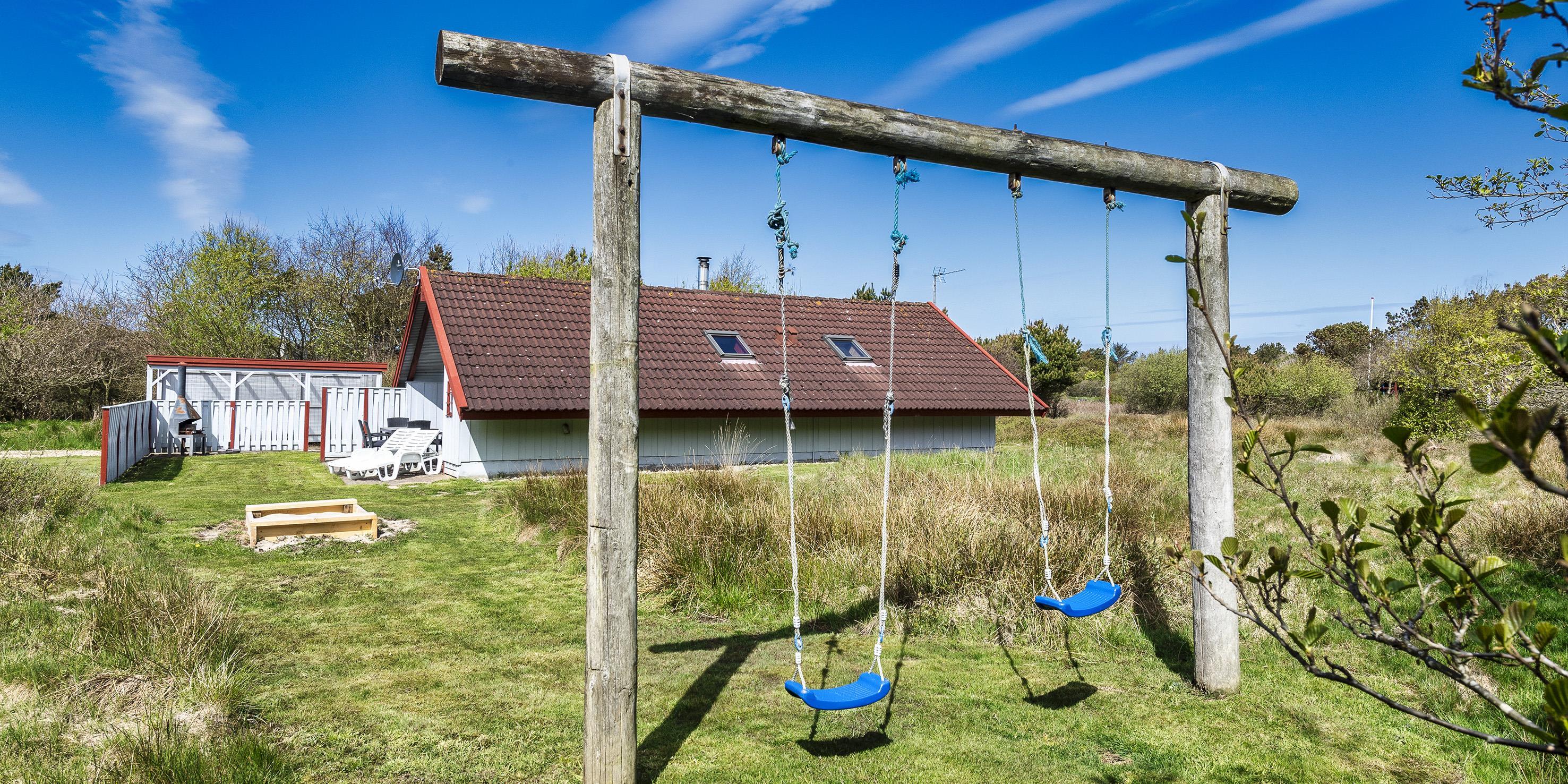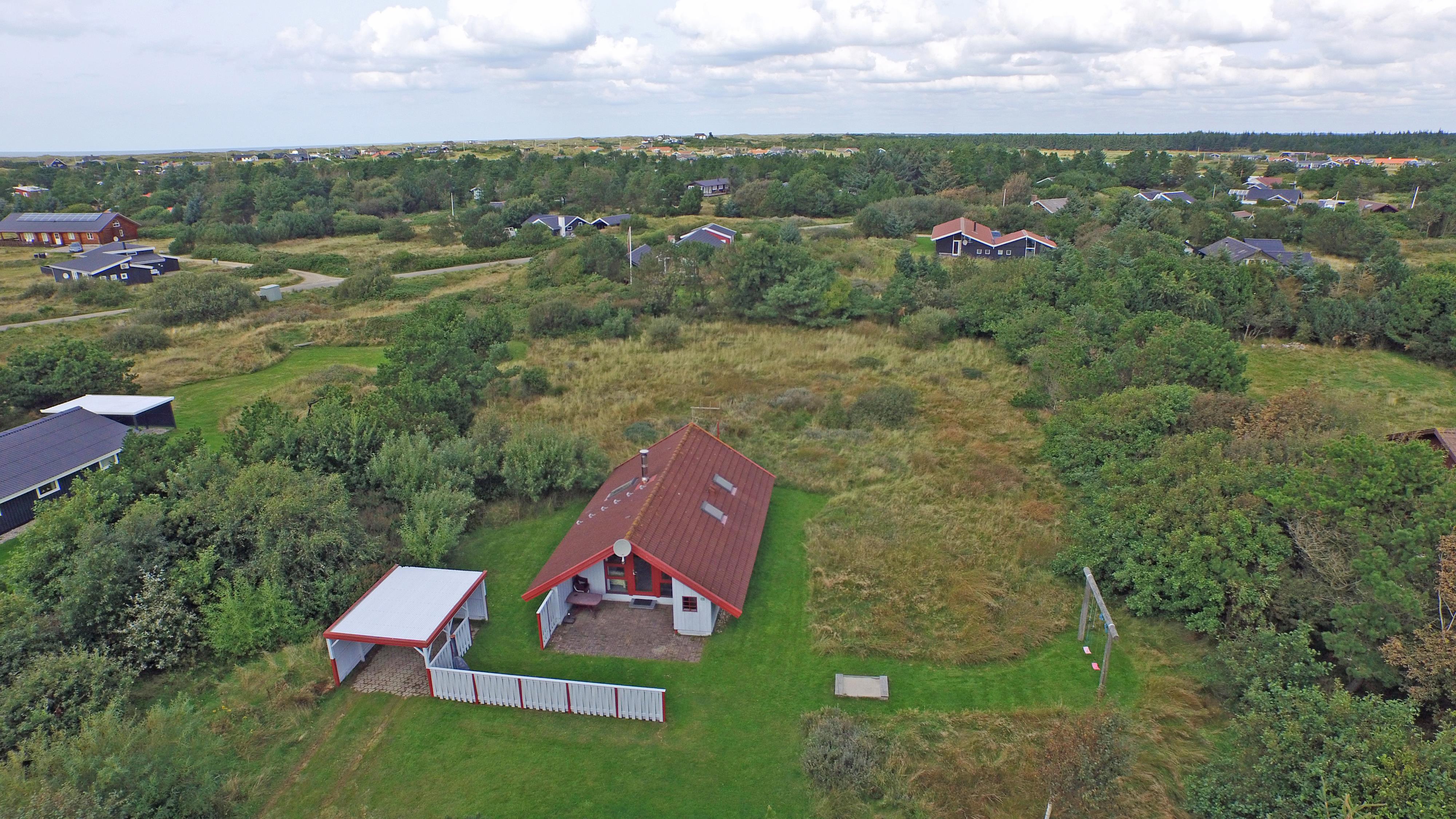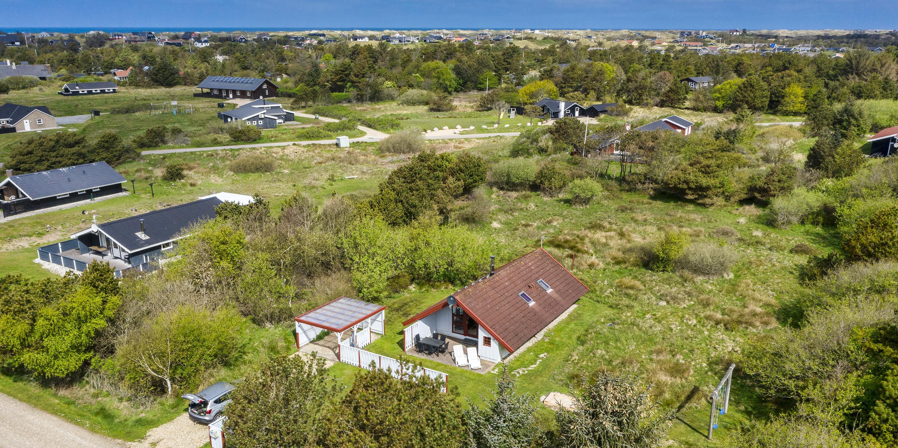 Hyggeligt sommerhus til 6 personer, beliggende på en dejlig stor naturgrund, ca. 1.000 meter fra stranden. Stue med brændeovn, fjernsyn, chromecast og parabol (DR programmer). Internetadgang. Åbent køkken med opvaskemaskine, mikroovn og lille fryser. 1 soveværelse med 1 dobbeltseng, 1 soveværelse med 1 smal dobbeltseng og 1 soveværelse med 1 køjeseng. Badeværelse med bruser/wc. Vaskemaskine. Terrasse, sandkasse og gynge. Carport. Adgang til Oksbøl Badeland 2026. Rygning er ikke tilladt. Byggeår 1986