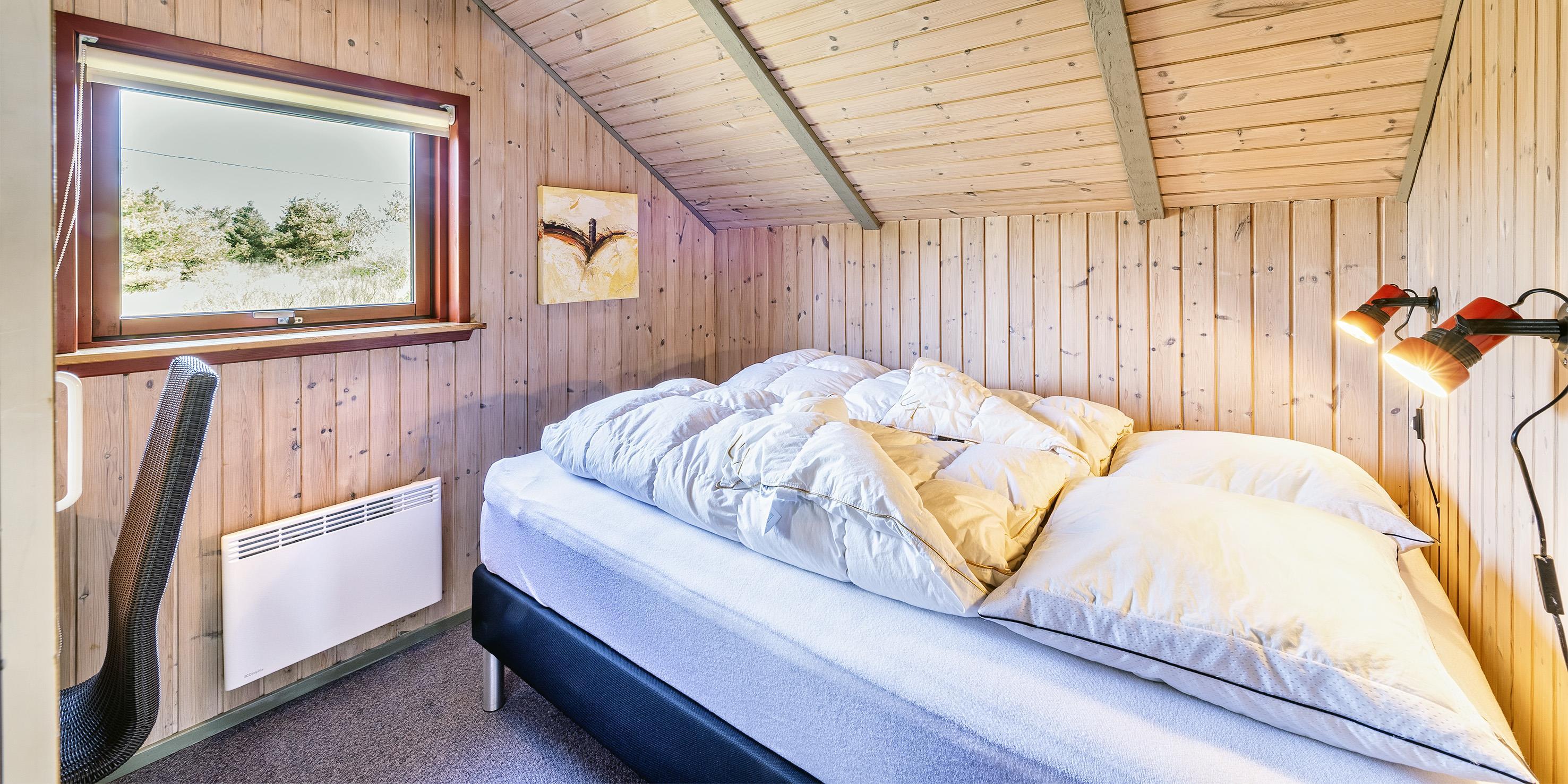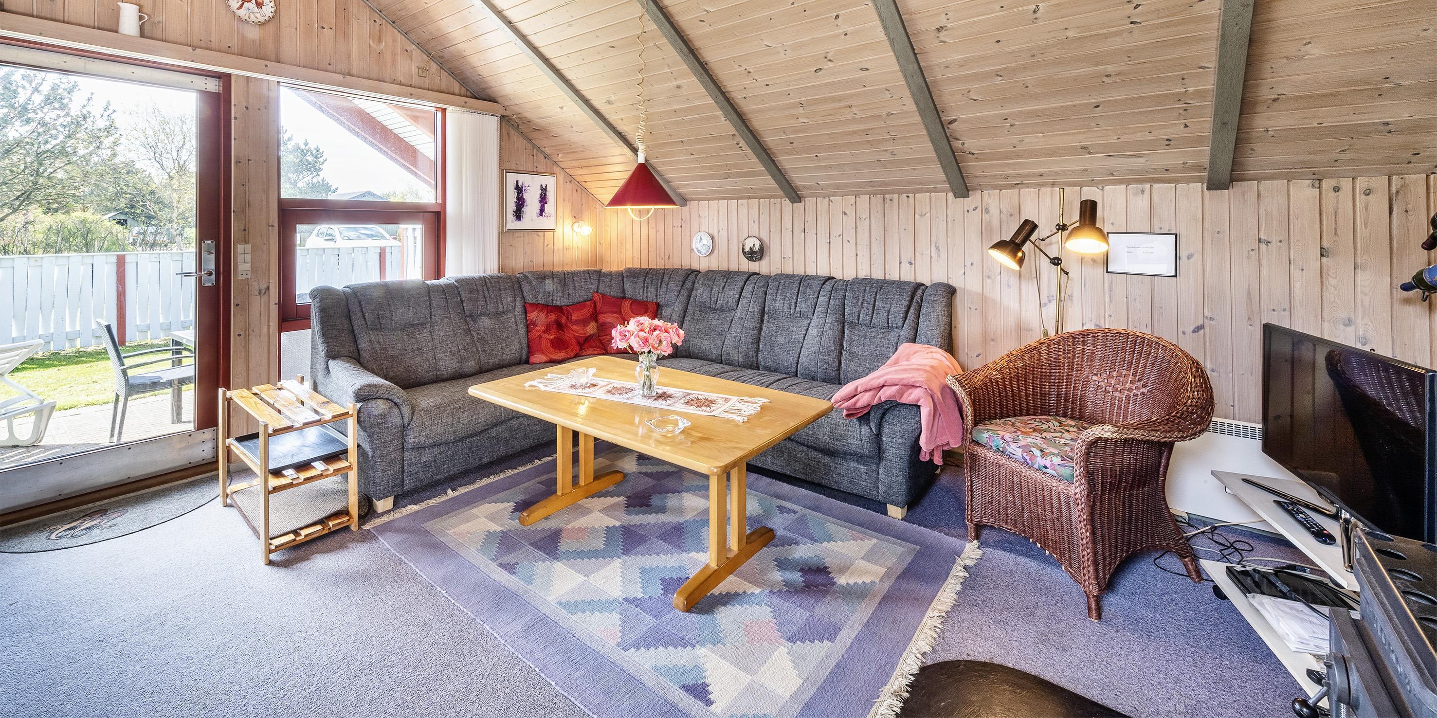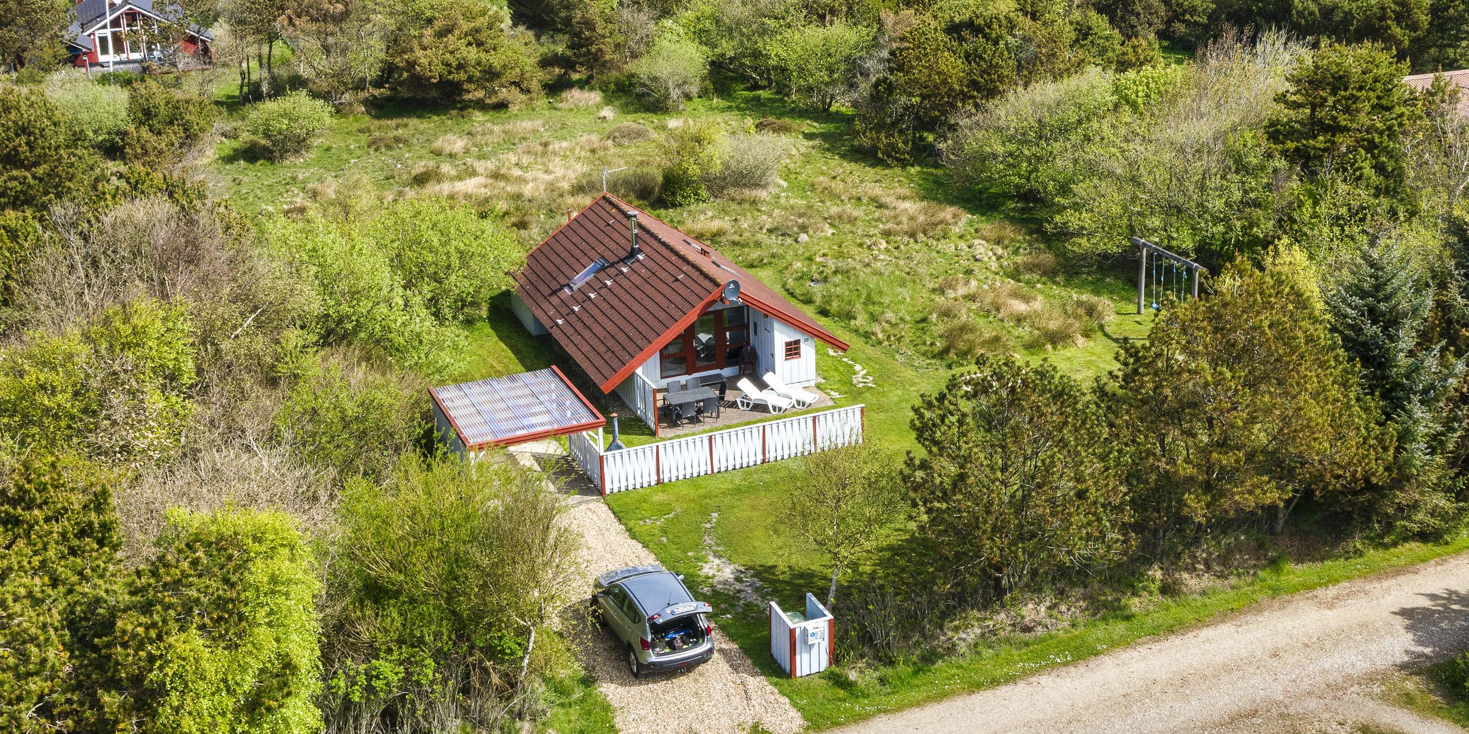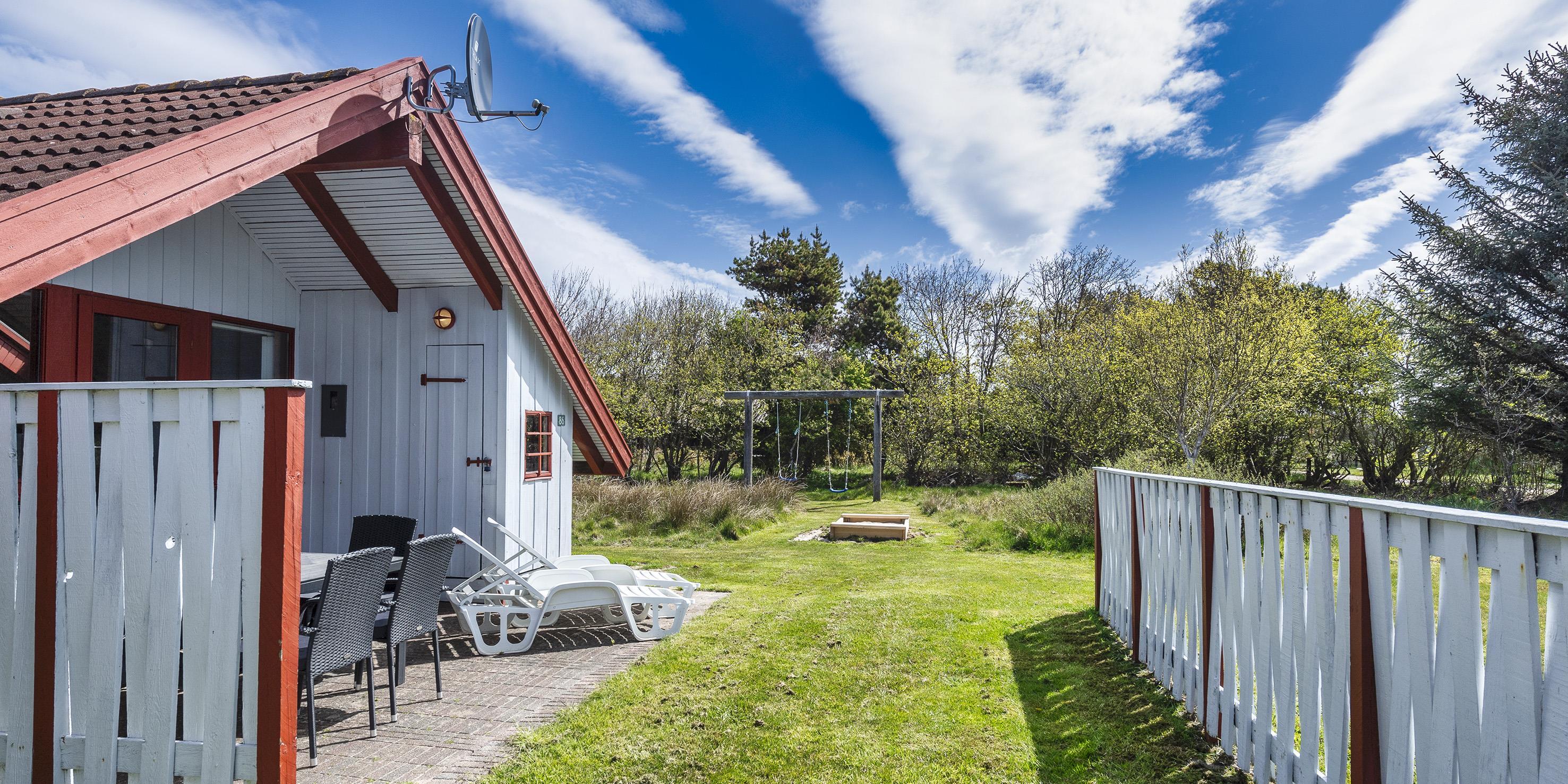 Hyggeligt sommerhus til 6 personer, beliggende på en dejlig stor naturgrund, ca. 1.000 meter fra stranden. Stue med brændeovn, fjernsyn, chromecast og parabol (DR programmer). Internetadgang. Åbent køkken med opvaskemaskine, mikroovn og lille fryser. 1 soveværelse med 1 dobbeltseng, 1 soveværelse med 1 smal dobbeltseng og 1 soveværelse med 1 køjeseng. Badeværelse med bruser/wc. Vaskemaskine. Terrasse, sandkasse og gynge. Carport. Adgang til Oksbøl Badeland 2026. Rygning er ikke tilladt. Byggeår 1986