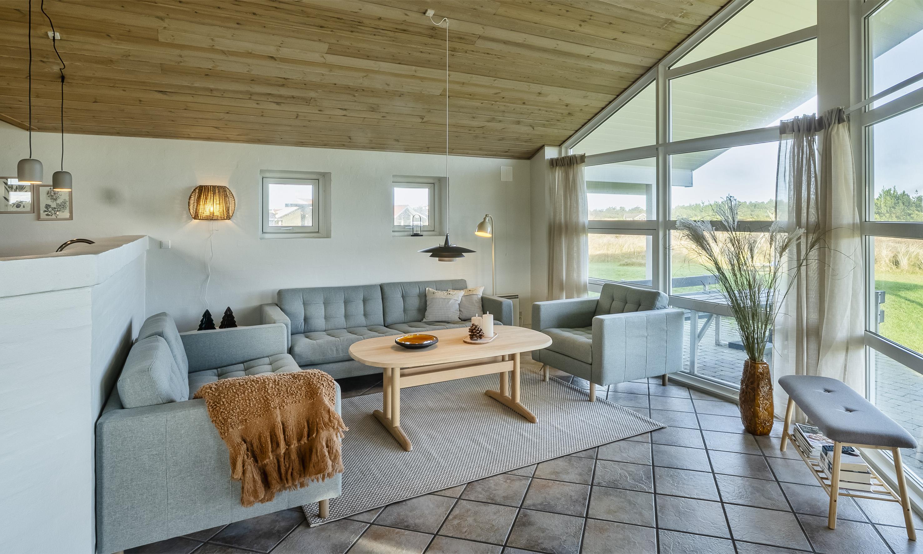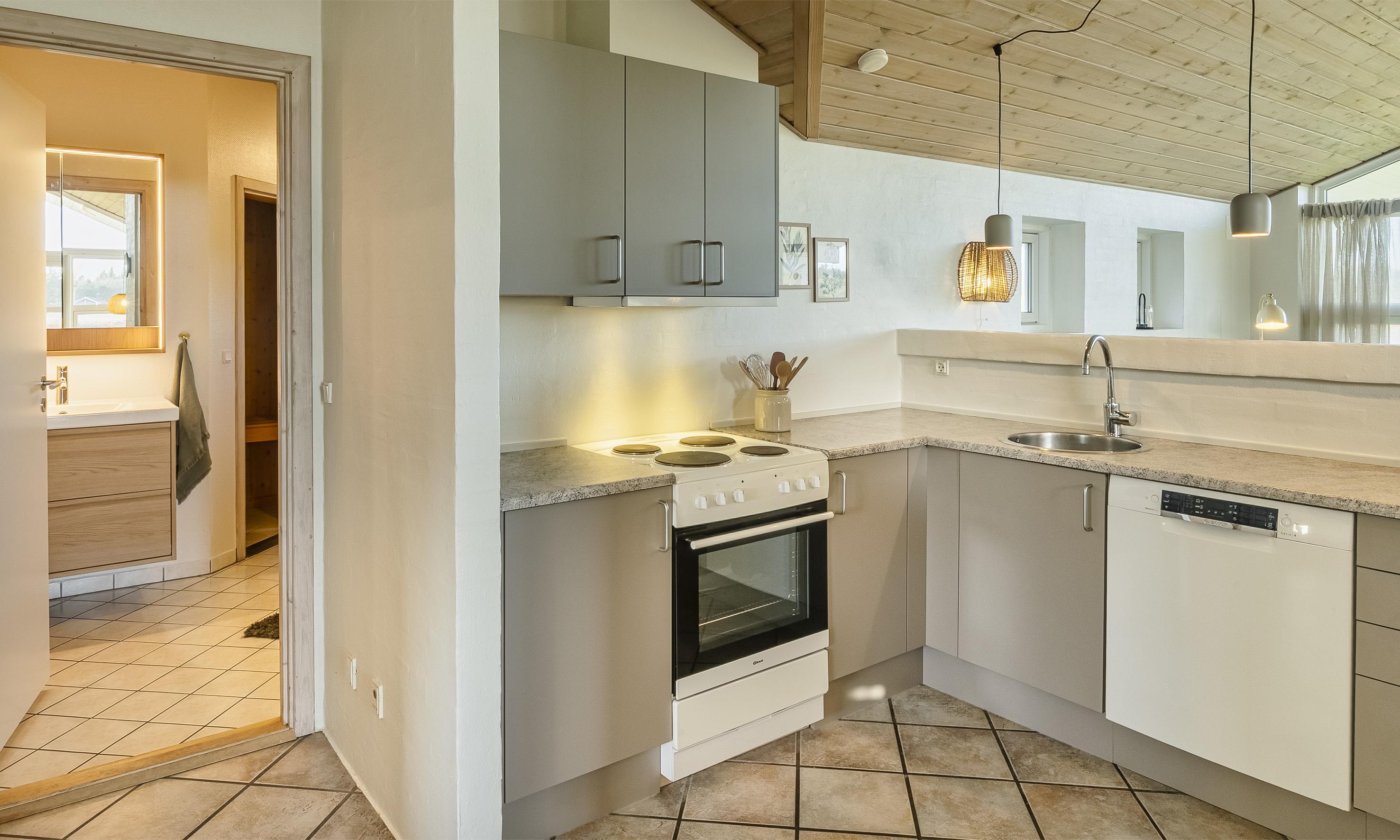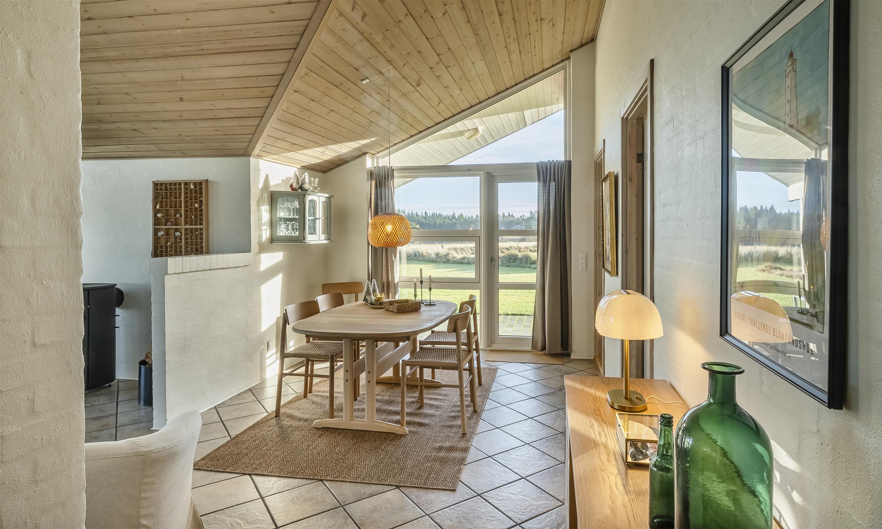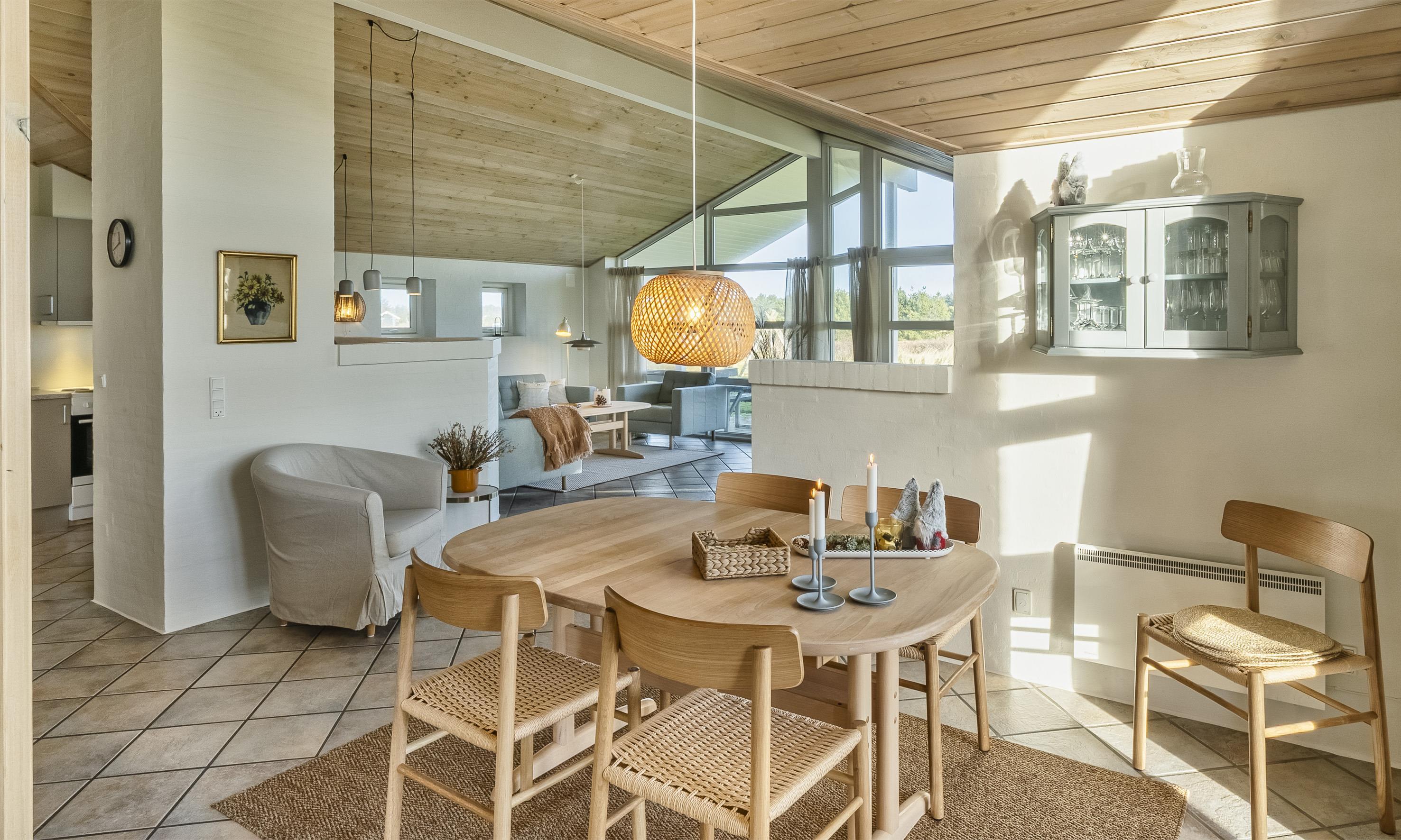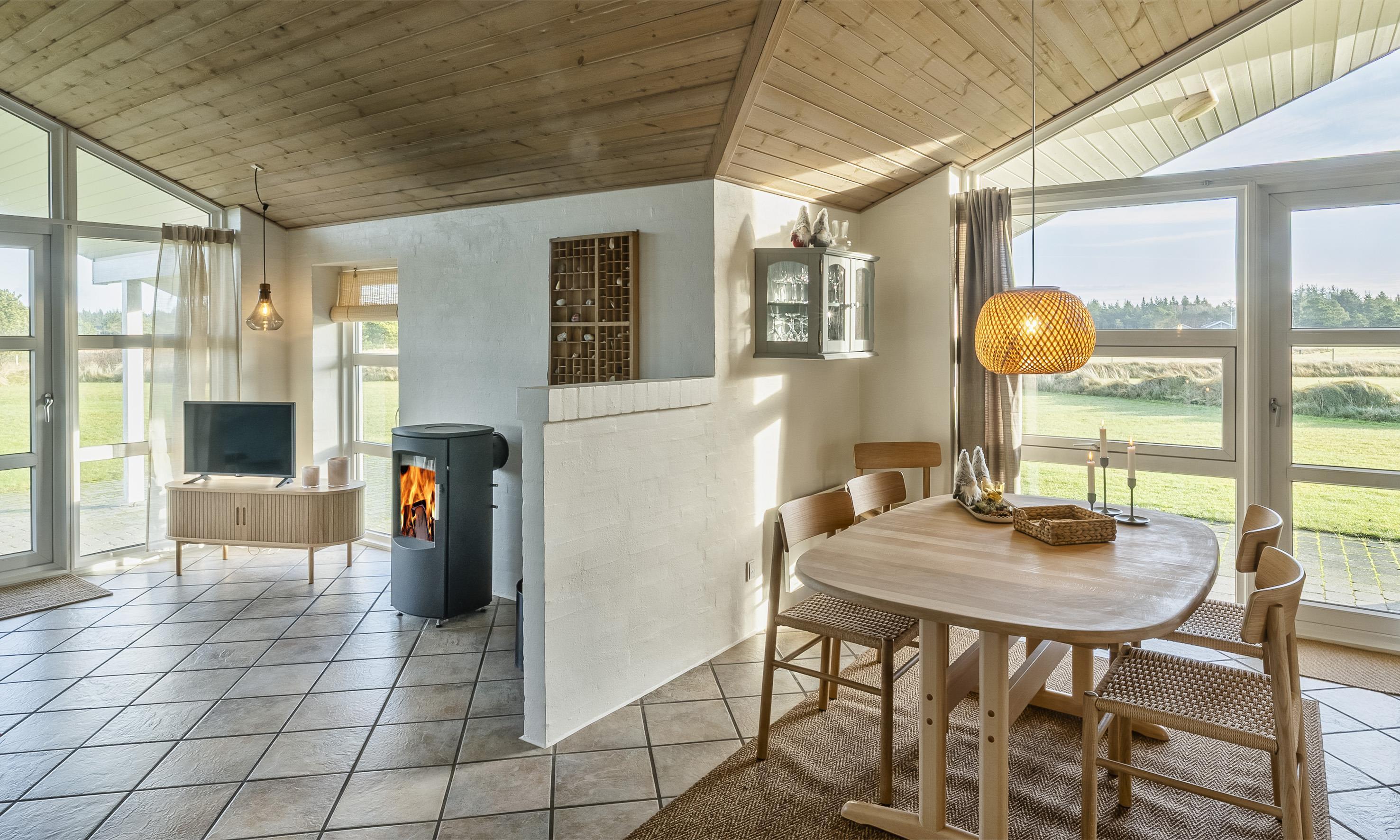 Indeholder: Stue med brændeovn og fjernsyn (Stofa sommerhuspakke) samt køkken med opvaskemaskine og mikroovn. 3 soveværelser: DS + DS + 2S. Badeværelse med bruser, toilet, spa, sauna. Gæstetoilet med bruser. Stor entre/baggang med vaskemaskine og tørretumbler. Trådløs internet. Carport og depotrum samt overdækket terrasse.